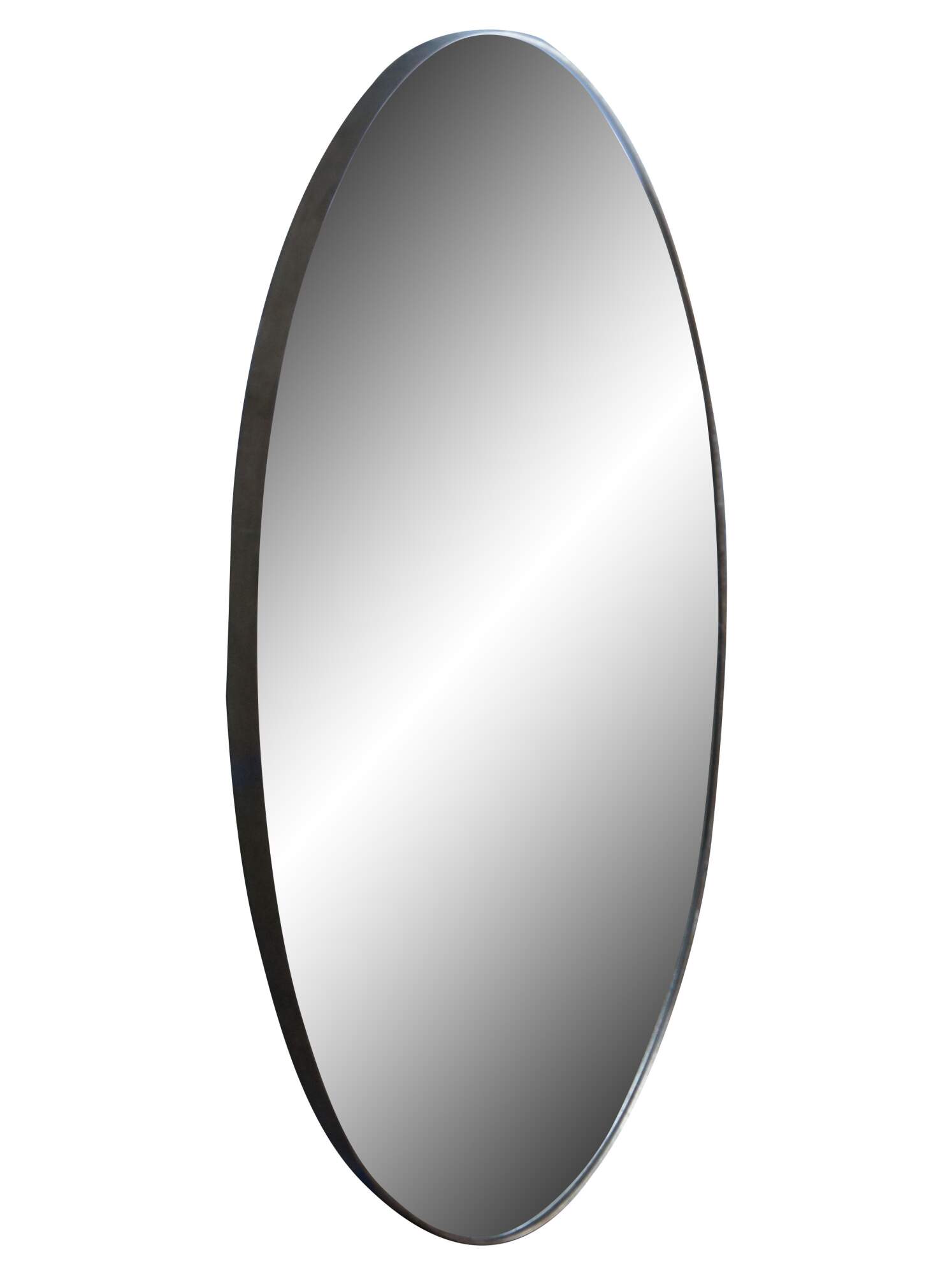 This iron, oval frame has a deep side yet petite surface finished in achampagne silver leaf. Mirror has a generous 1 1/4"" bevel and may be hung horizontal or vertical.