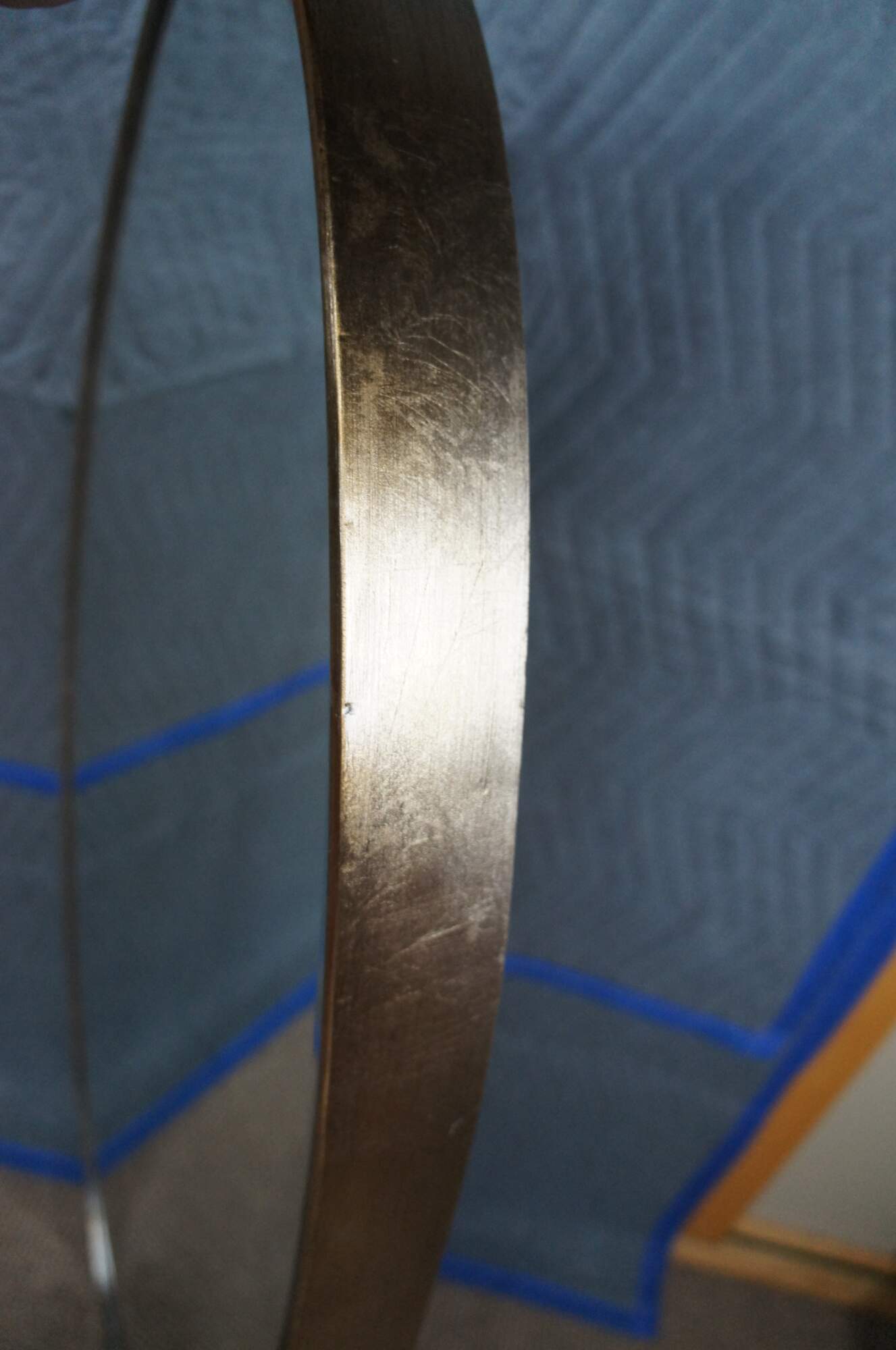 Very Good; This mirror was never used and comes from a designer showroom. Small bend along back edge of one side