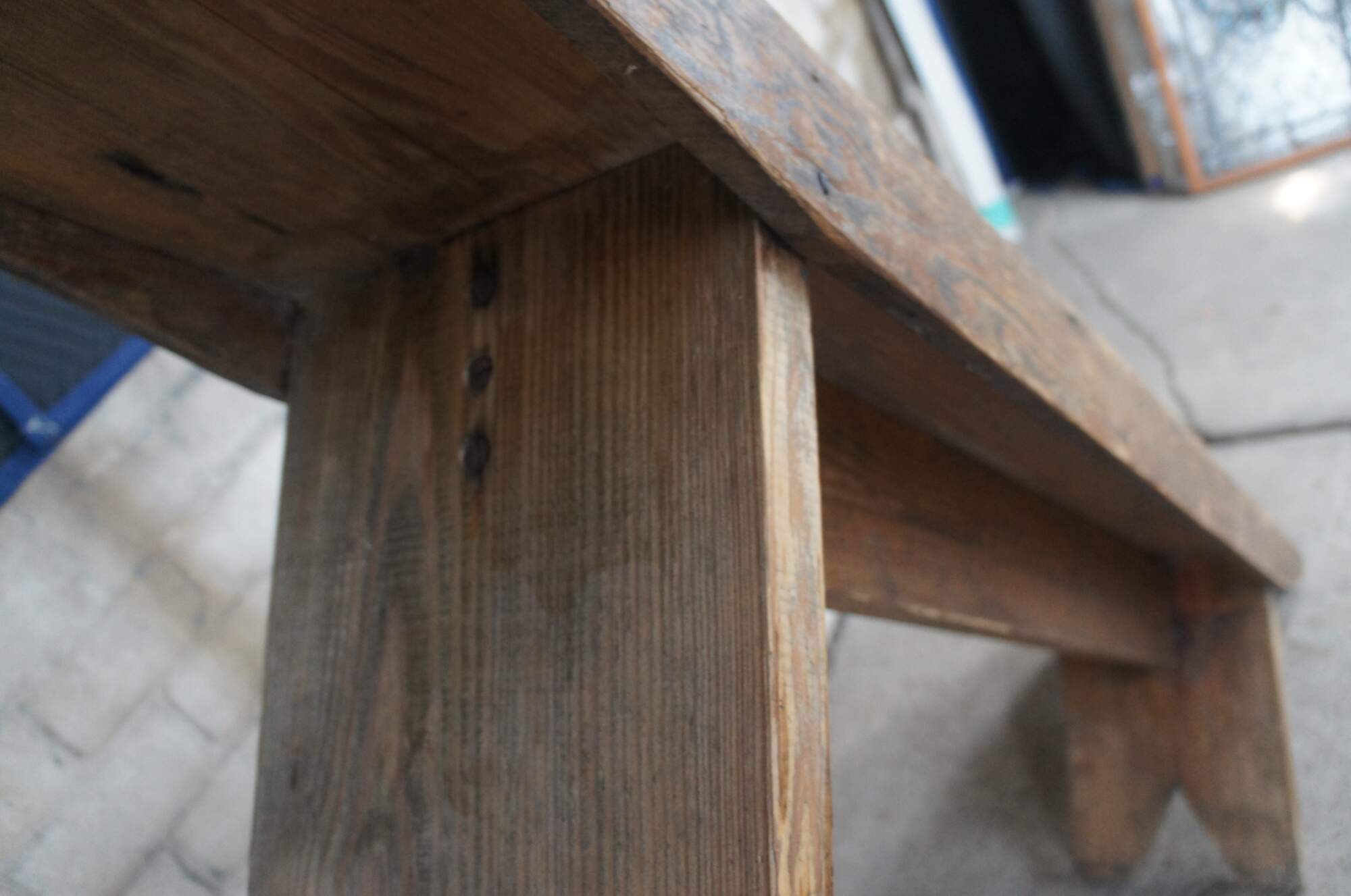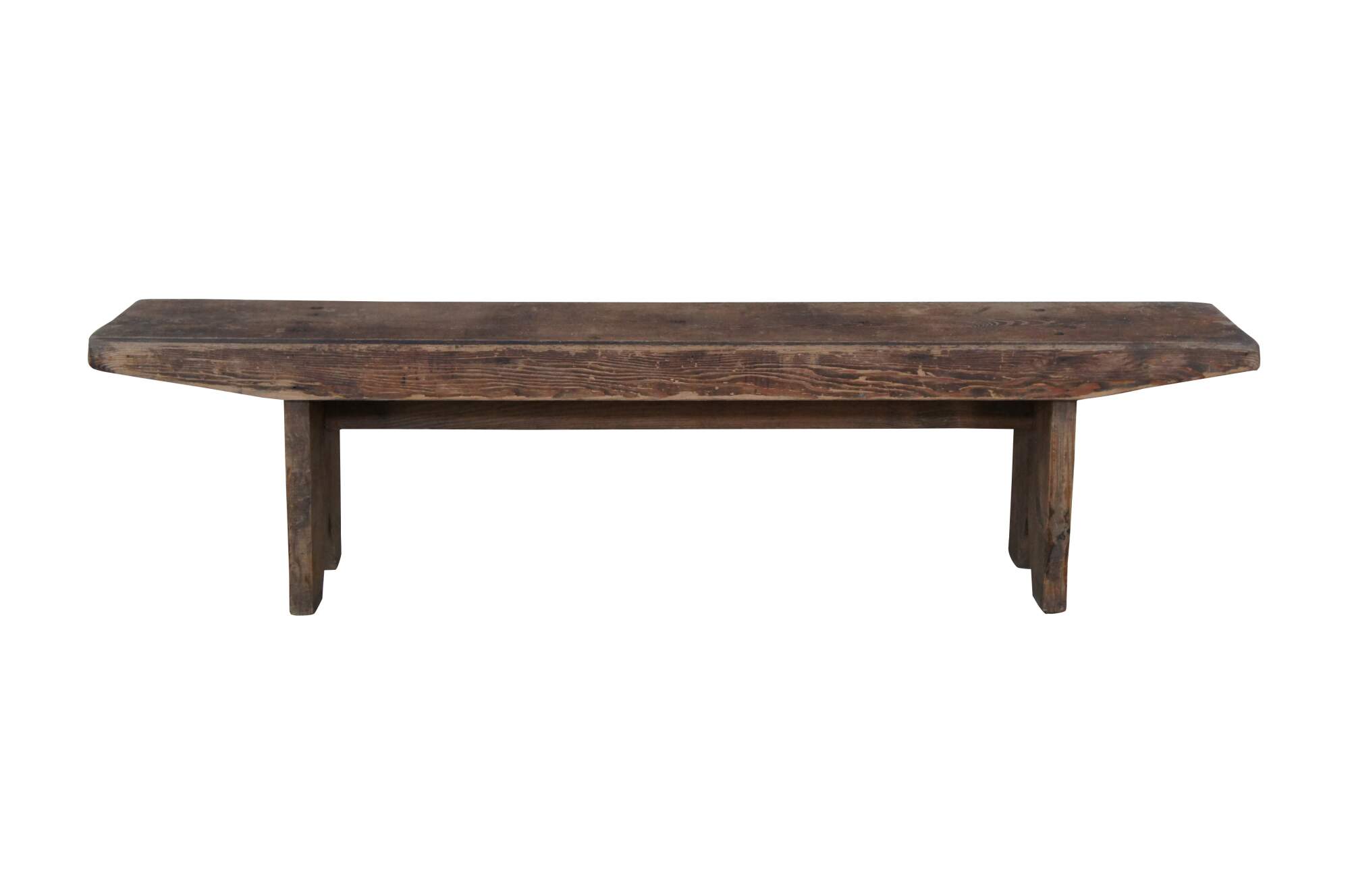 A beautiful Arts & Crafts farmhouse pine bench. Features a distressed rustic patina. Built using large old flat head screws