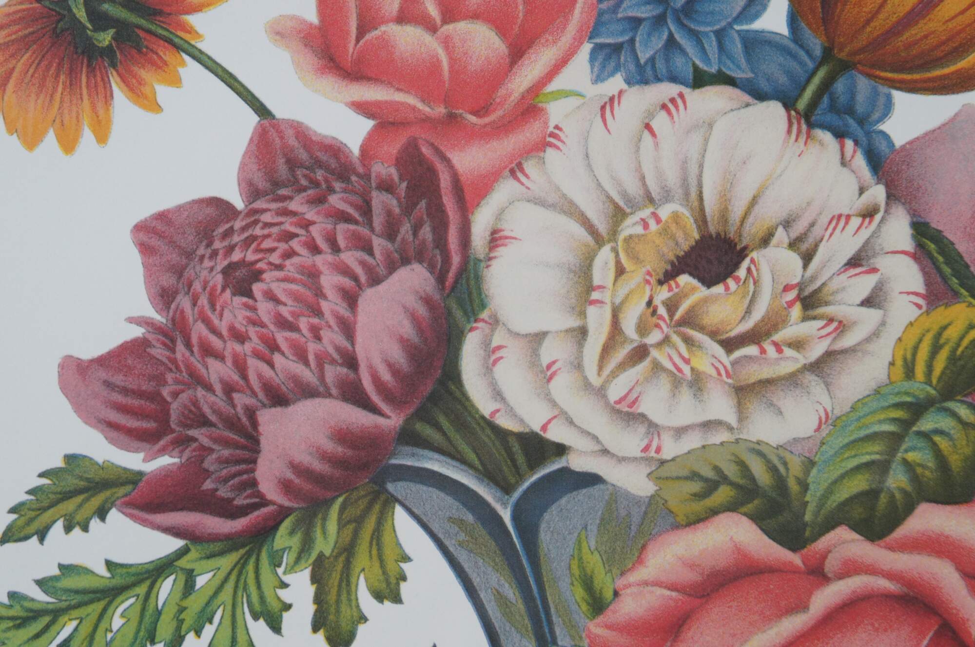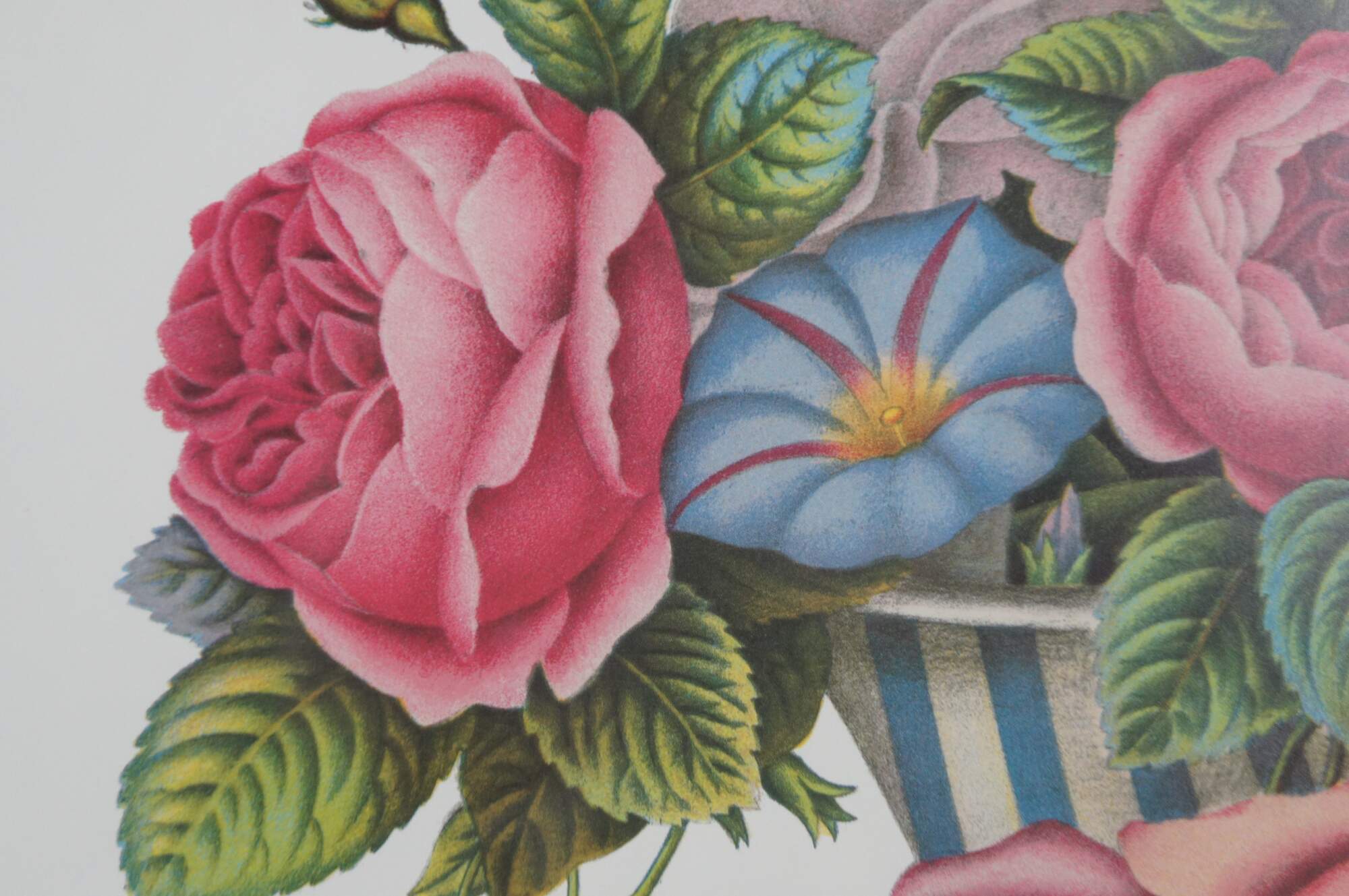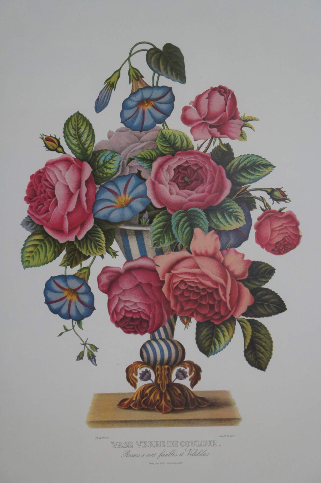 Pair of vintage reproduction prints of lithographs by Jean Louis Prevost, Vase de Venise and Vase Verre de Couleur. Jean Louis Prevost (1760 - 1810) was active/lived in France. Jean Prevost is known for Floral still life, botanical painting.