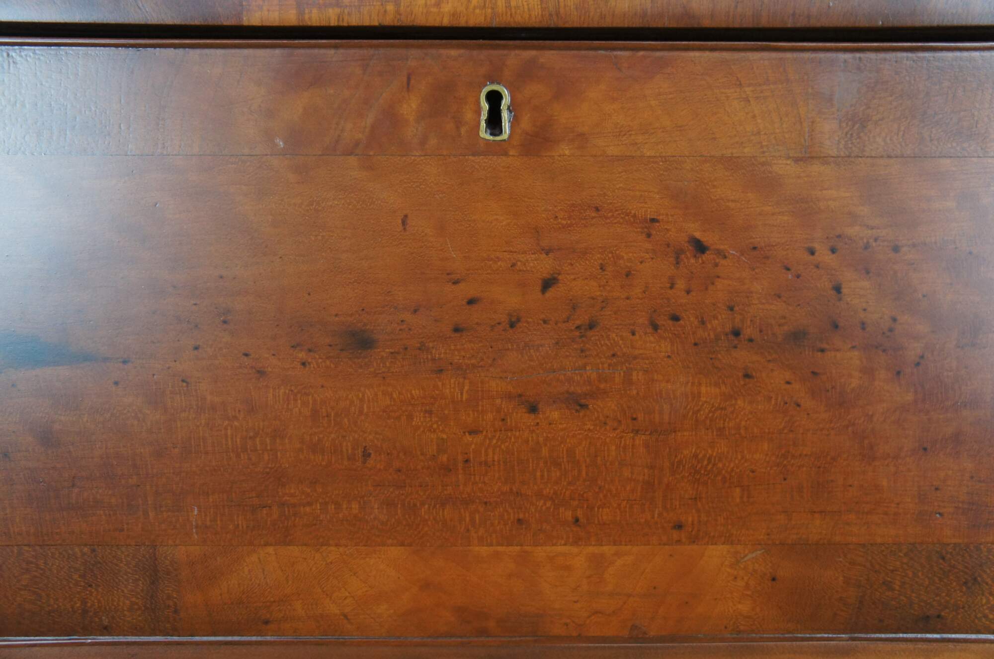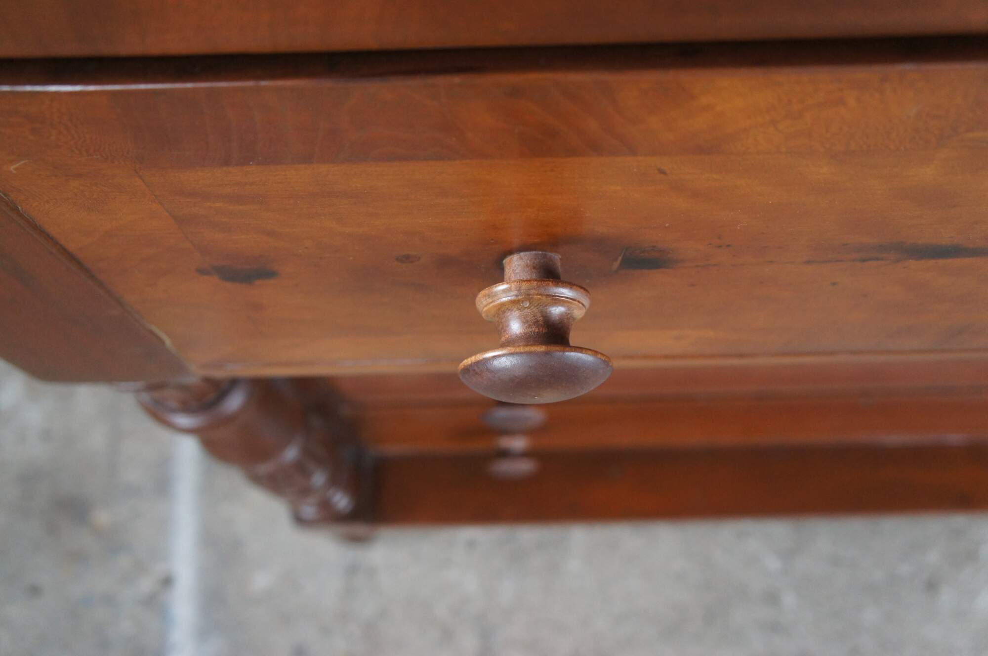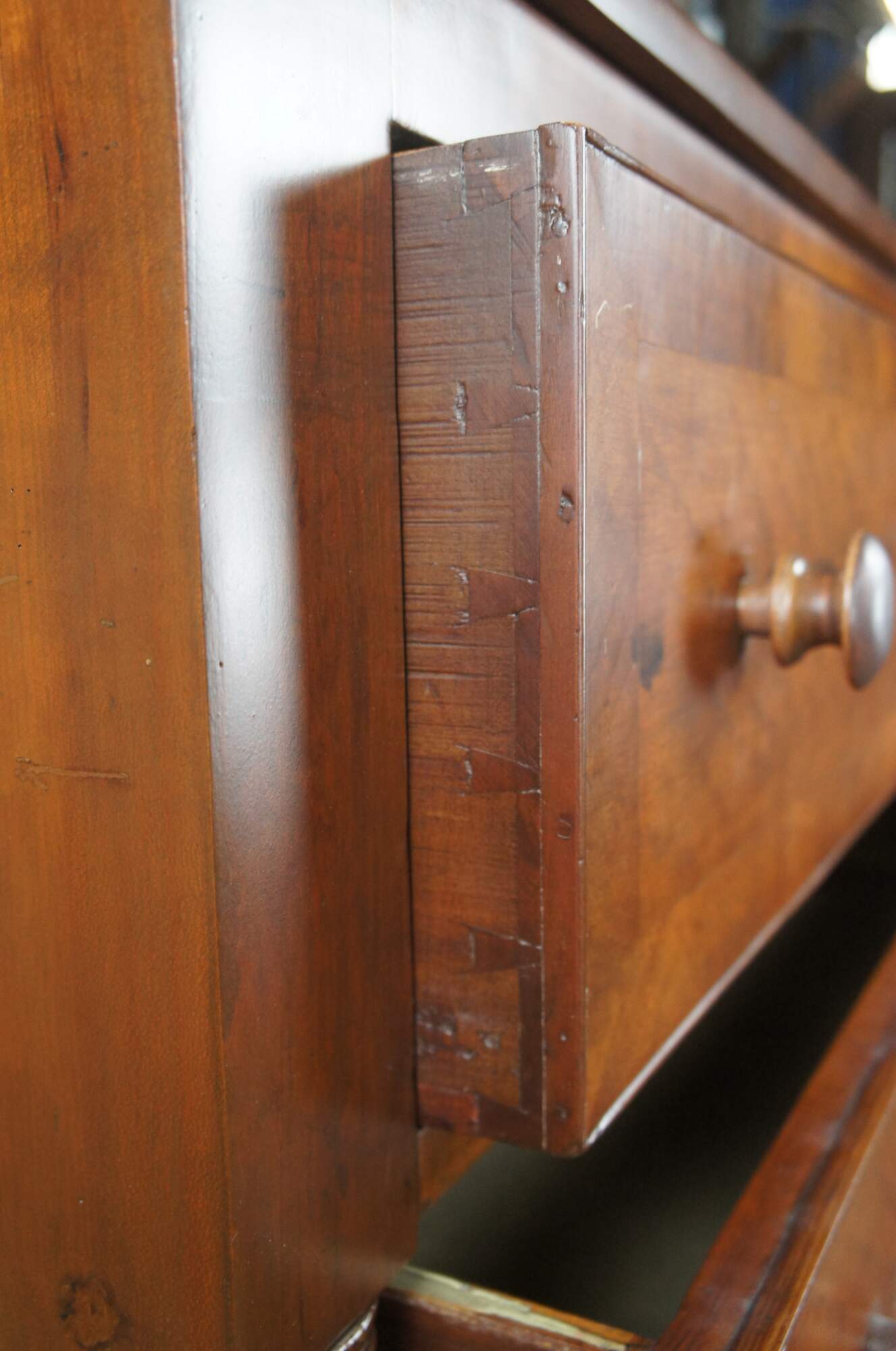 A large and impressive Victorian chest of drawers, circa 1870s. Made from Cherry with walnut banding. Features 4 hand dovetailed drawers with a pronounced top. The stiles showcase whole turned, fluted and ribbed columns. The case is raised over turnip feet. A warm addition to any space.