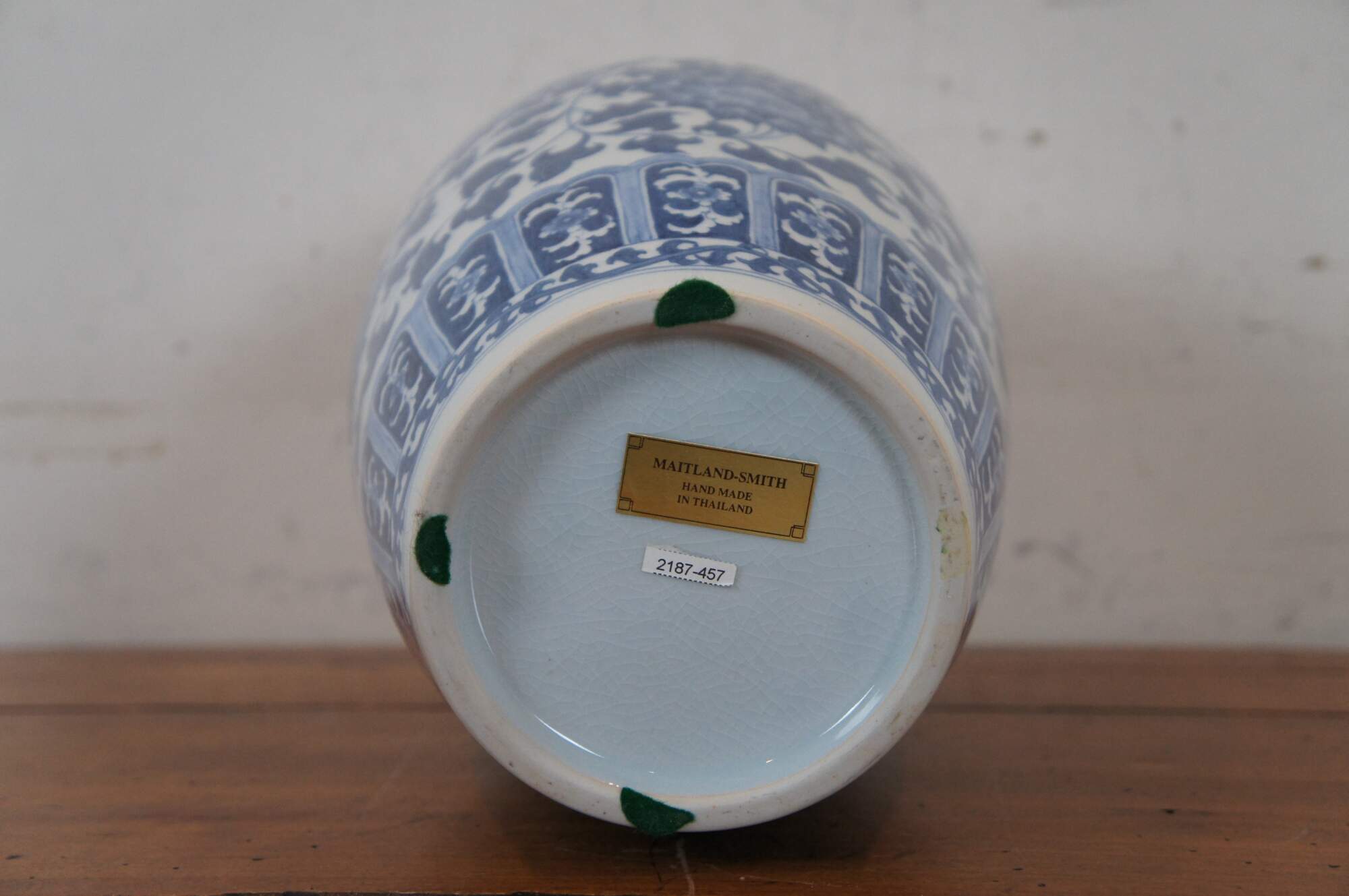 Vintage Maitland Smith chinoiserie / Chinese style vase featuring a floral pattern in blue and white with artistic crazing to the finish. Hand Made in Thailand. #2187-457.