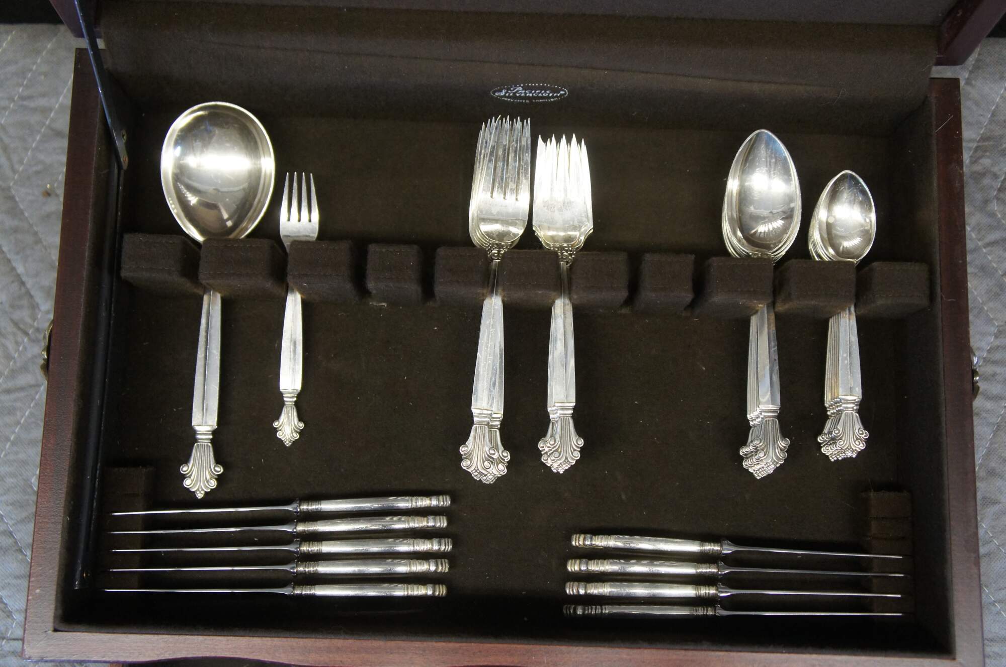 The superb Scandinavian Moderne ""Acanthus"" or ""Dronning"" pattern of sterling silver flatware was designed by Johan Rohde in 1917 for Georg Jensen.