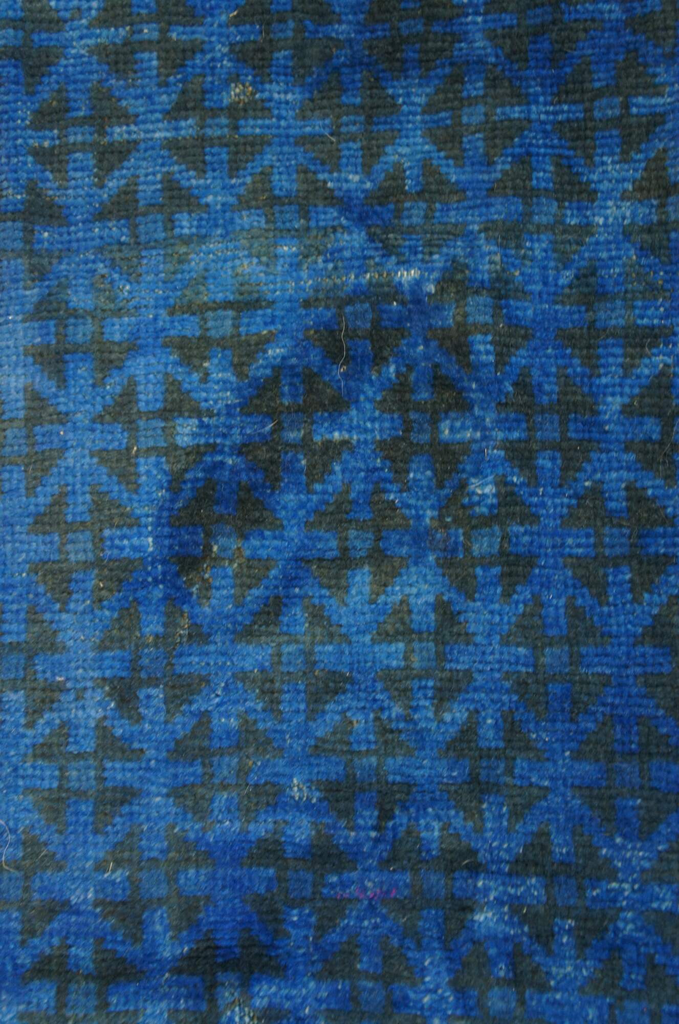 A lovely hand knotted Pakistani Balouch wool prayer rug, circa 1980s. Features a blue and black geometric pattern.