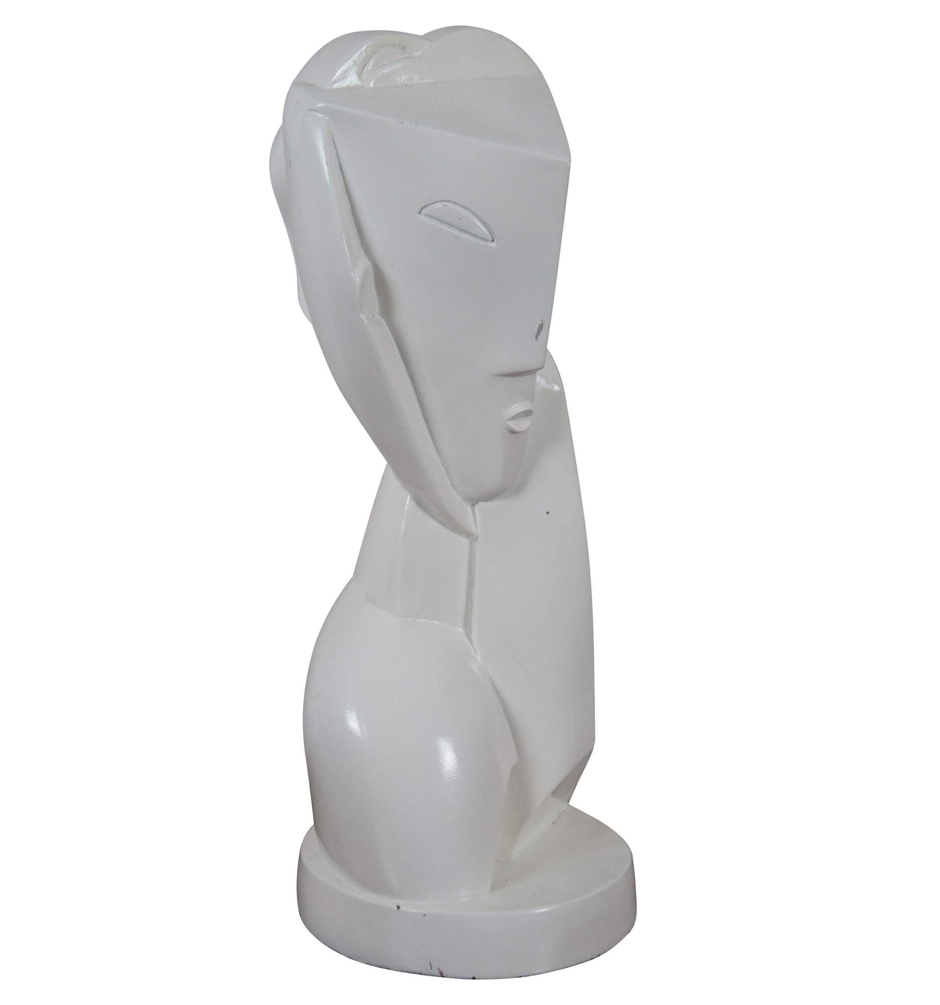 Mid Century Modern 1961 glossy white plaster impressionist / expressionist sculpture produced by Austin Products / Productions Inc, based on Head of a Young Girl (Tete de Jeune Fille) – 1920 by Cubist sculptor Henri Laurens.