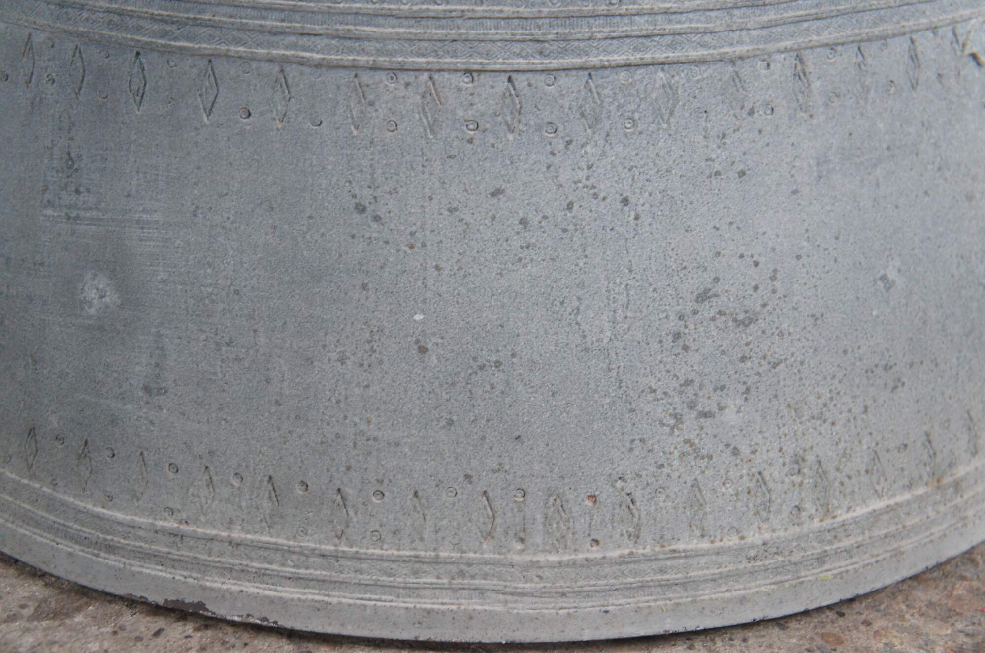 Rain Drums originated with the Dong Son culture in Southeast Asia, dating as far back as the mid-to-late Bronze Age (1,000–700 BC). Metal workers poured and set molten bronze in a cast, freed the hardened drums from their molds, then carved them with intricate motifs as the metal cooled. The art of sculpting bronze drums remains a refined skill, acquired over many years and passed on through apprenticeships.