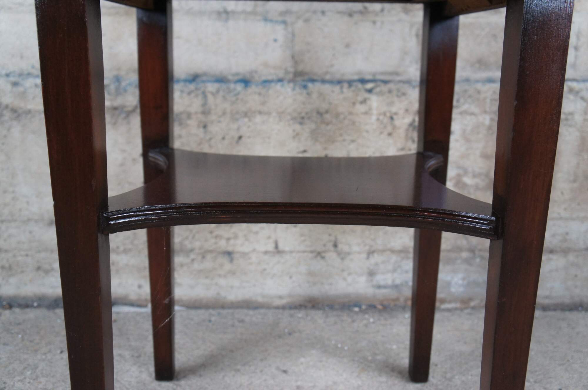 Sheraton style bedside table, circa mid 20th century. Made from mahogany with one dovetailed drawer, beaded trim and lower shelf between square tapered legs.