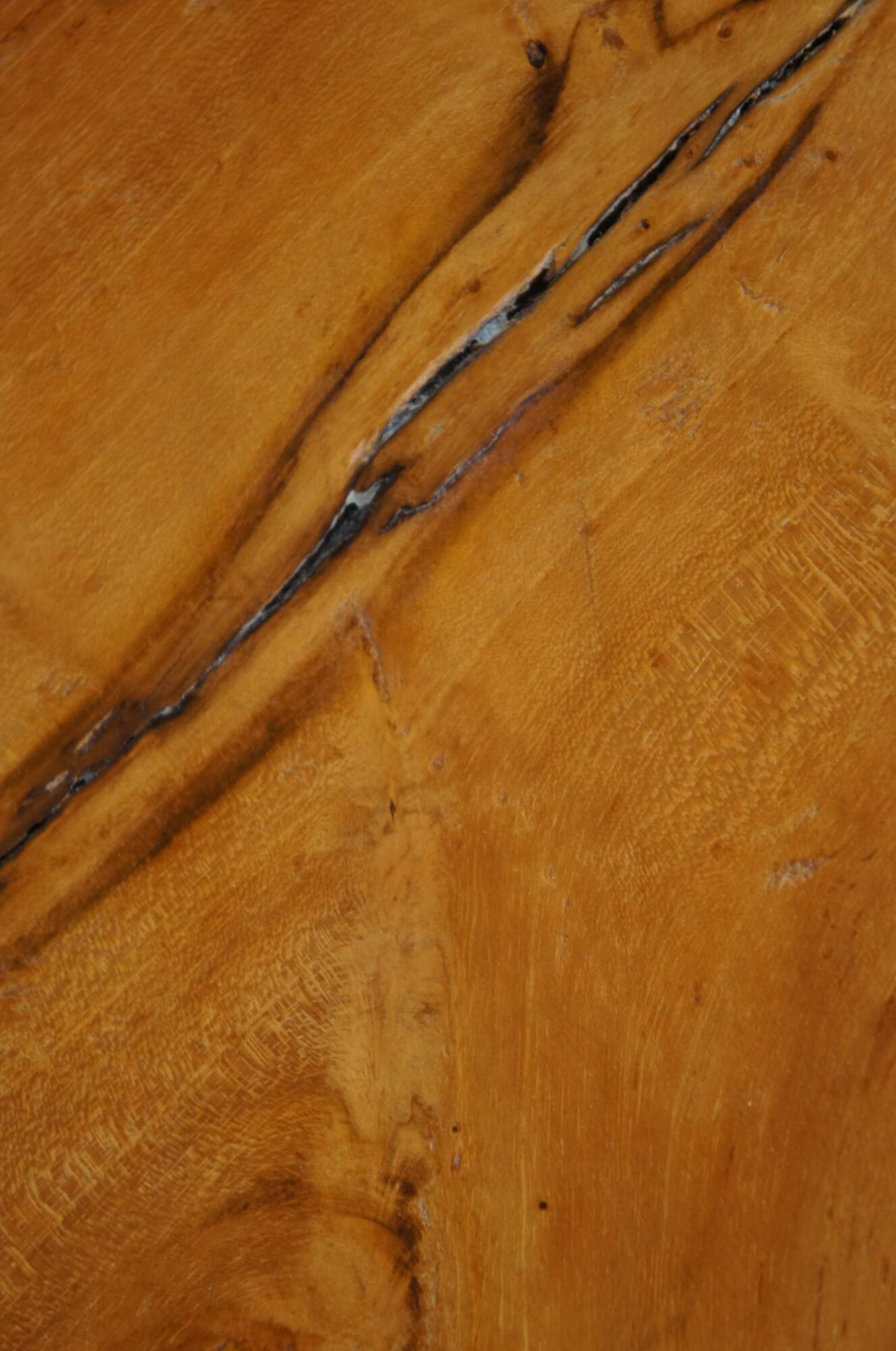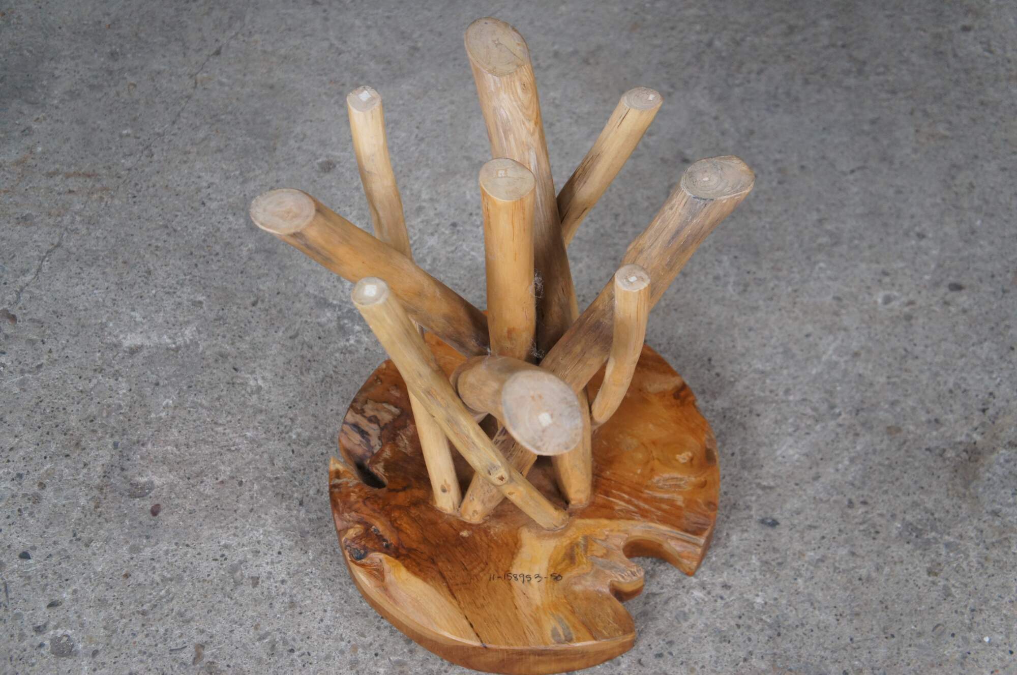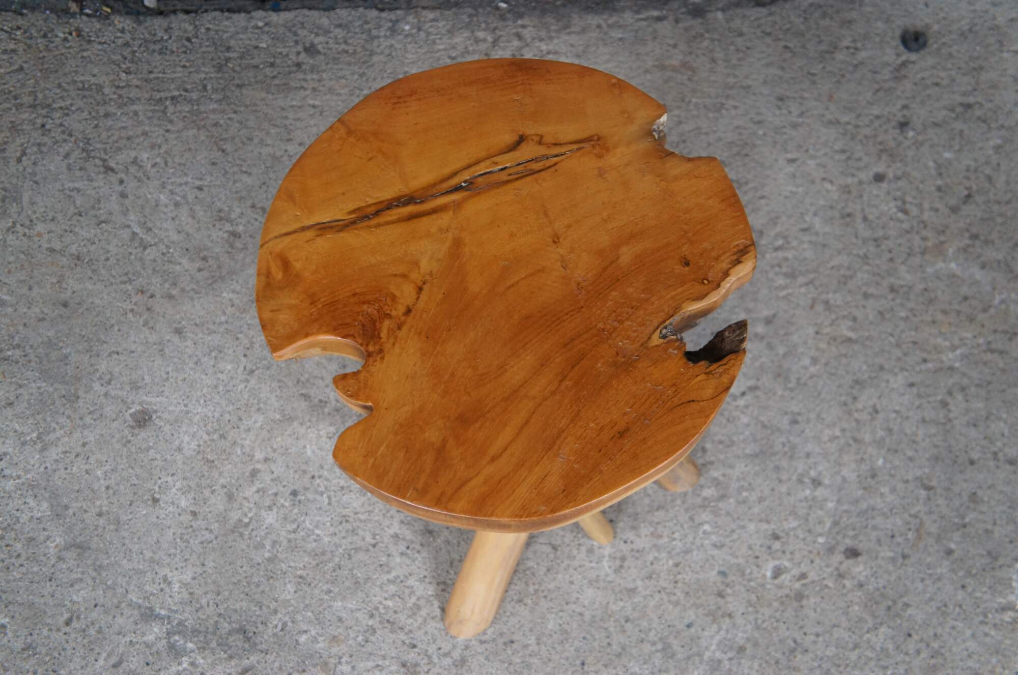 Intriguing farmhouse or lodge side table. Features a teak slab top over branch base. Great for use next to a chair or even as a stool / seat.