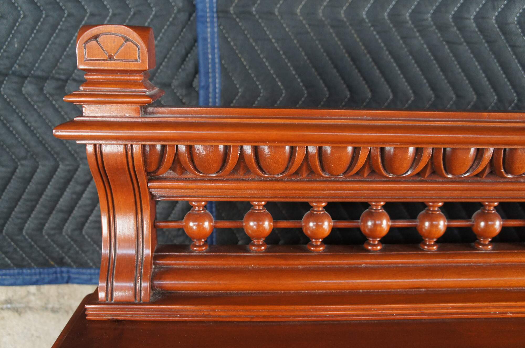 Impressive 19th century cherry highboy dresser, circa 1880s. Features 6 dovetailed drawers, carved with leaf and vine motif, ornate brass bale hardware and matching escutcheon plates. Stiles and drawer fronts have decorative shallow engraved lines giving reminiscent of cross hairs. The crown which is removable shows a beautiful mix of carvings methods with an egg and dart molding over pierced ball and stick center. Drawer locks patented in 1878 and 1882