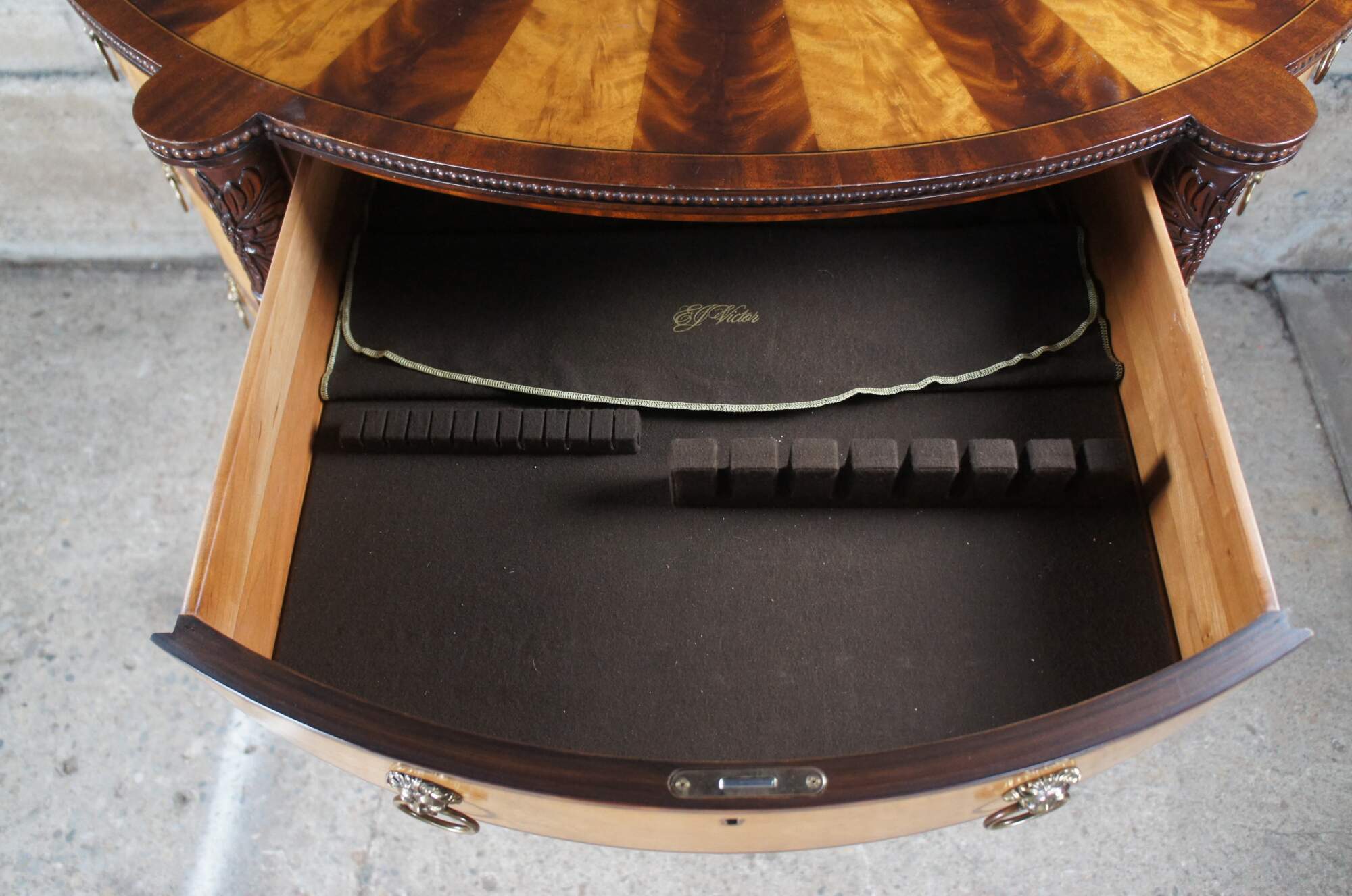 The original commode was purchased by Elizabeth Derby West in 1809. Although credited to Thomas Seymour, the talents of James Cogswell, Thomas Wightman, and John Penniman were instrumental in its construction.