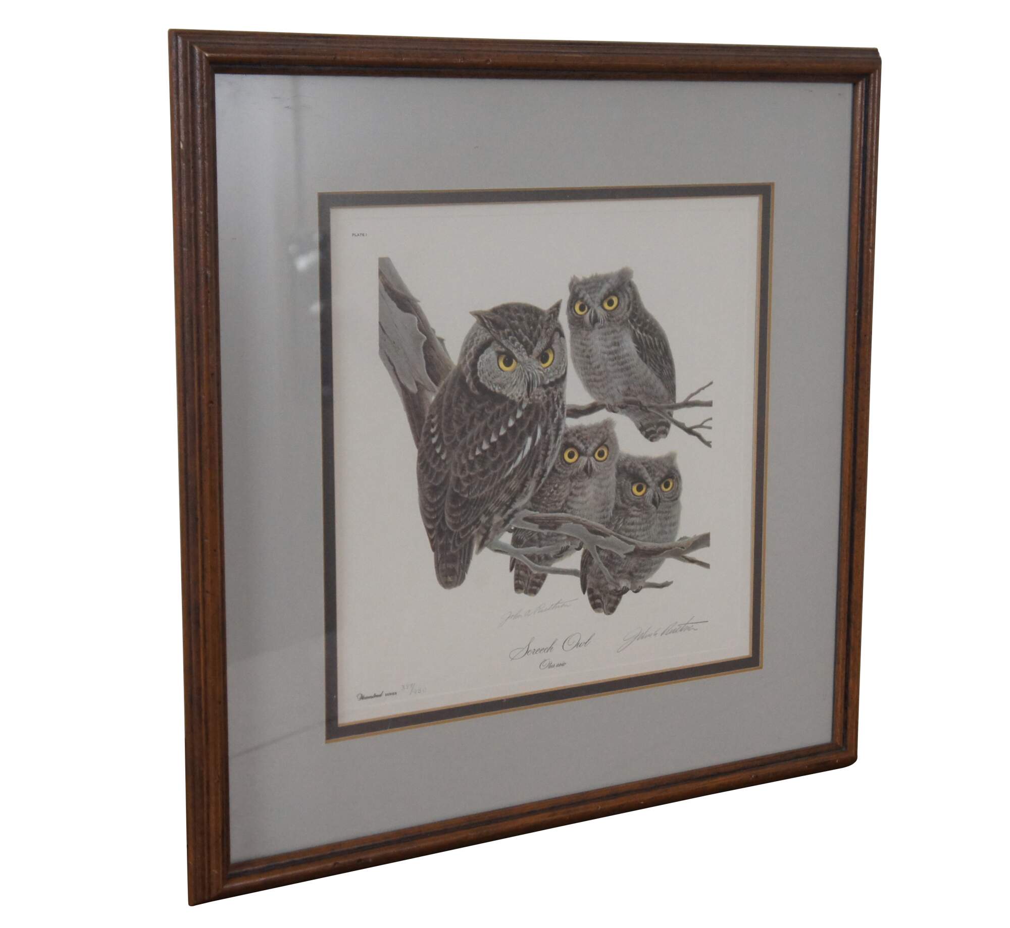 Vintage framed lithograph print of Screech Owl (Otus asio) – Plate 1 No. 387 from the Homestead Series by John A. Ruthven. Pencil signed and numbered 387/950.