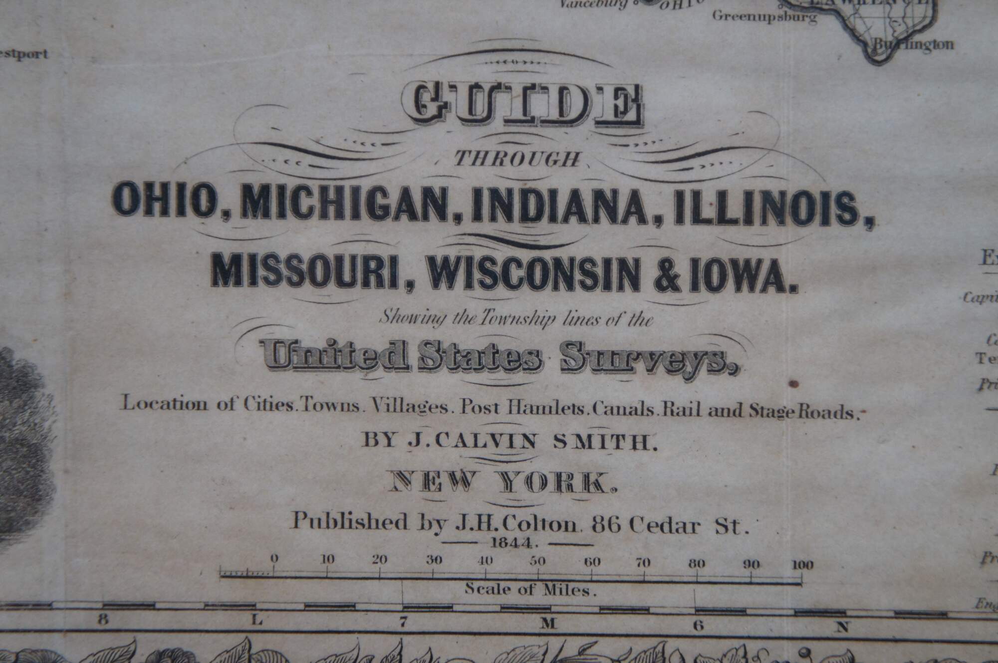 This striking cartographic map of the area known today as the Midwest was issued by John Calvin Smith and published by J.H. Colton in New York. It was tipped into the back of a small travel guide titled “The Western Tourist and Immigrants Guide,” also published by Colton and included with the map.
