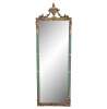 Vintage French Neoclassical vanity dressing mirror featuring rectangular form with gilded floral accents and trophy urn topper. Imported and sold by JC Penny.