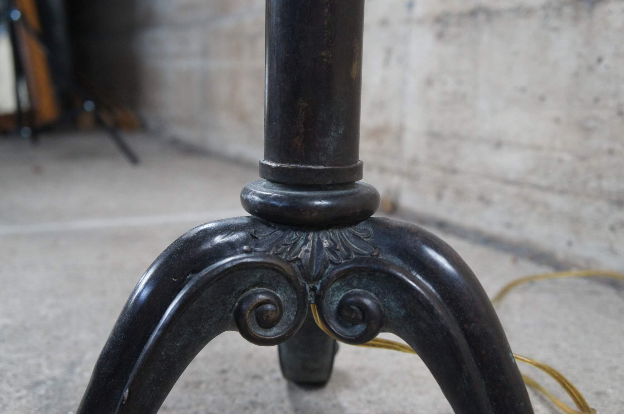 Late 20th century floor lamp by Maitland Smith. Features a tessellated shell shade that is fluted with a clambroth or crimped rim. The base is metal with leaf accents and a scrolled tirpod base.