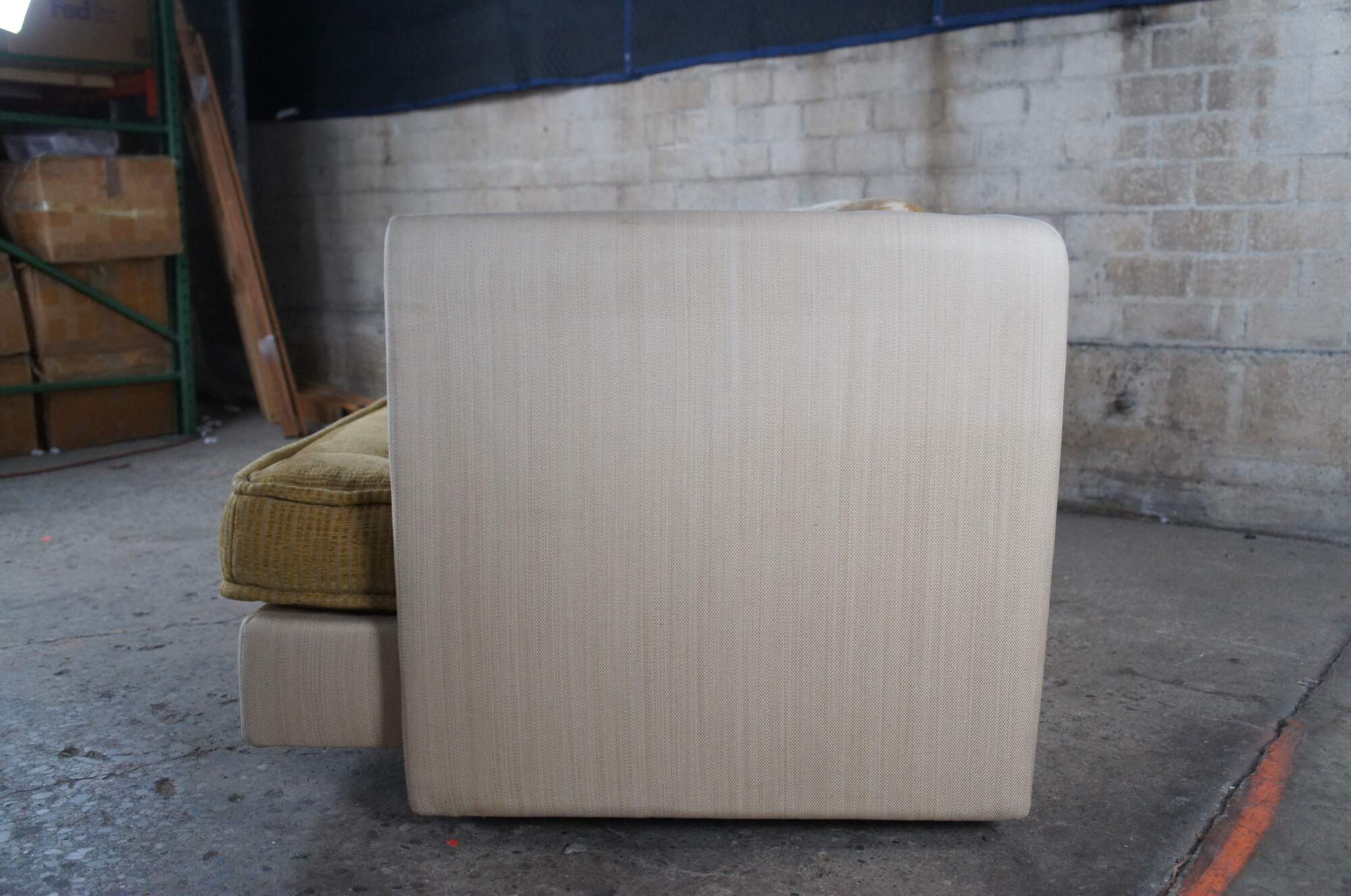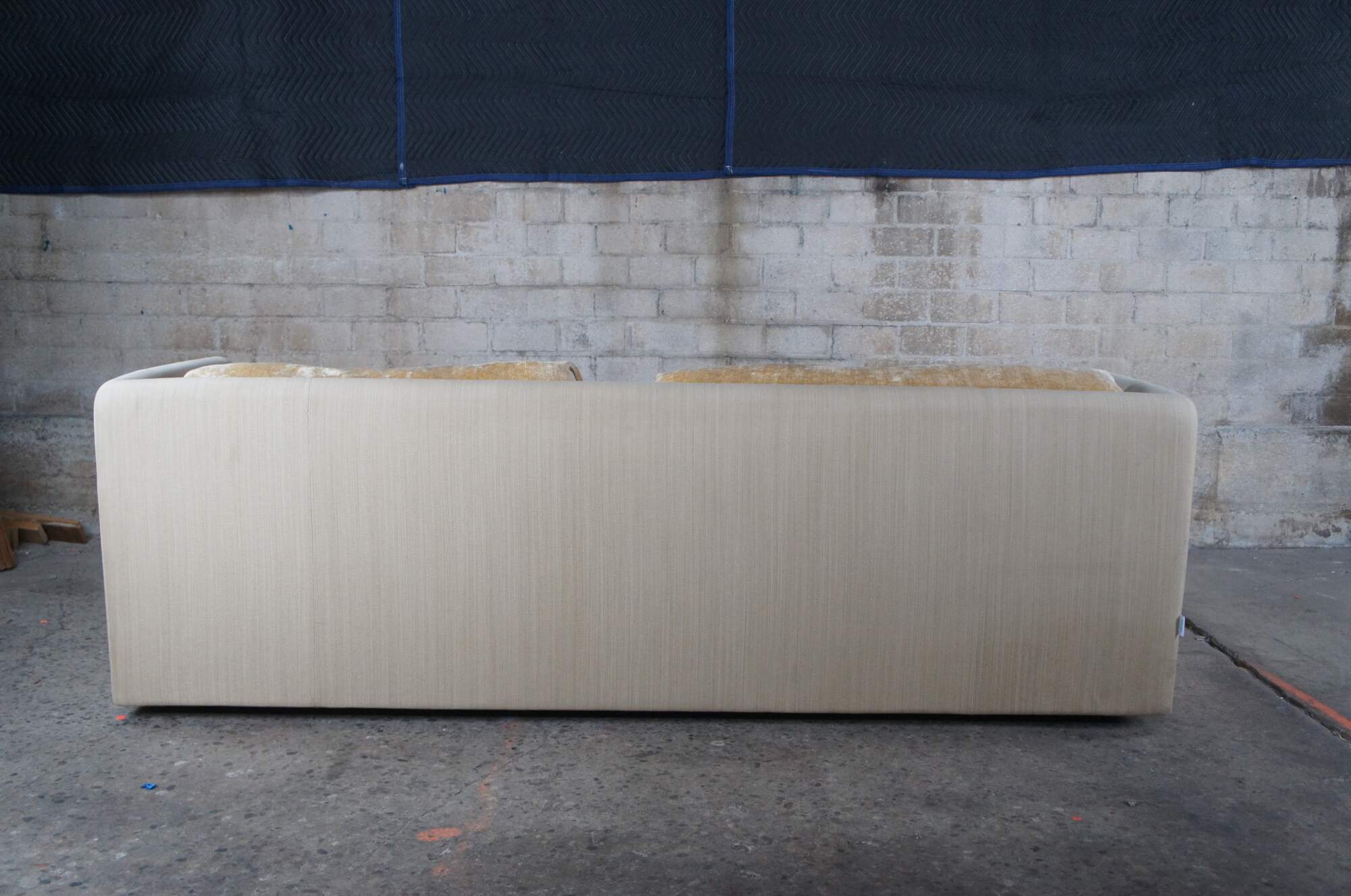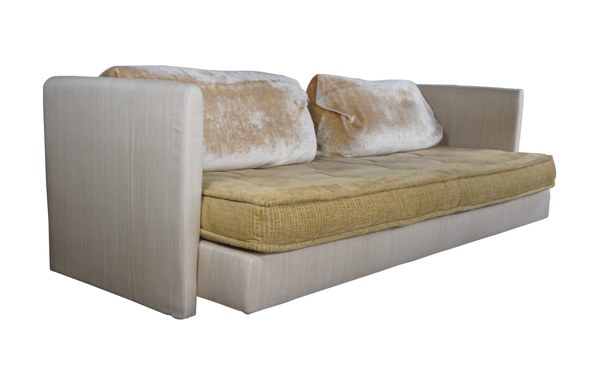 Good Overall; some age and use related wear, small tear to the top of left arm as well as one of the pillows.