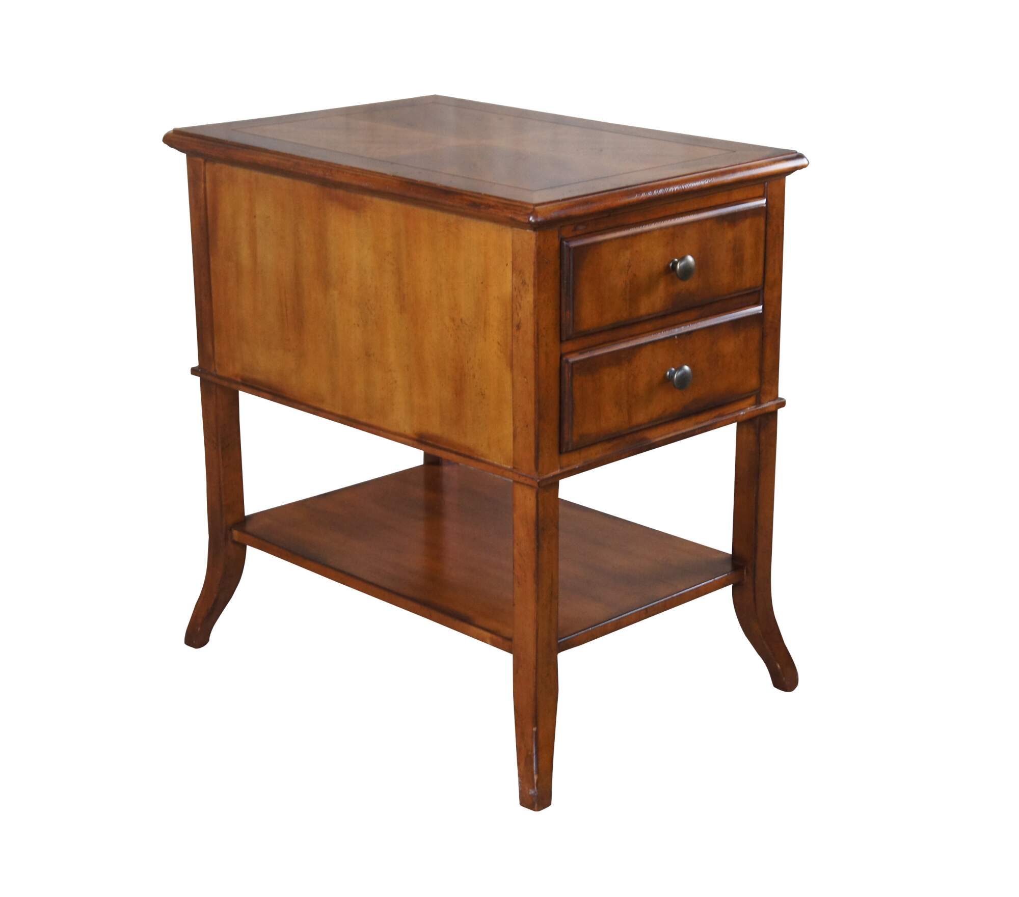 Vintage CTH Sherrill Occasional table featuring a tiered rectangular design with lower shelf, two drawers and flared legs.