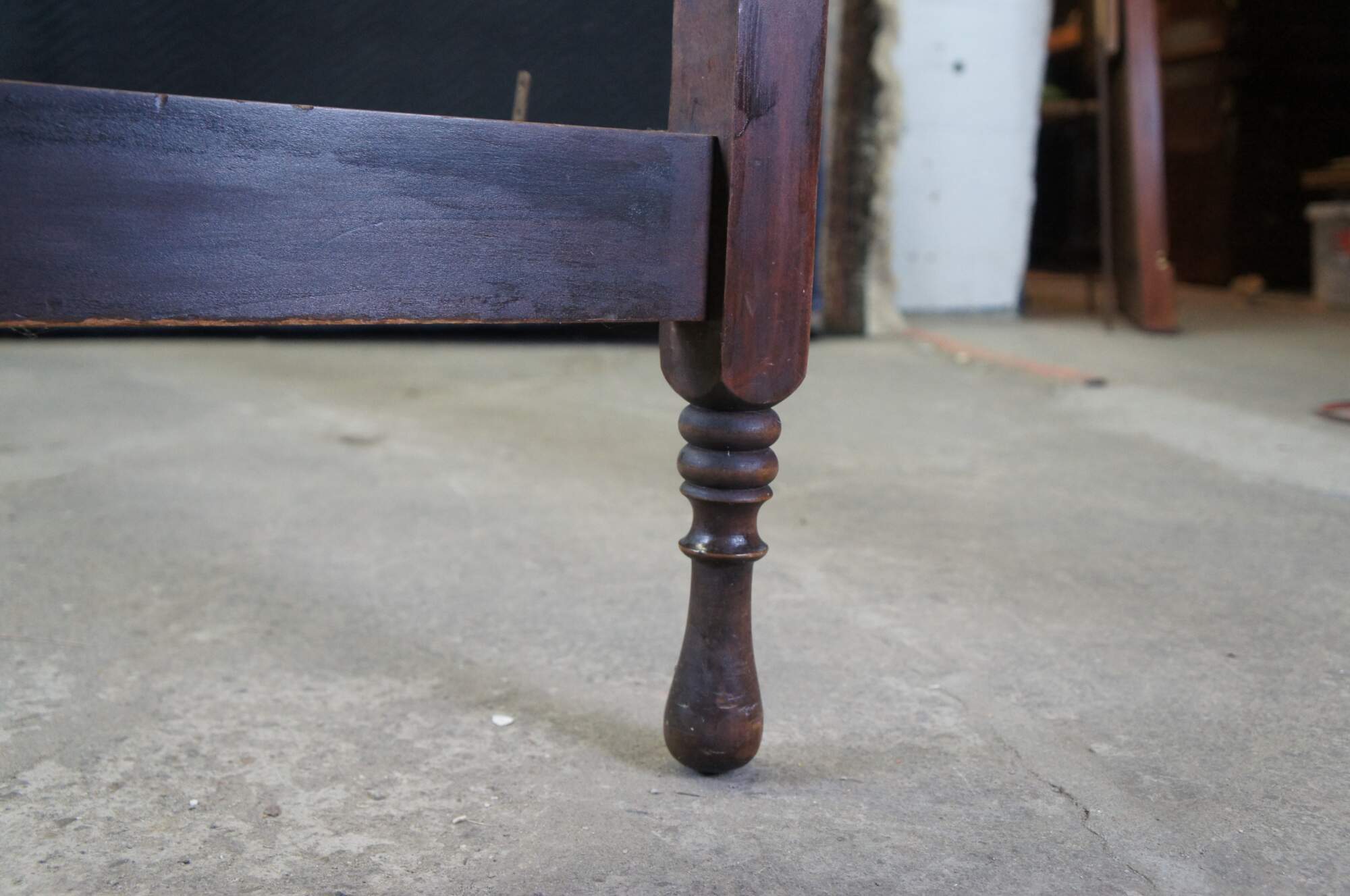An antique Early American style small single poster bed. Features turned posts and toupie feet.