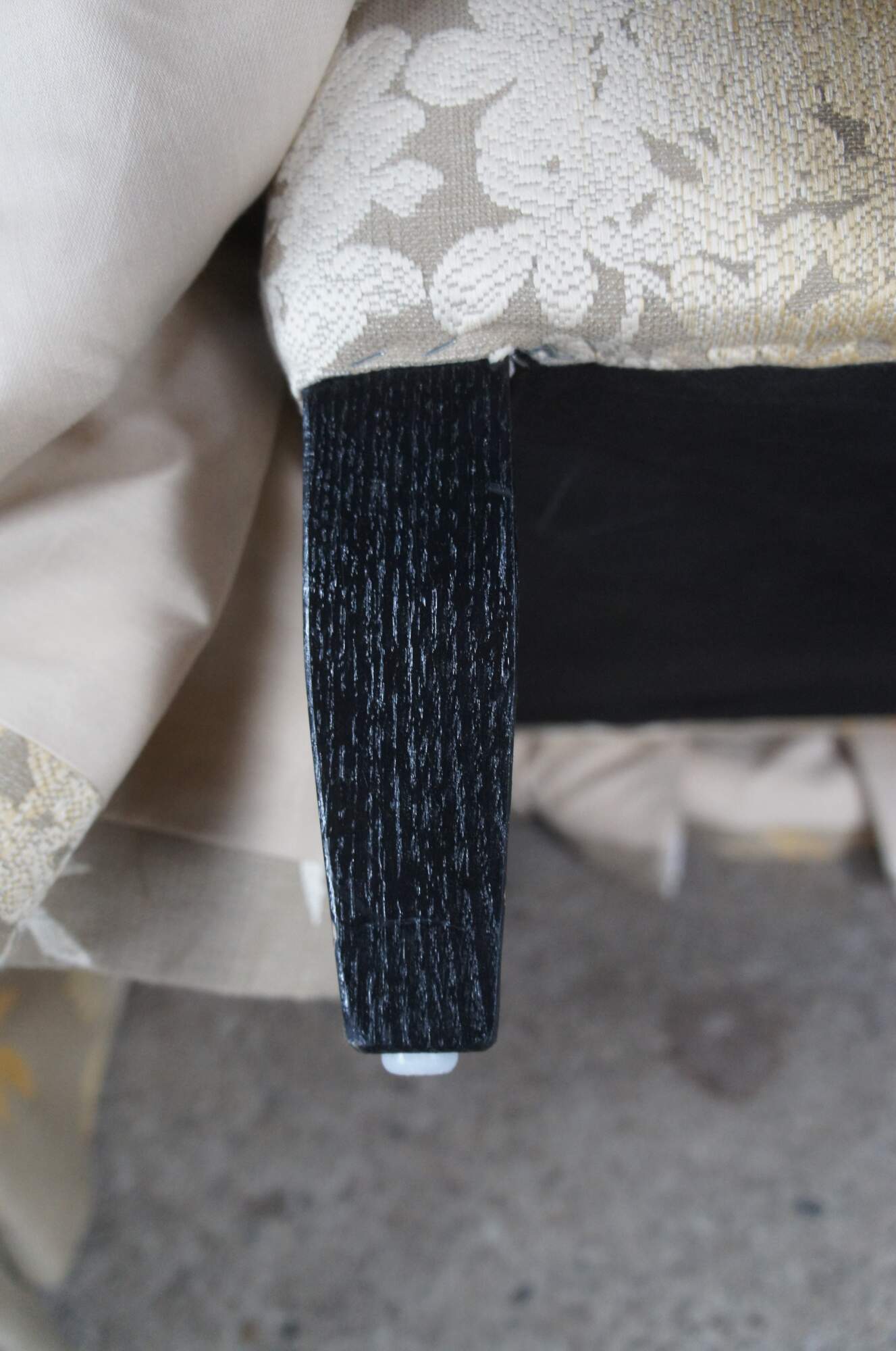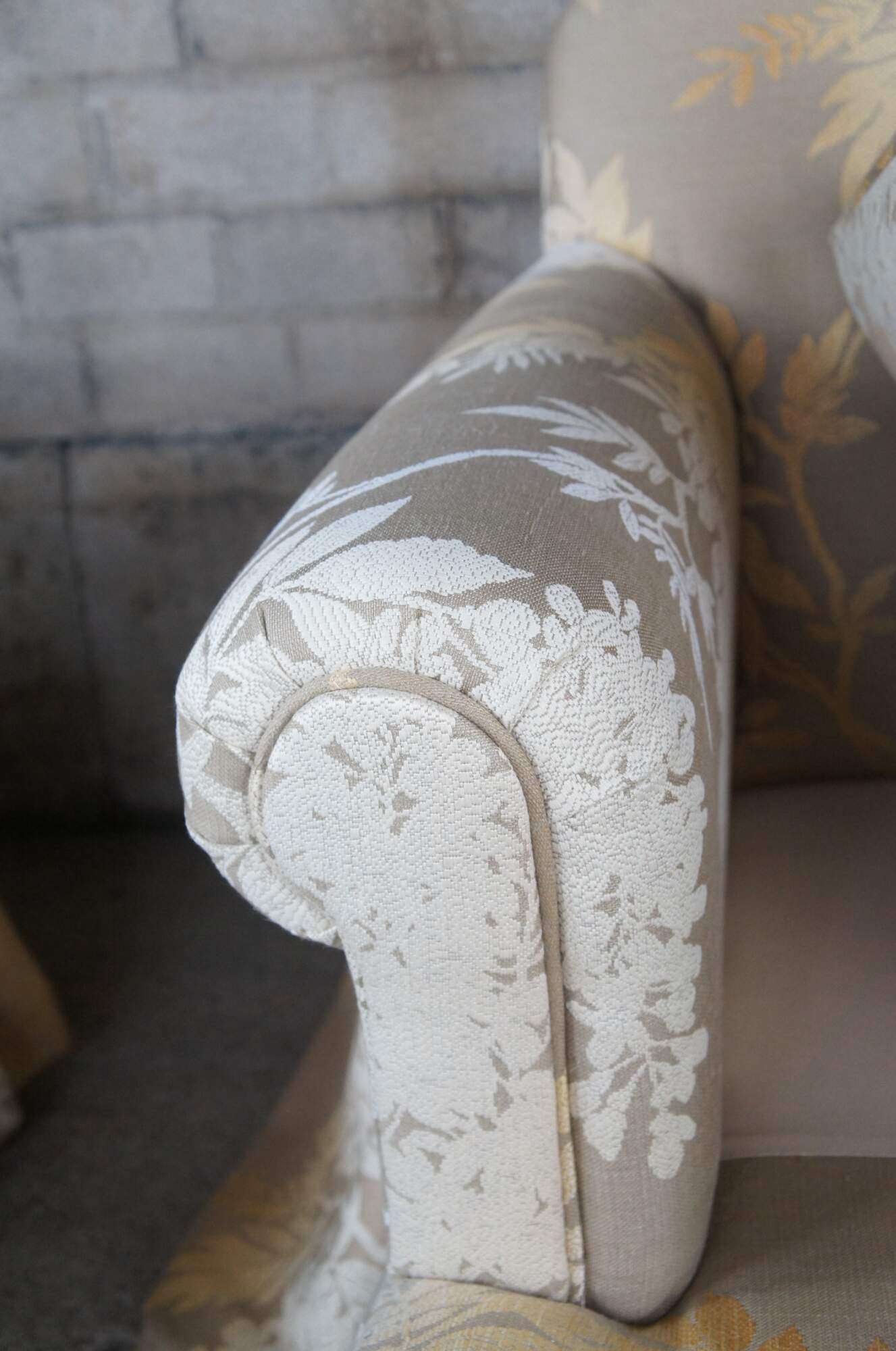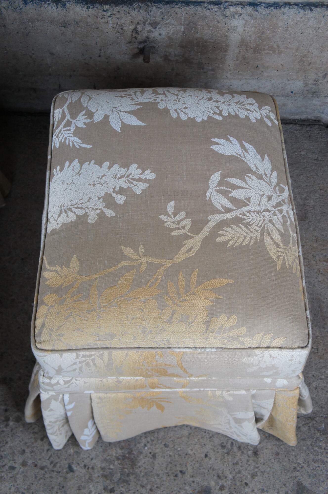 Vintage Lynch Chair & Ottoman by Taylor King, #5316-01, 5316-00. featuring rolled arms with beige / gold / whitish silver floral skirted upholstery.