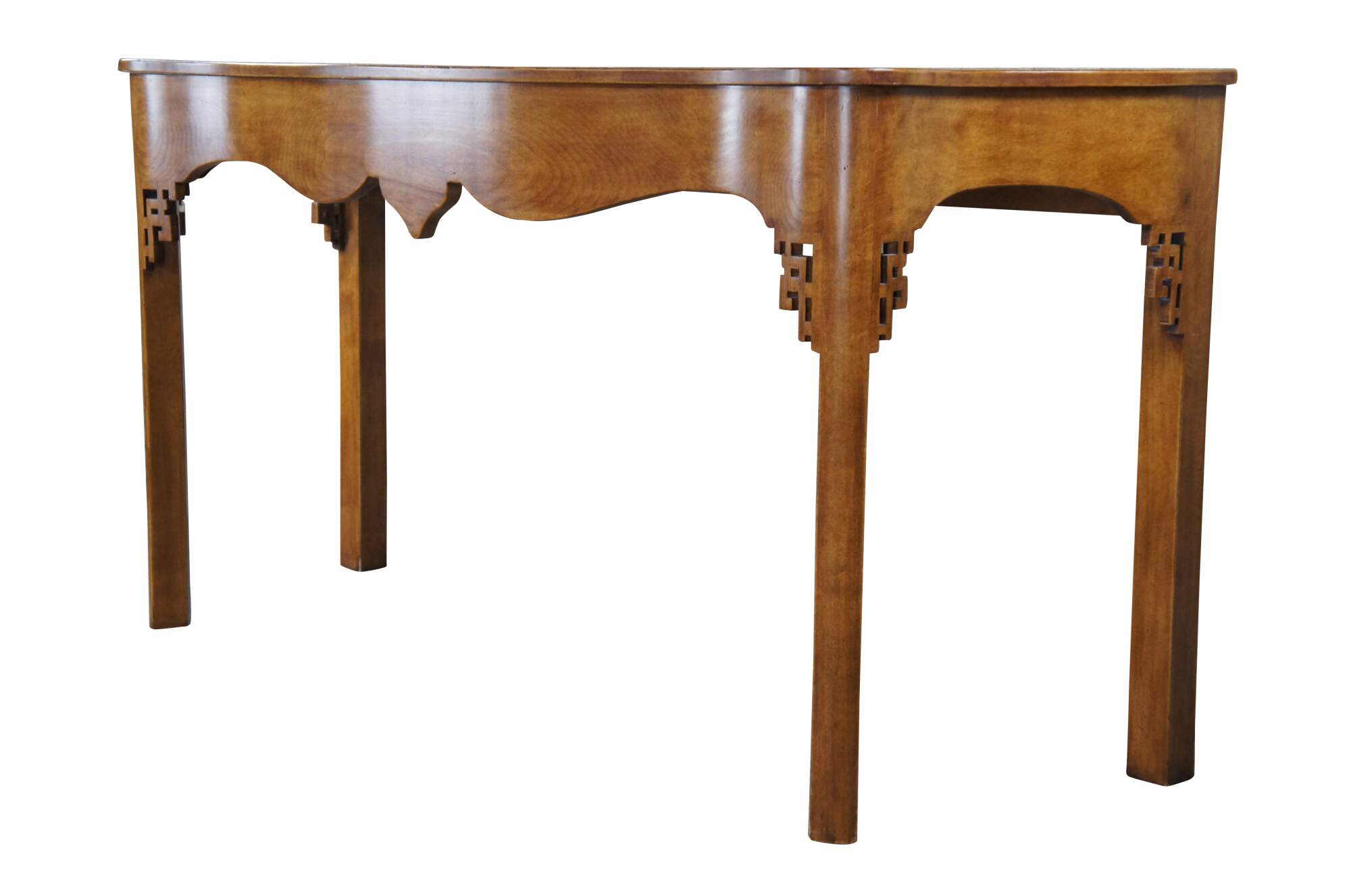 Vintage Minton Spidell Lyford Console or sideboard table. Made of walnut featuring Chinese Chippendale and serpentine styling.