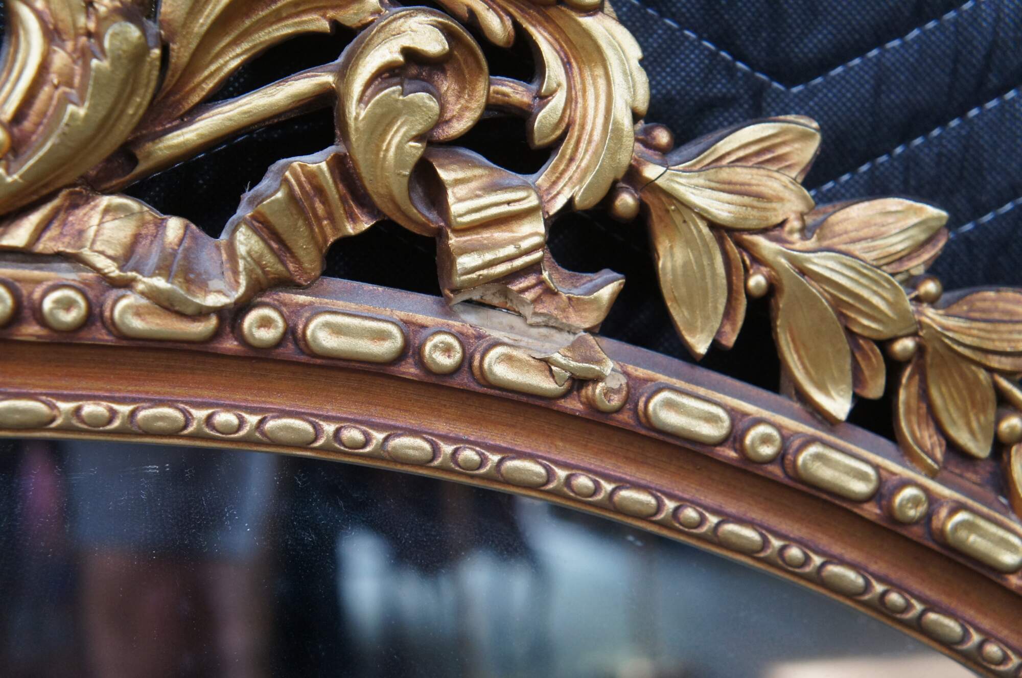 Mid 20th Century T. Eaton & Co oval wall hanging mirror. Neoclassical inspired with ribboned accents and foliate detail. Made from wood and gesso.