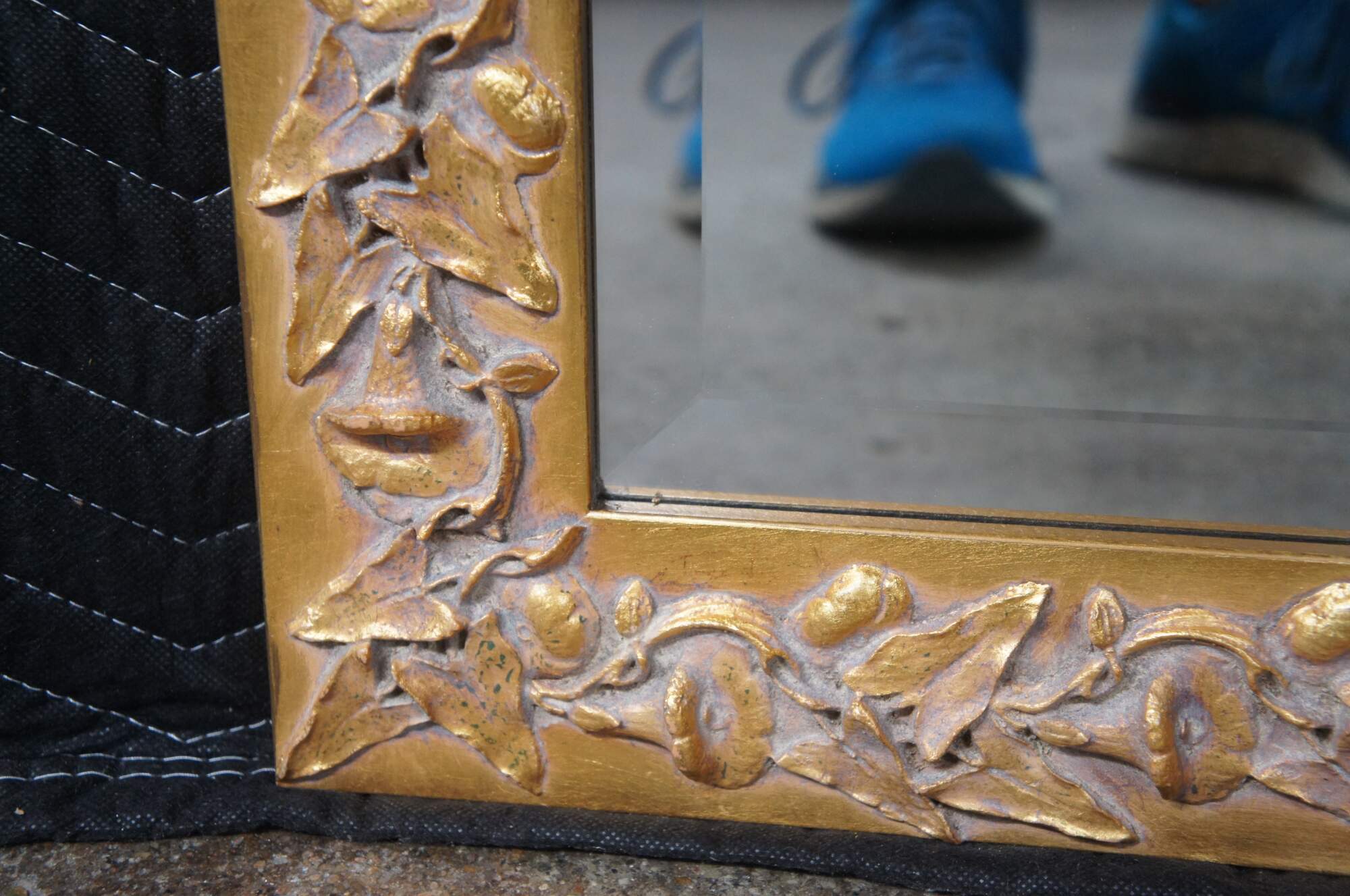 An ornate Neoclassical style mirror from the last half of the 20th century. Features a low relief raised frame with foliate and vine motif. The mirror can be used horizontal or vertical. Great for use in along any wall, in a bathroom or as an over mantel mirror. From Framed Picture Enterprices in Batesville, MS