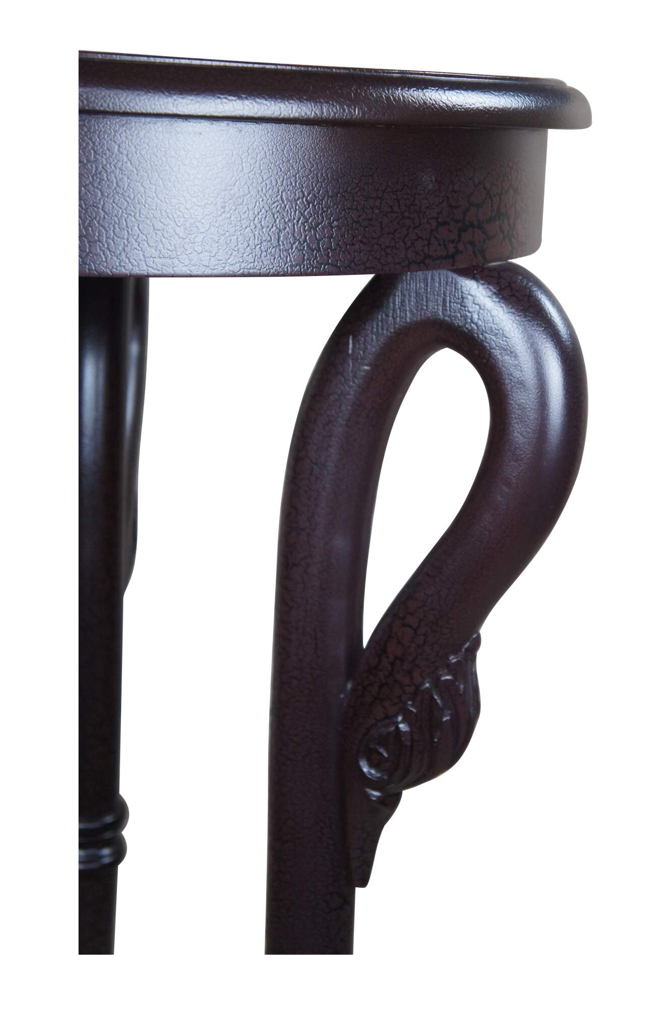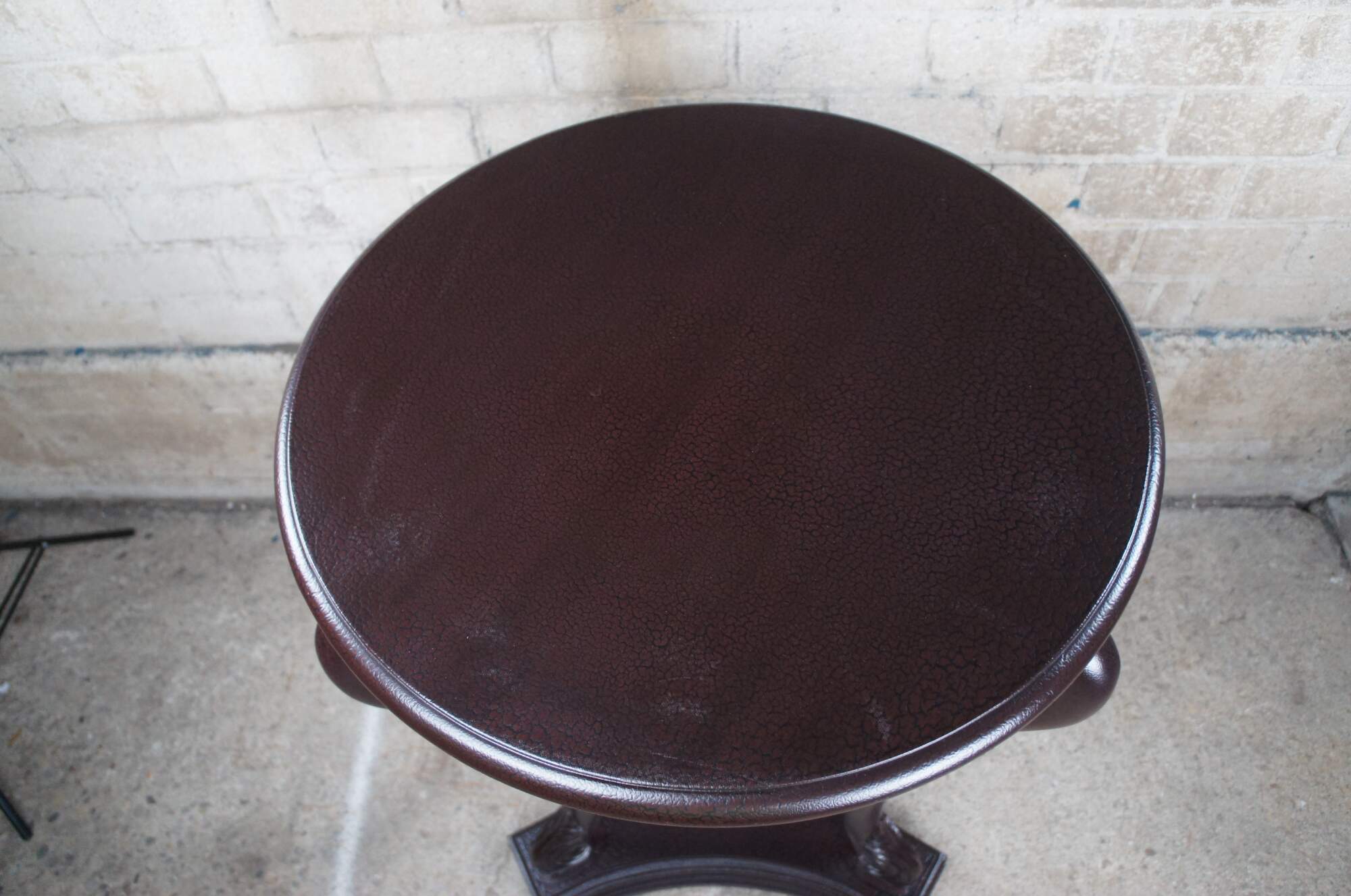 Stately French Directoire and Empire inspired Pedestal or Sculpture Stand. Made from hardwood with a crackle lacquer finish. Features three intricate downswept swan supports leading to an acanthus scrolled foot over a tripod base. Finish is a reddish brown with black crackle lines. The tables large stature allows for use as a pub bar table or stands out for display of any sculpture or plant.