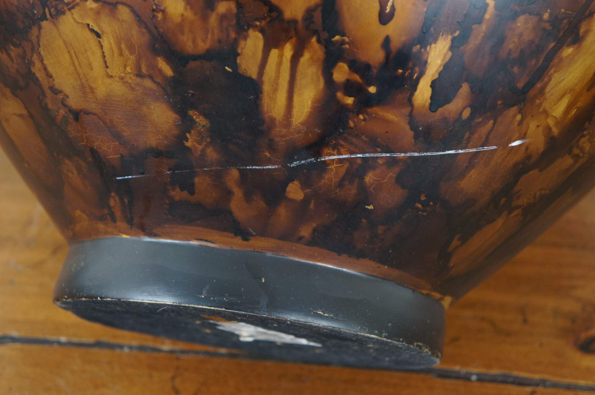 Adelina composite / resin urn shaped vase, mottled with deep brown and metallic gold / amber. Product number KC0616