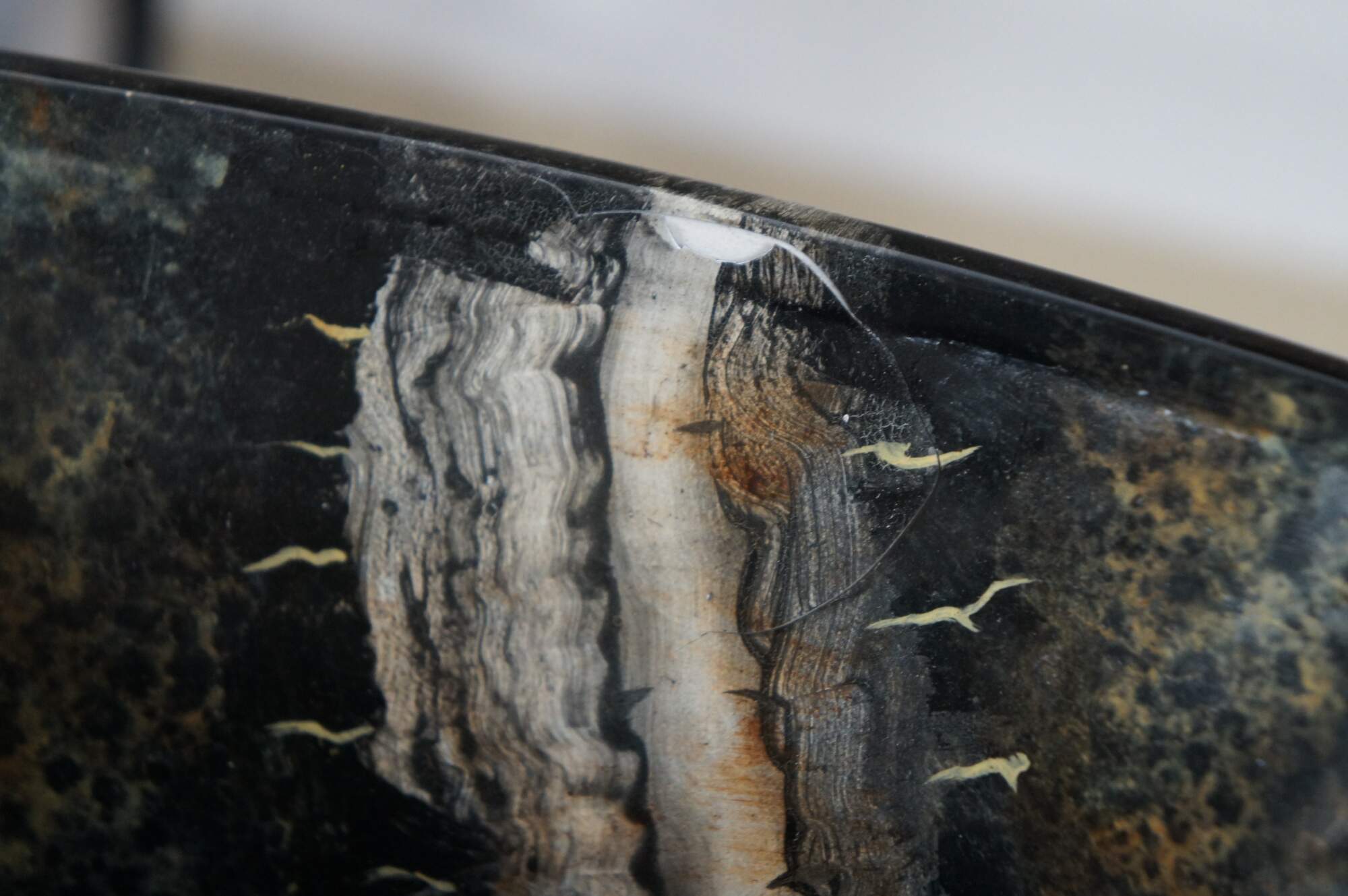 Good Overall - Lacquer chipped at corner; some cracking sections of lacquer