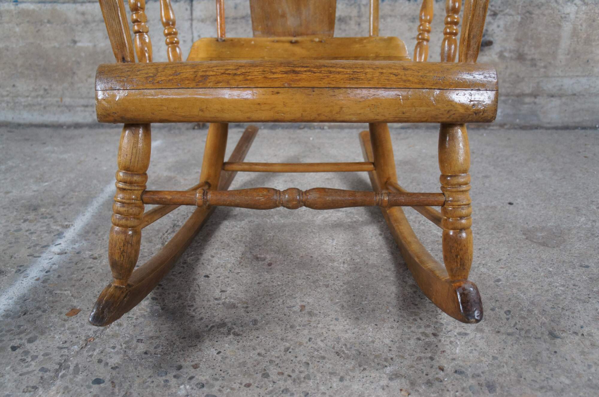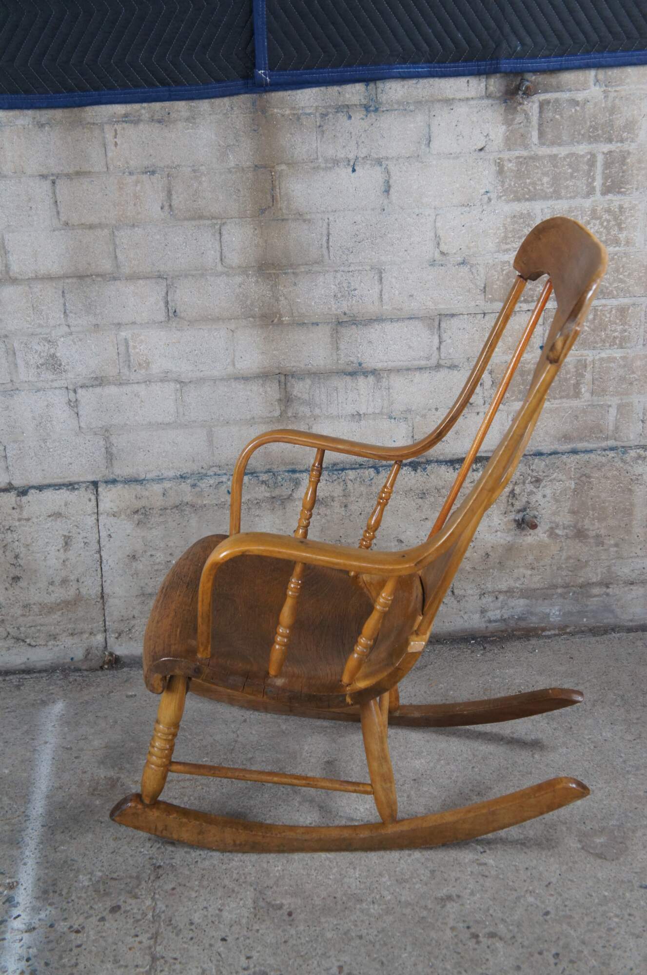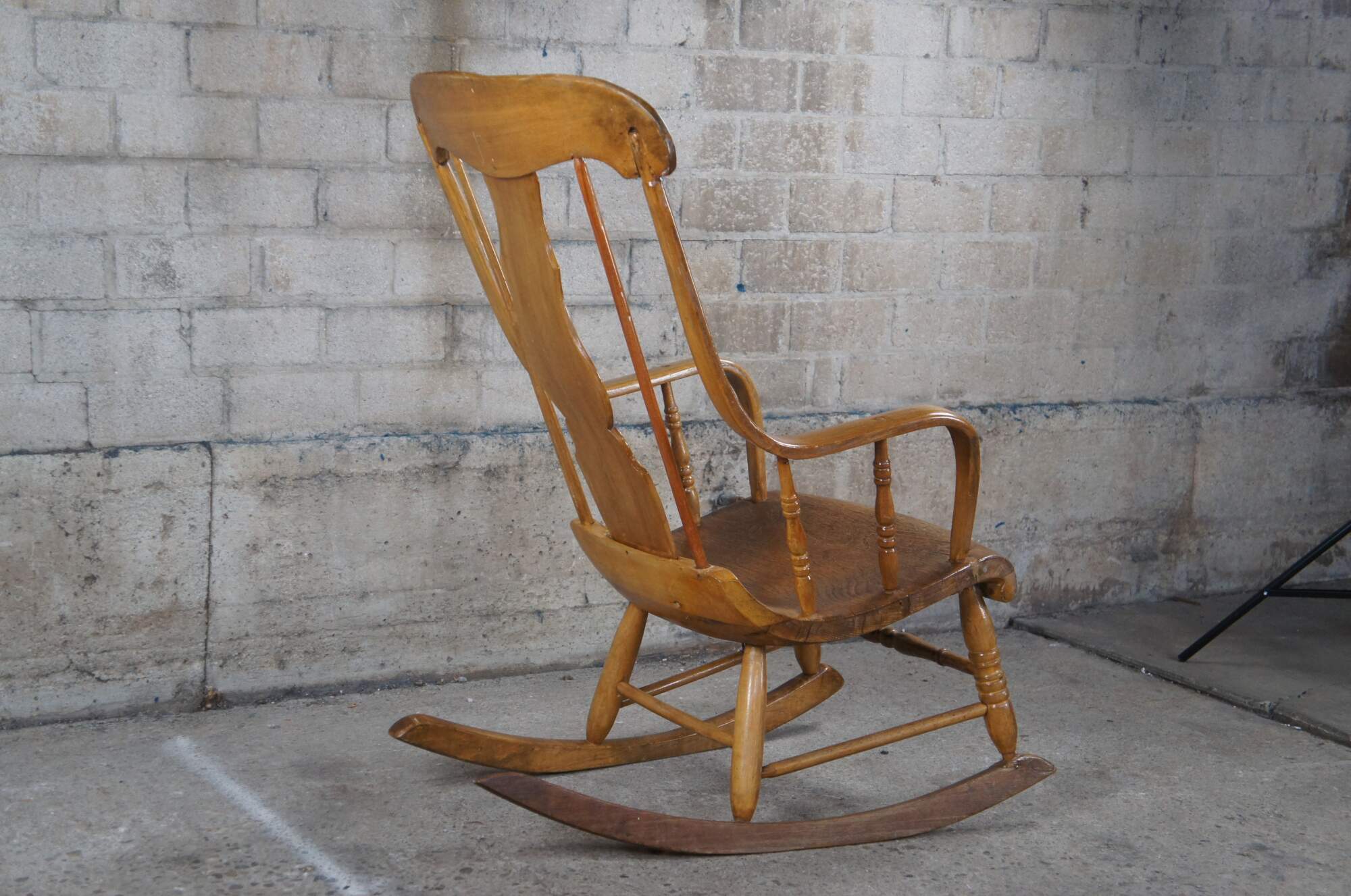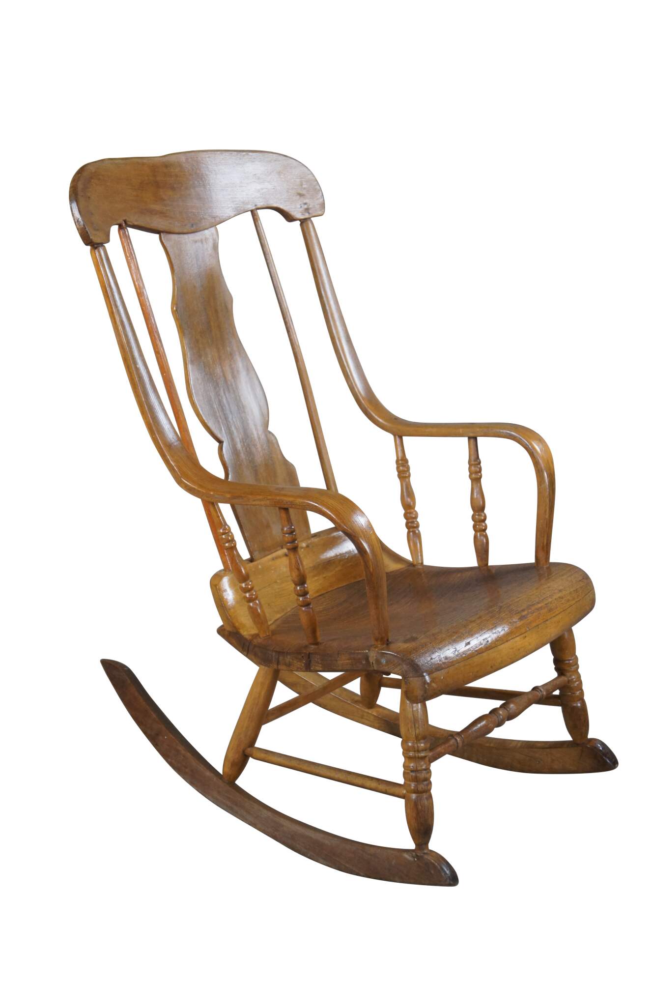 Antique Boston rocker, circa 1850s. Despite the name, Boston rockers were actually made in Connecticut. They have a scrolled seat, spindled splat back, and a rolling headpiece. The Boston rocker was most popular from 1830 to 1890.