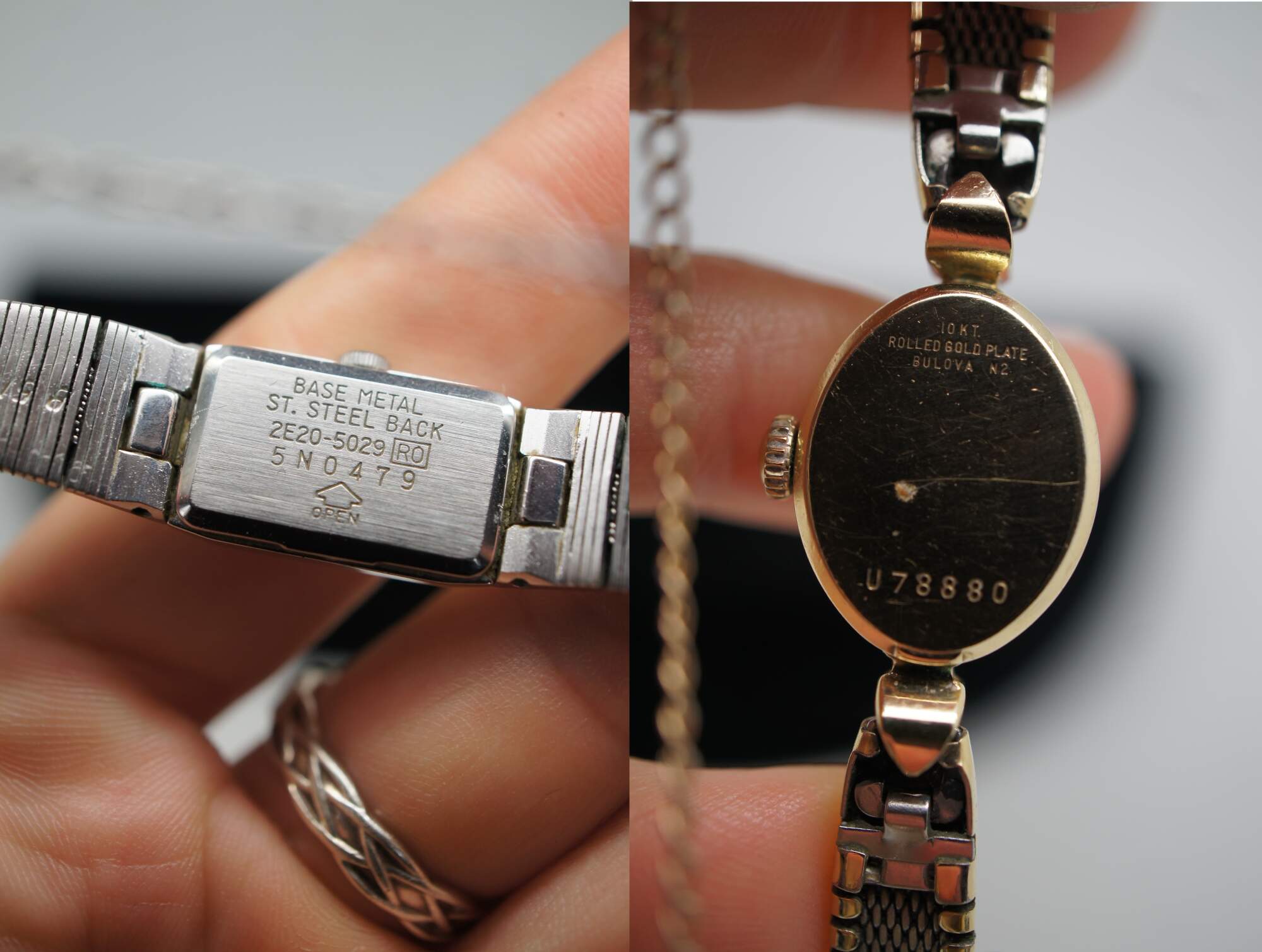 Lot of 11 vintage ladies watches, ten standard wrist watches and one clip on watch. Lot includes Bijou Terner, K-2853L; Anne Klein, 10/4737; Carlo Rossi; Citizen Watch Co. Elegance, 5421-F41841 YO, 1050865; ЧАЙКА (Cajka); LA Express, LAX1336, 012, P022A; Wittnauer; Ritma; Seiko, 2E20-5029 RO, 5N0479; Bulova N2, U78880; and Le Coultre Staybrite 70934, Modele Depose.