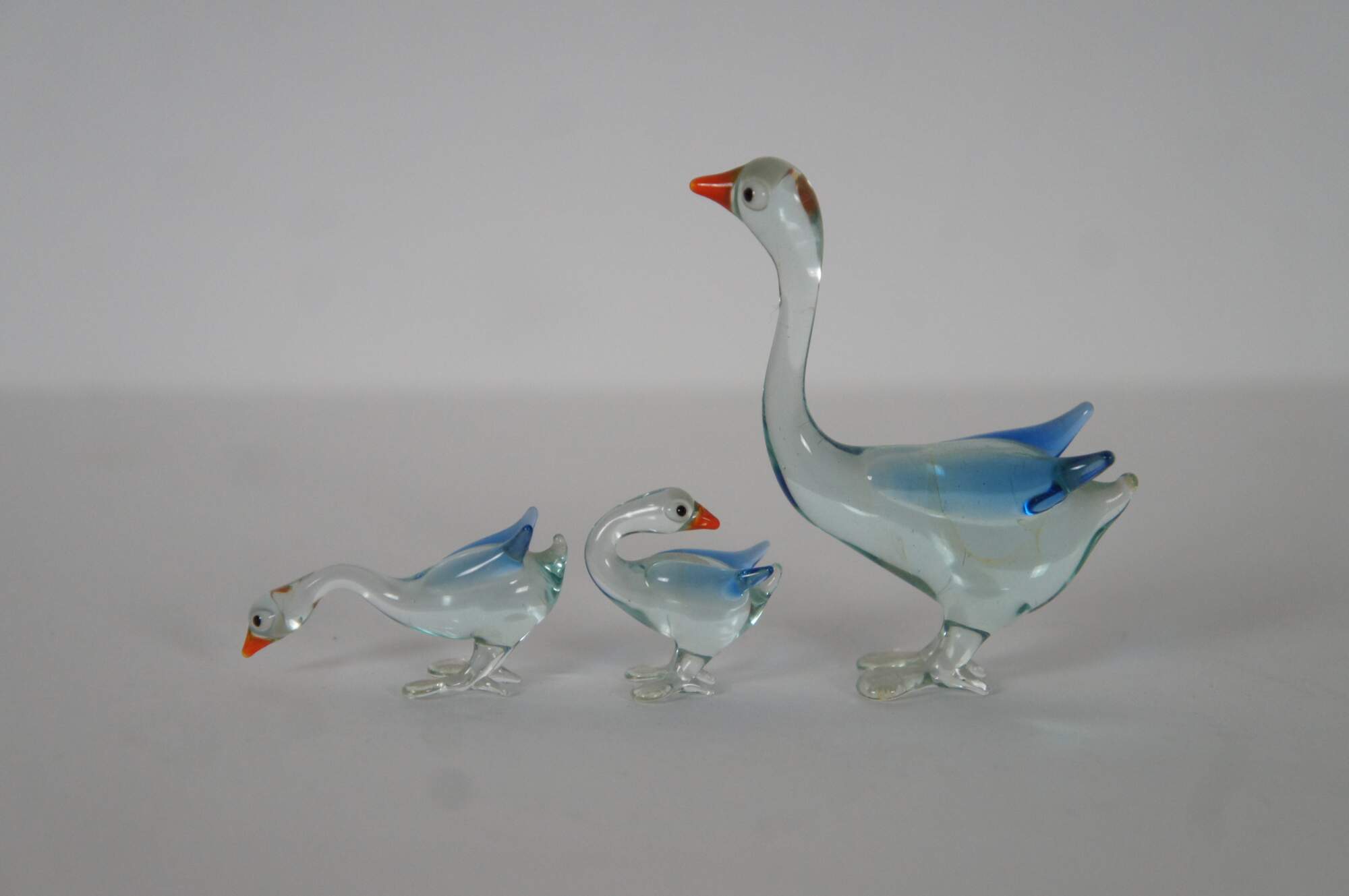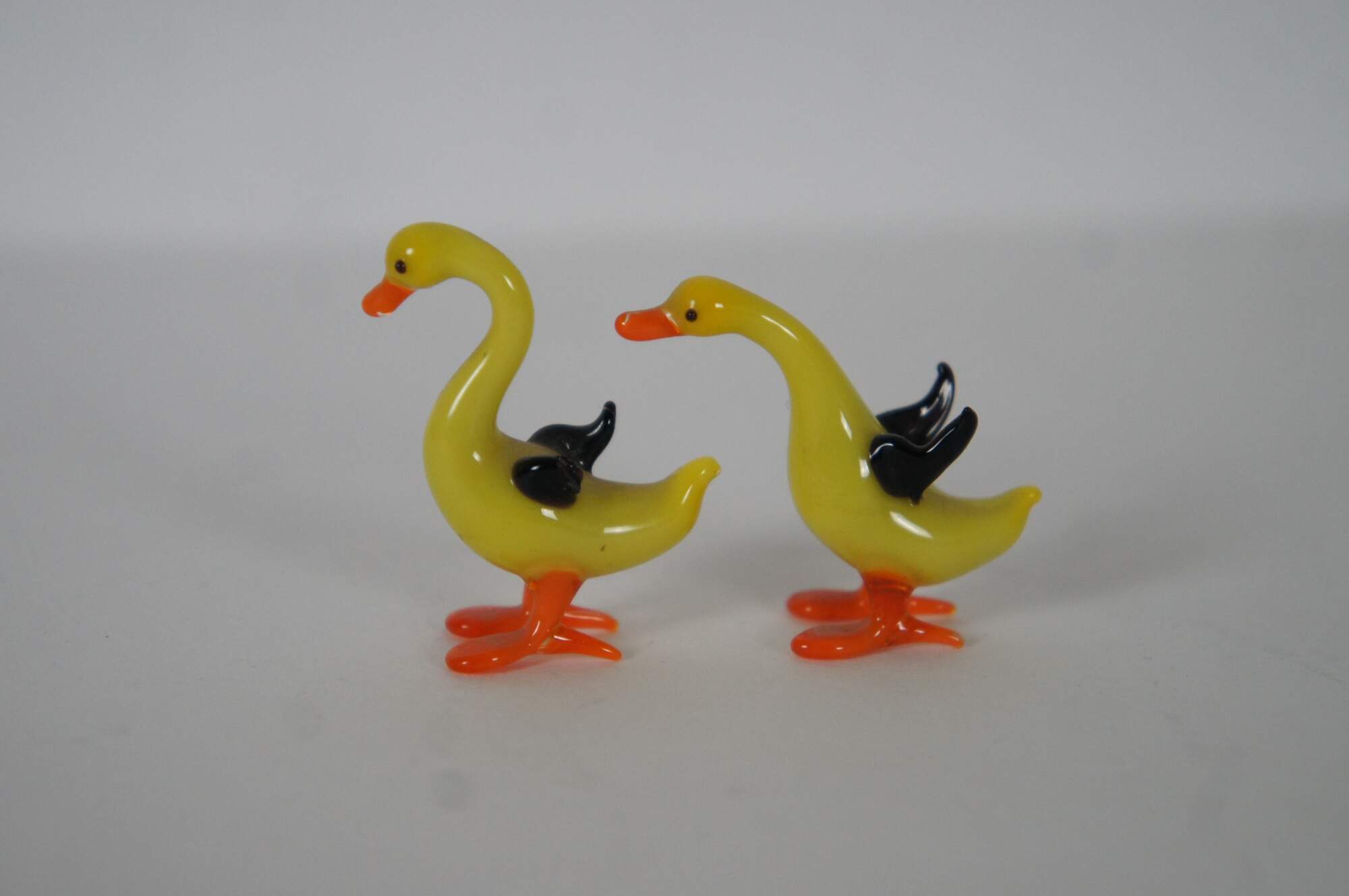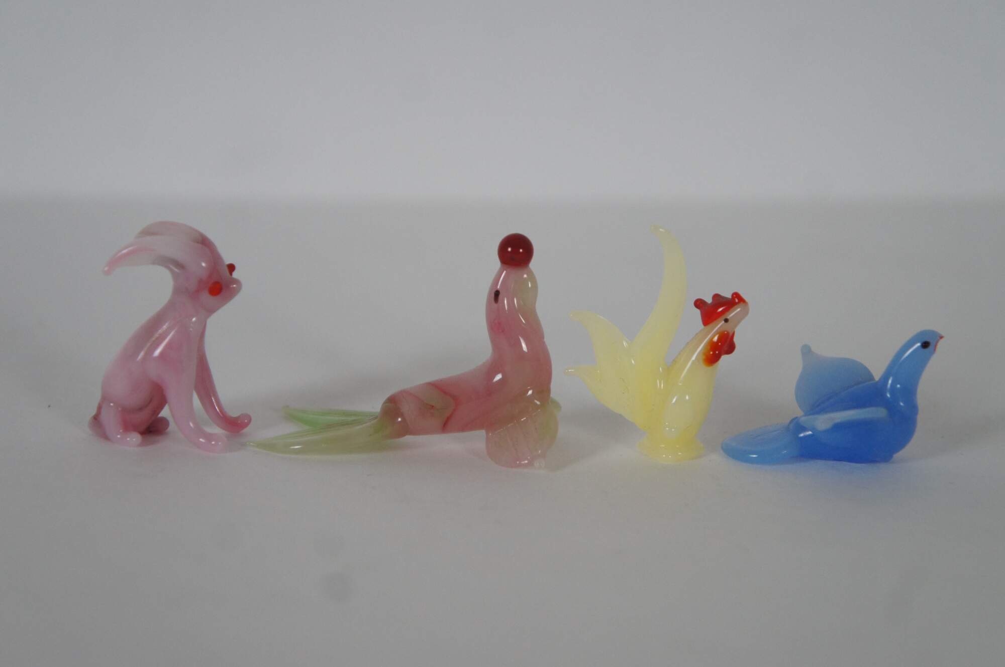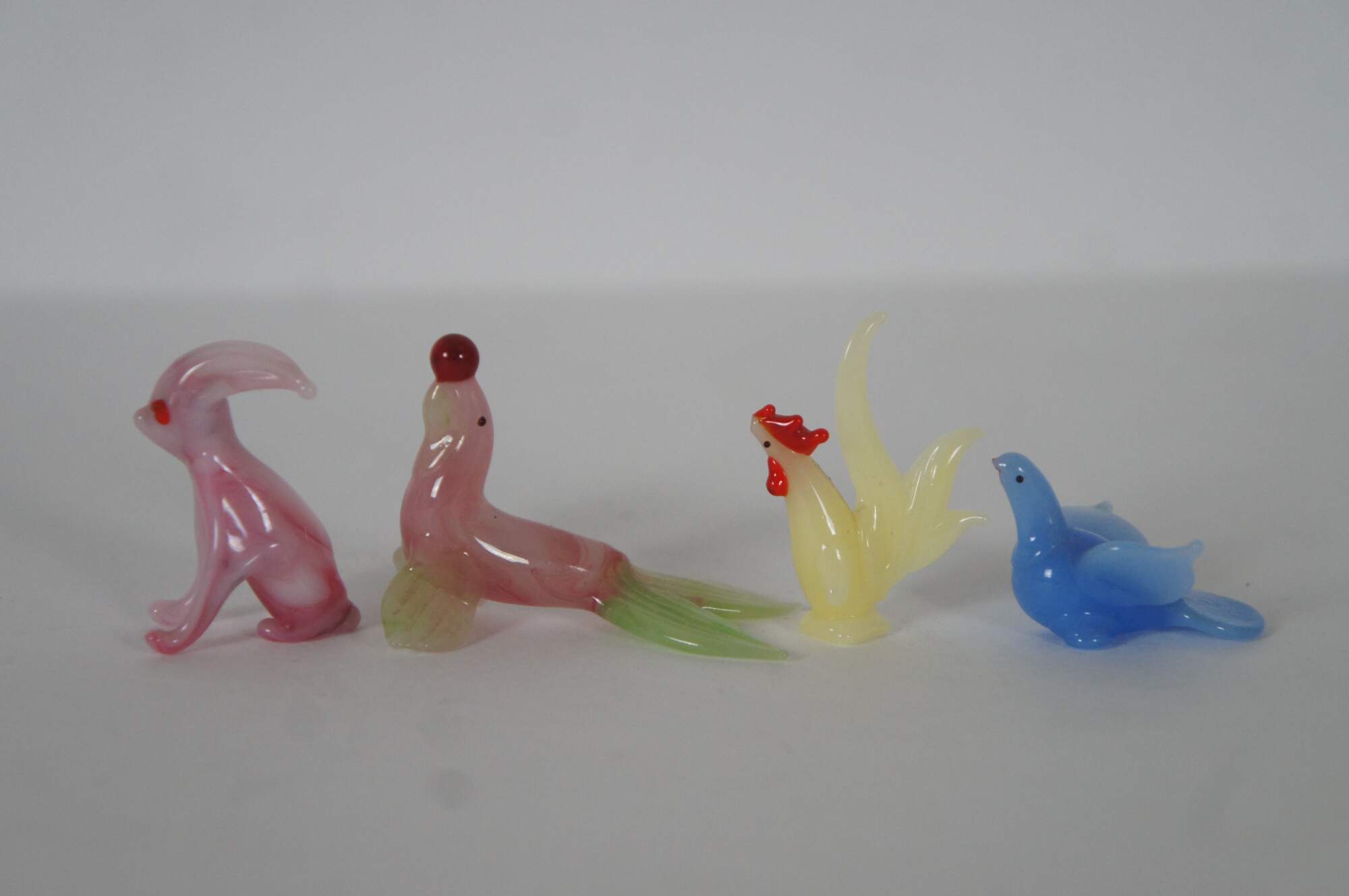 Vintage lot of twelve farmhouse ornament / figurine animals, hand blown in various colors and designs. Includes Rooster, Chicken, Geese / Goose, Rabbit, Seal / Sea Lion, Dove, Ducks, and Elephant.
