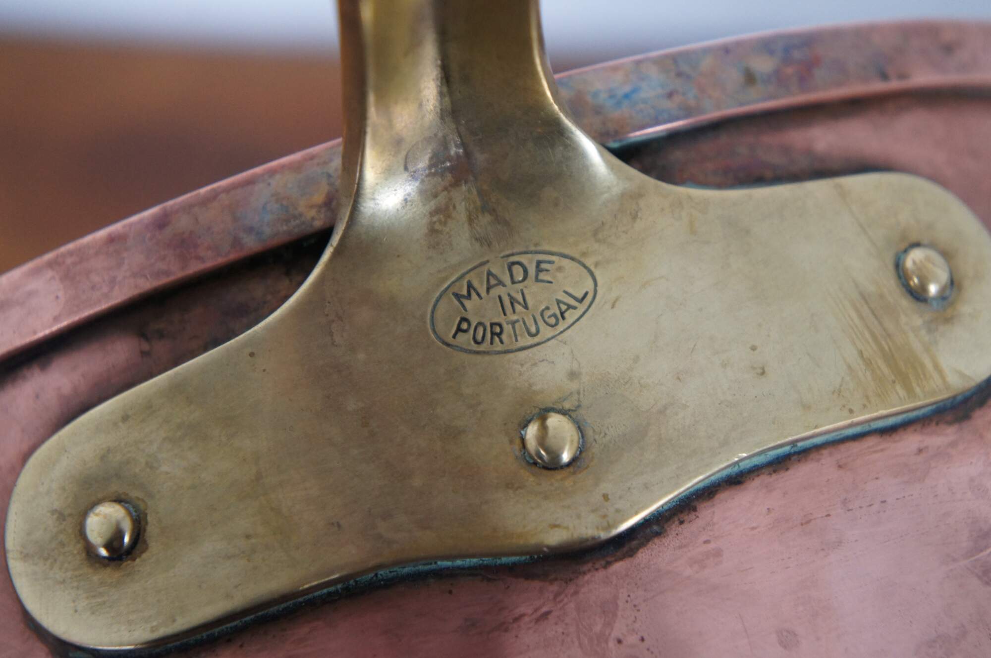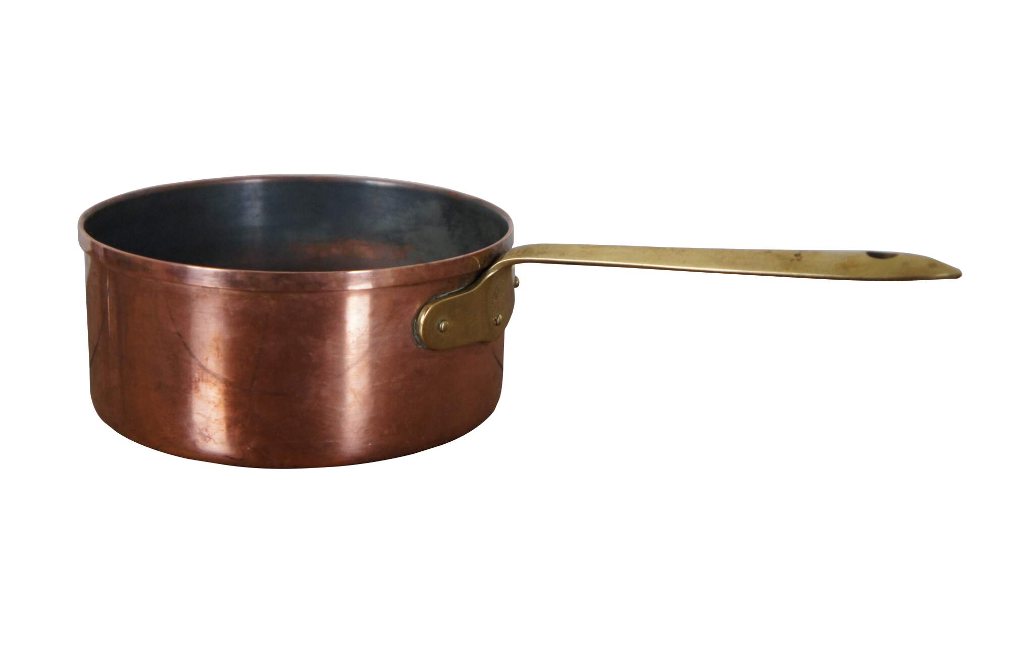 Vintage Portugese copper sauce pot with brass handle. Made in Portugal.
