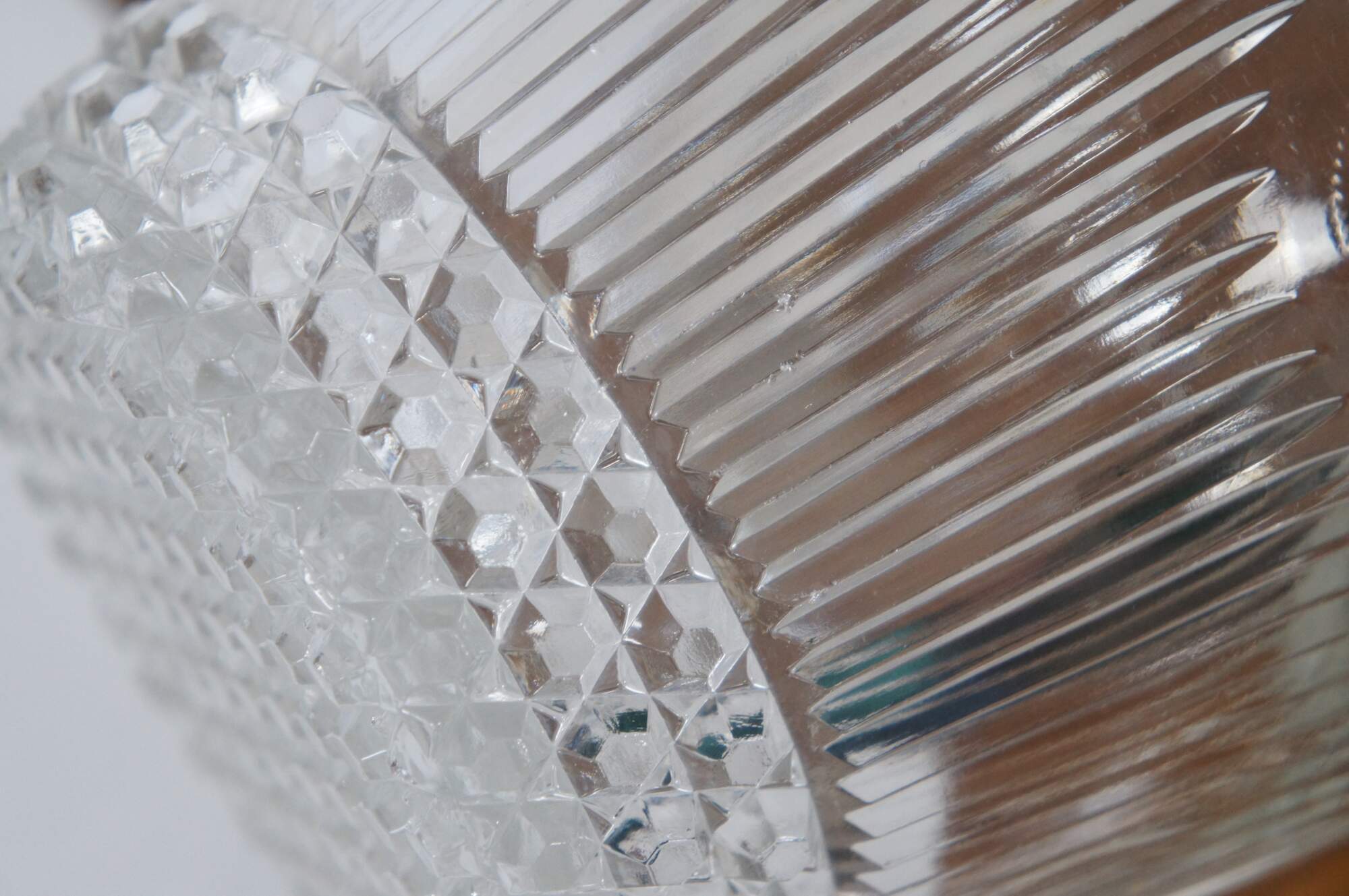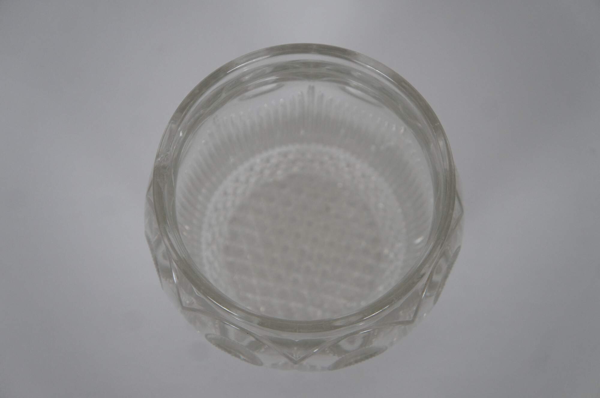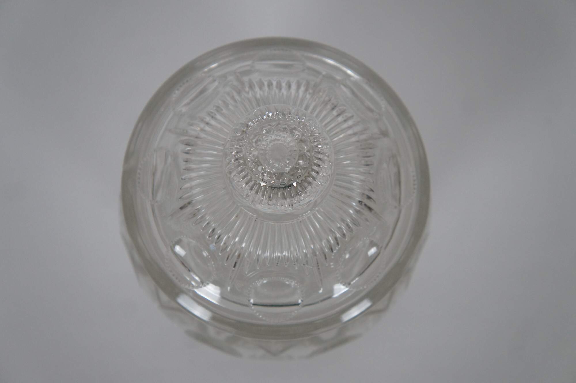 Art Deco era lidded glass jar with fluting and thumbprint pattern. Features matching lid.