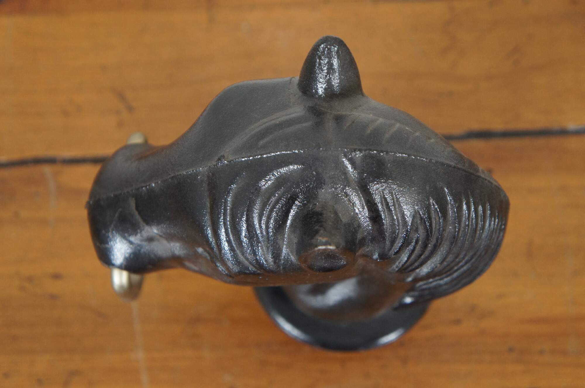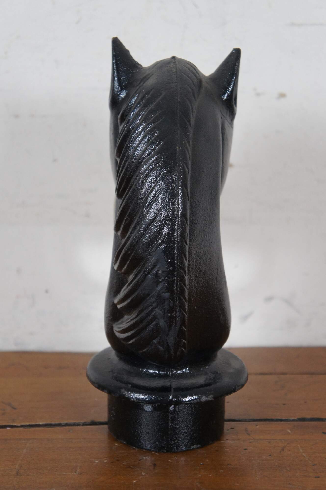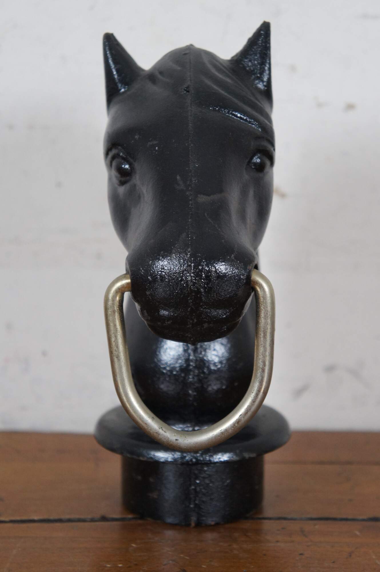 Vintage heavy cast iron horse head hitching post. Marked BM-015.