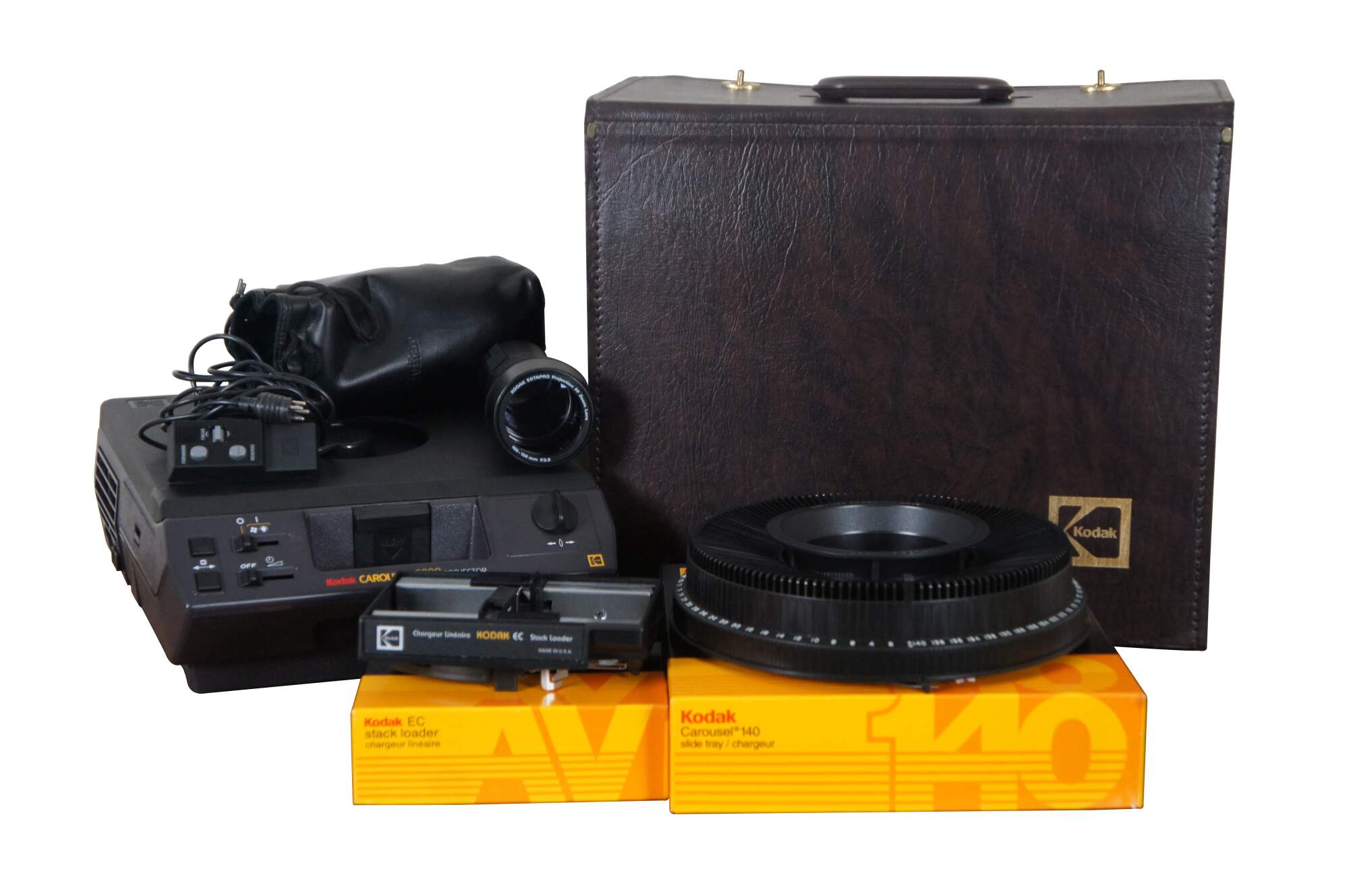 Vintage 1986 Kodak EC 40 Stack Loader, Carousel 140 Slide Tray, Ektapro Projection FF Zoom Lens 100-150 mm f/3.5 and original case.