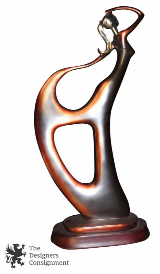 This is a gorgeous piece of fine art. It is a modernist sculpture that depicts a woman and it has an iridized look to it. This is an absolutely beautiful piece and it would make a wonderful addition to your home or collection.