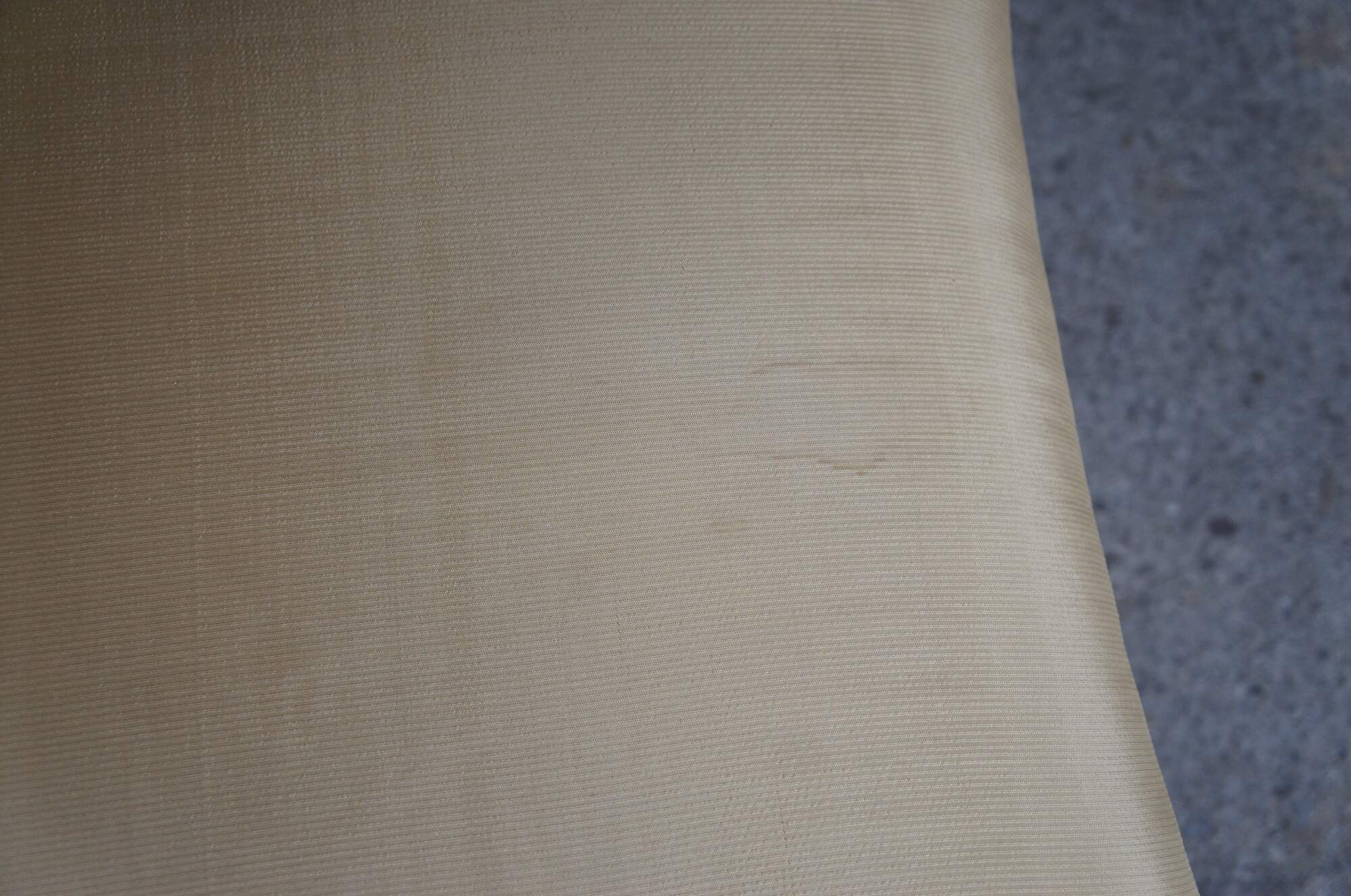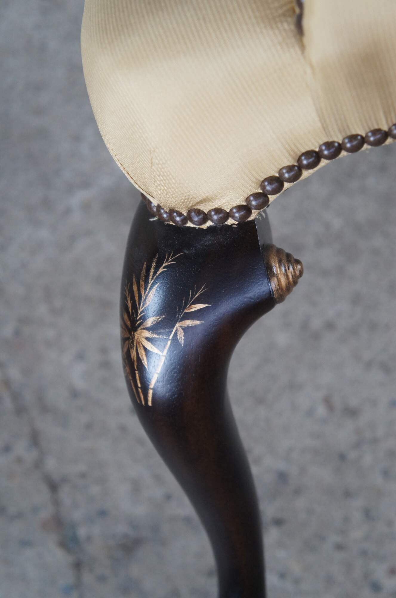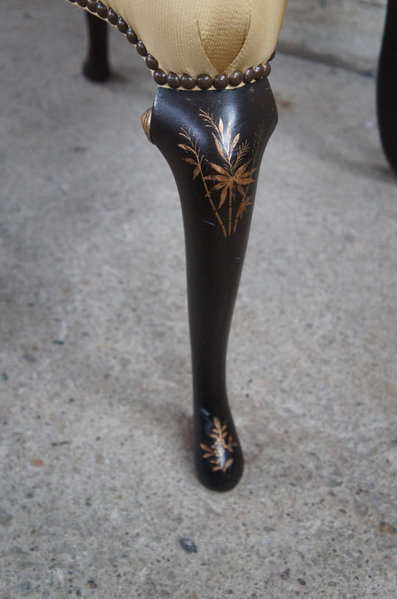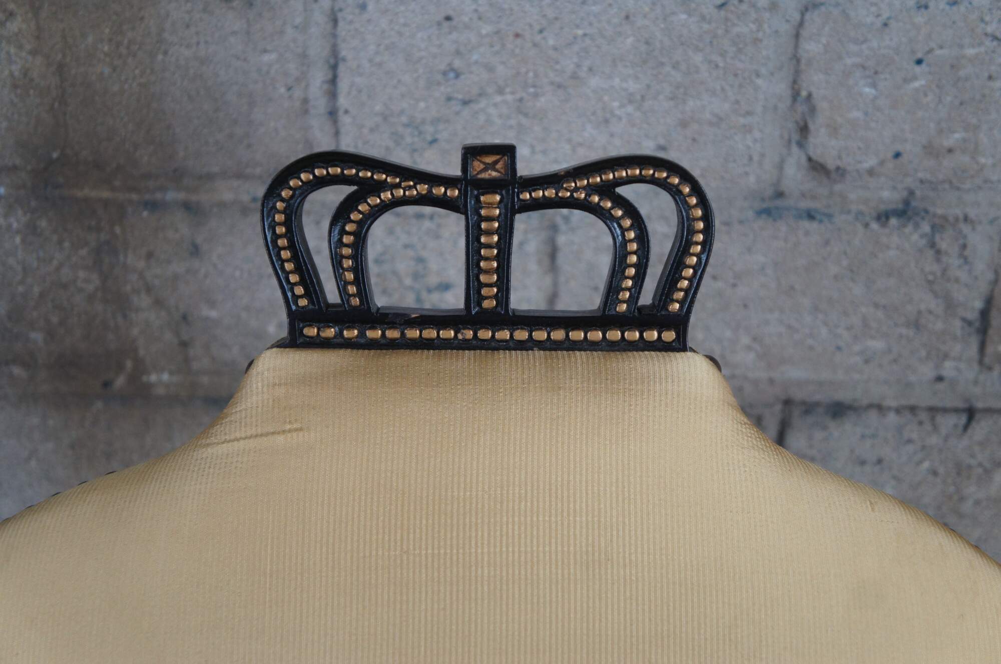 A Queen Anne Chair with an upholstered back in lieu of a splat. Elongated shepherd's crook (gooseneck) arm. Distinctive cabriole legs, with unusual splayed back legs. Nailhead trim. This chair owes to Lord Middleton and the family's home at Wollaton Hall - a Tudor palace filled with the work of Robert Adam, Thomas Chippendale and England's well - known portraitists. The crown suggests that it was made for the visit by the royal family. Ideal at a desk or positioned as a piece of sculpture. Gold decorated trim accents on crown and legs (5139D, inset). Circa 1710. No. BA5139