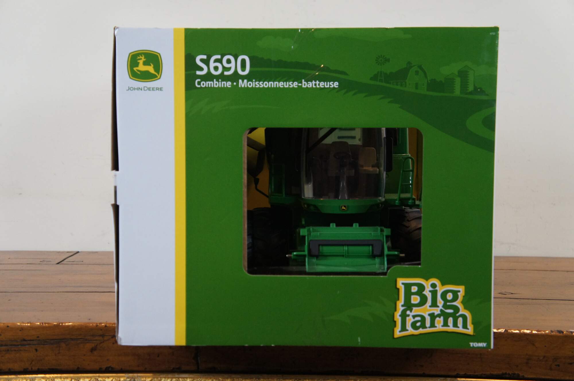 John Deere 1:16 Big Farm S690 Toy Combine Harvester w/ corn / grain heads. New in Box.