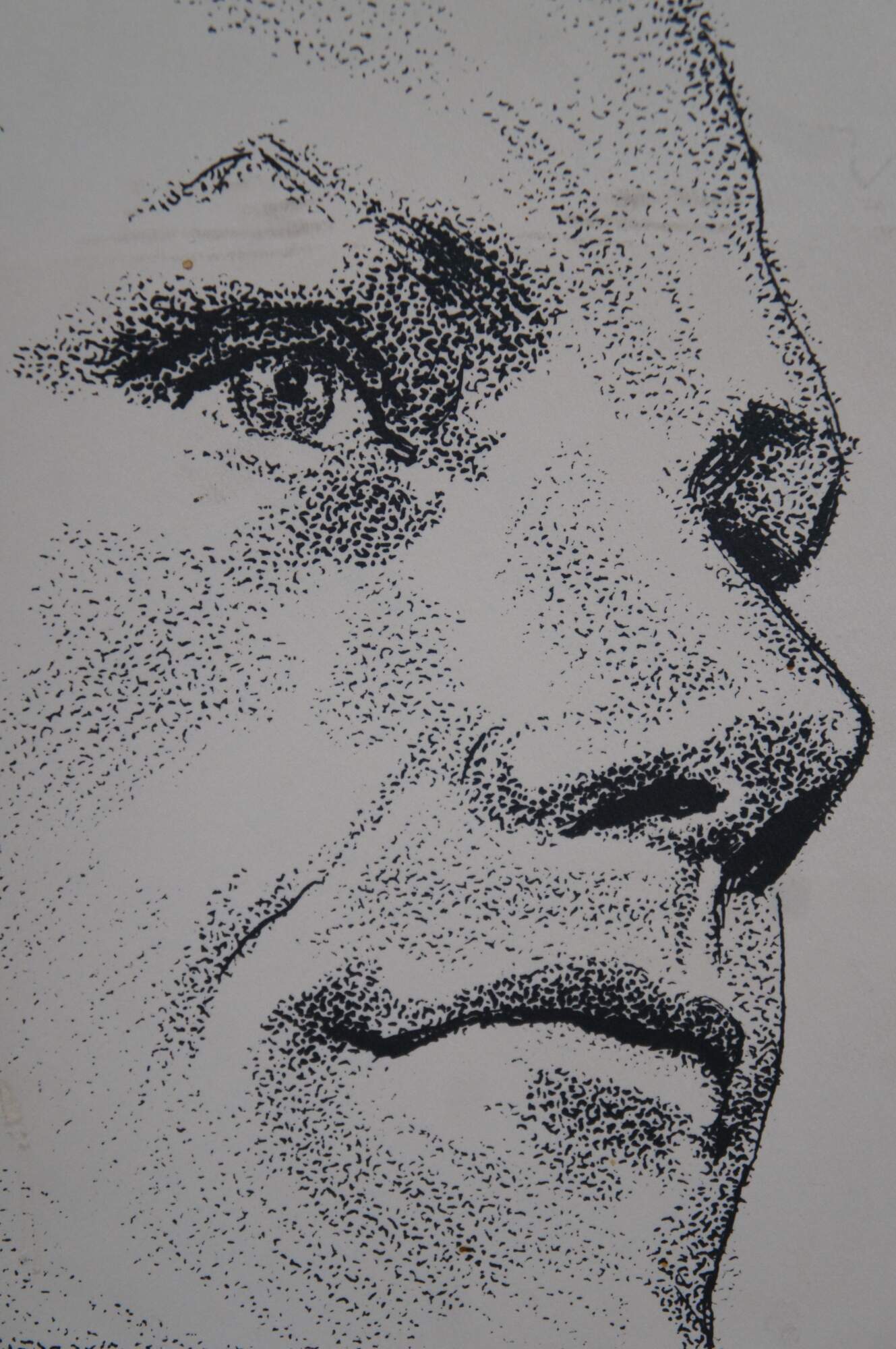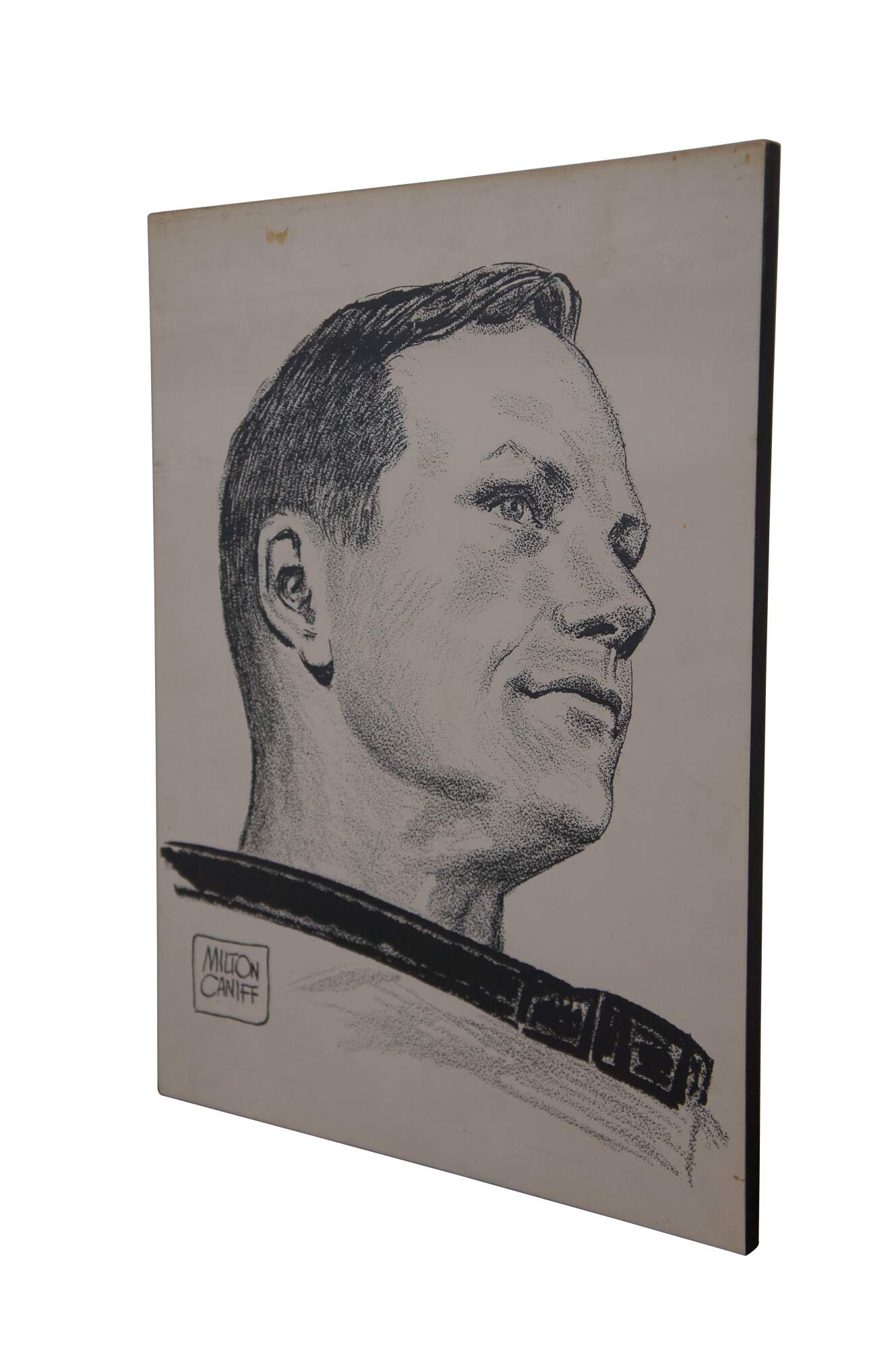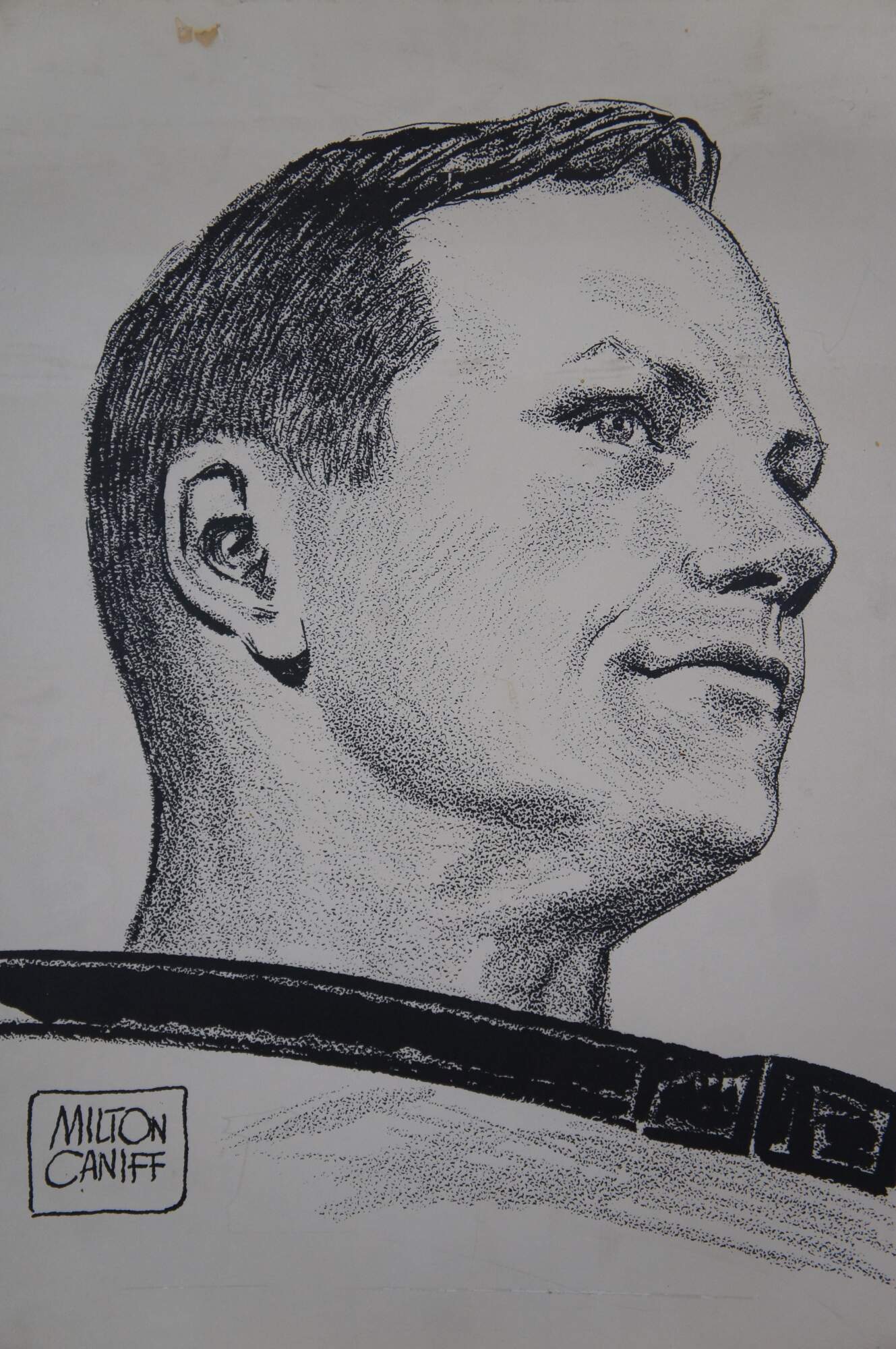 Vintage Milton Caniff Neil Armstrong portrait print on board.