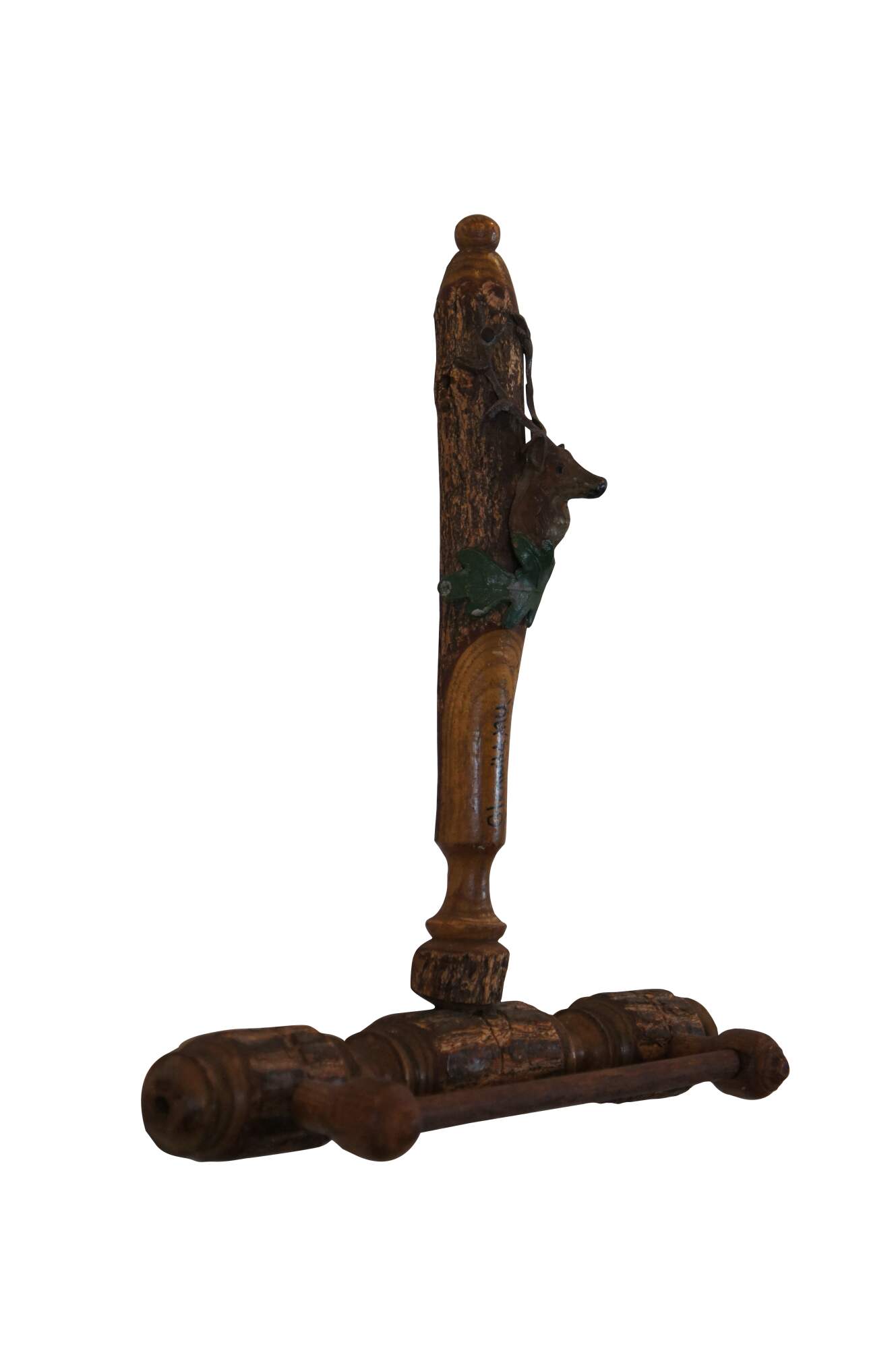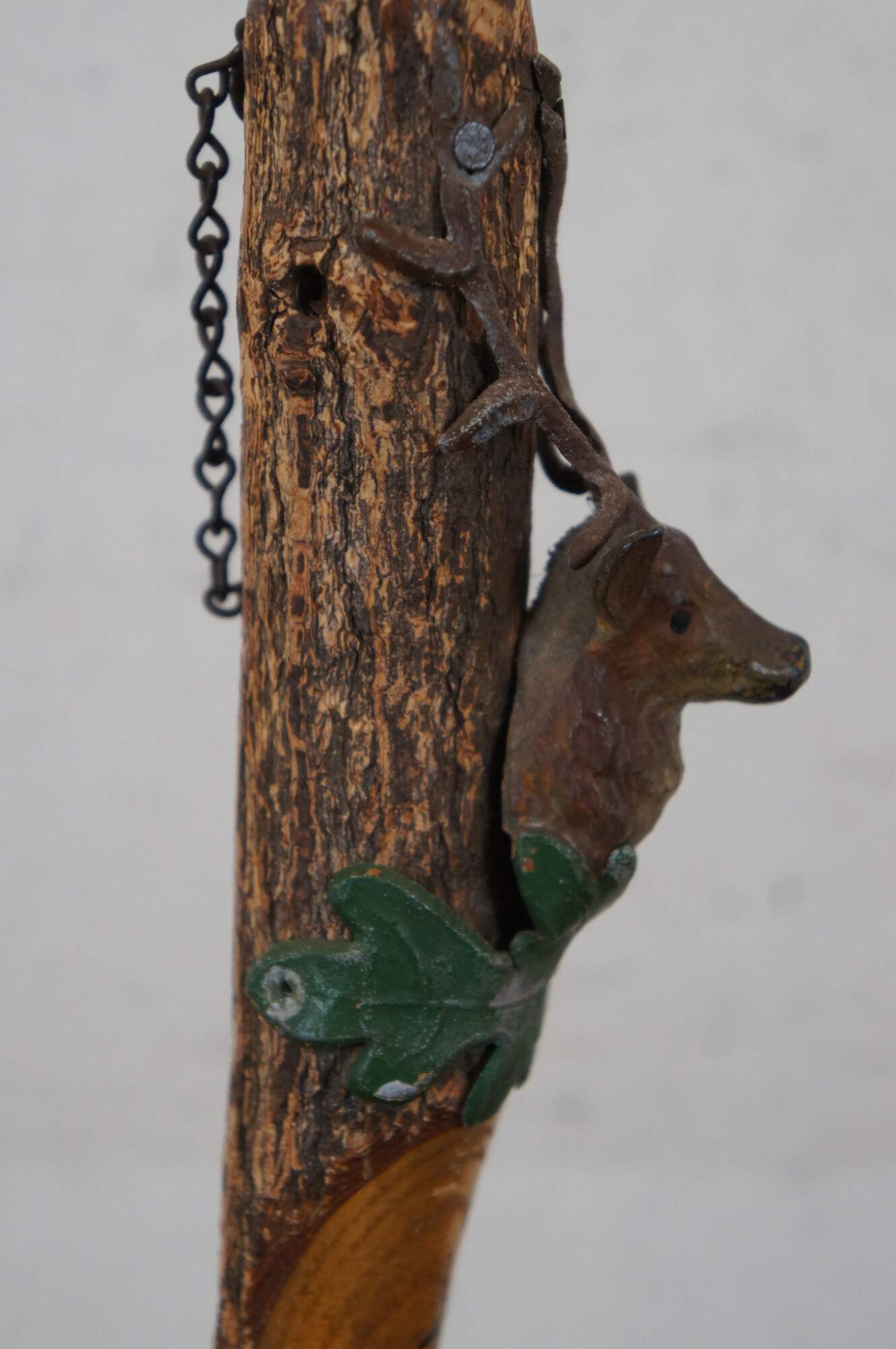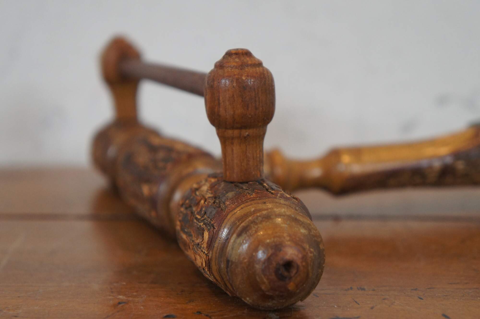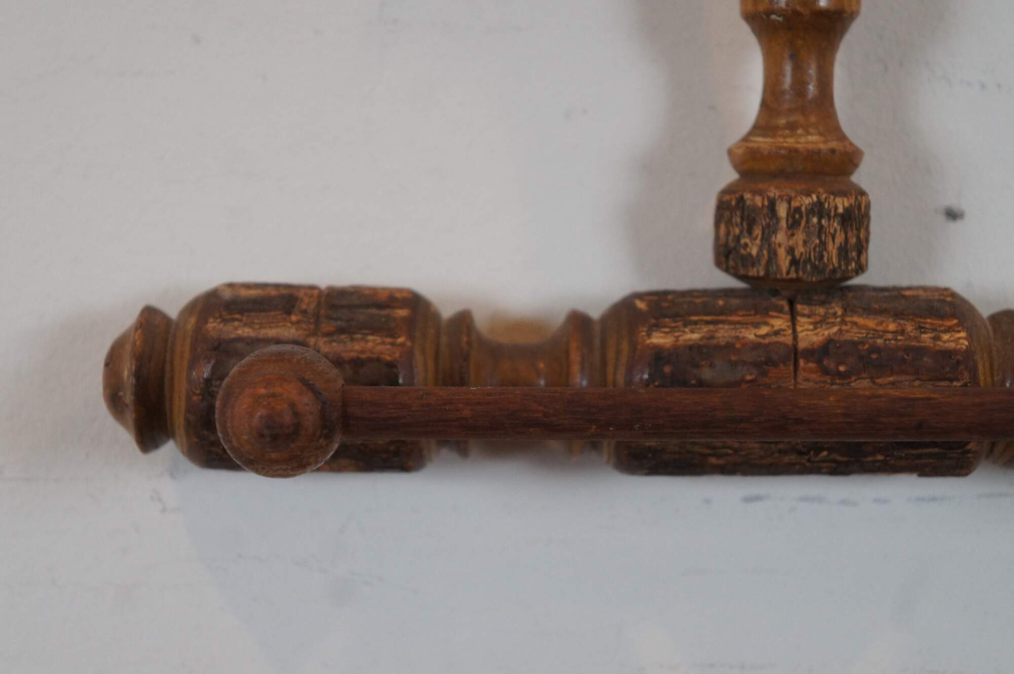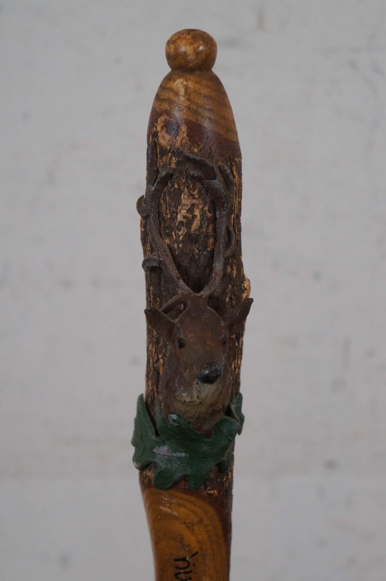 Vintage carved folk art hunt theme / lodge / cabin / farmhouse towel rack or holder. Made of turned wood featuring black forest styling with deer / stag wrapped post.