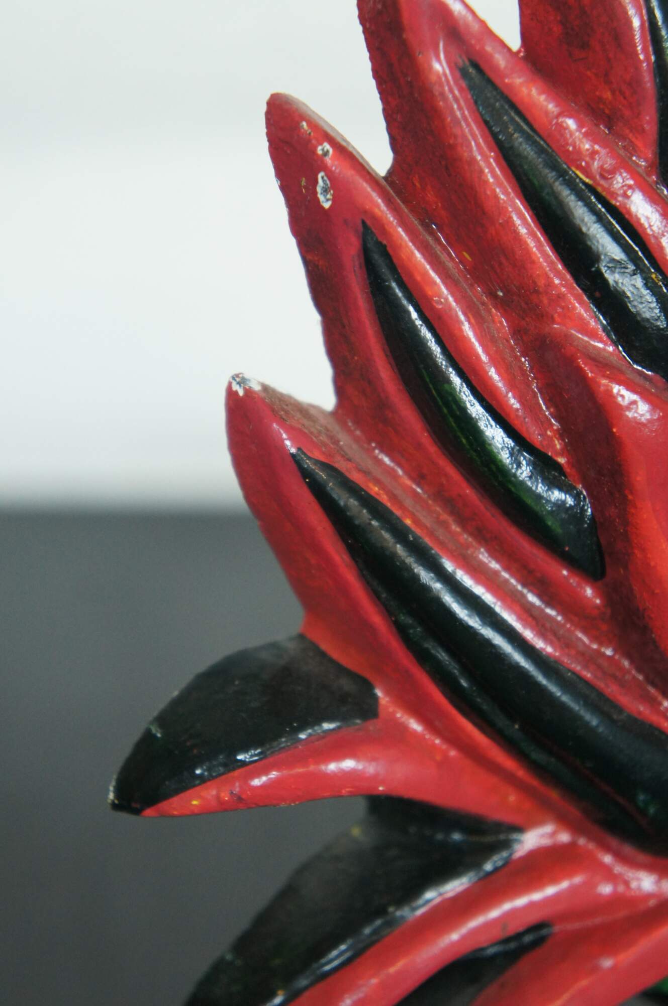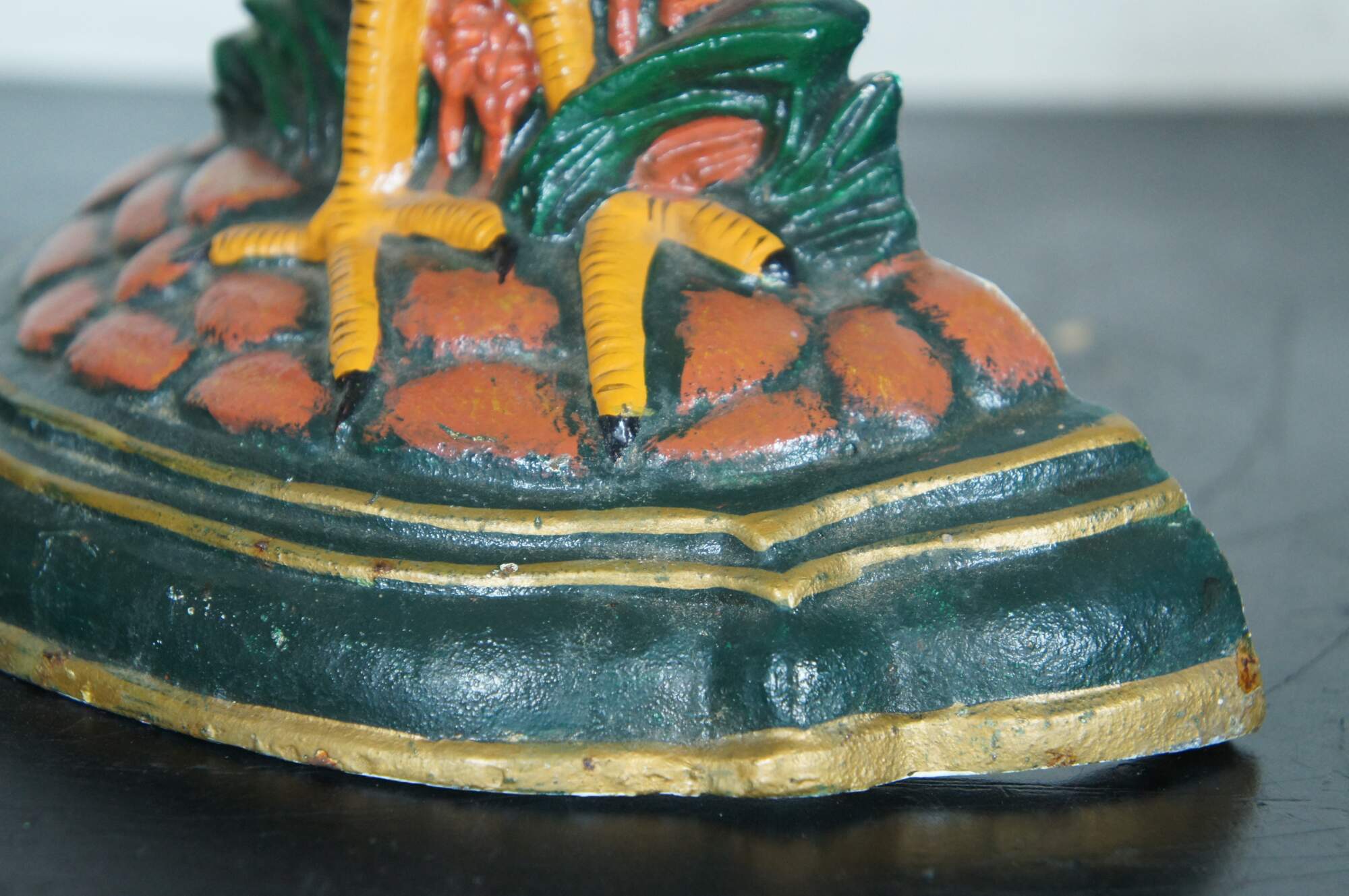 Vintage colorful painted cast iron door stop in the form of a chicken / rooster or bird.