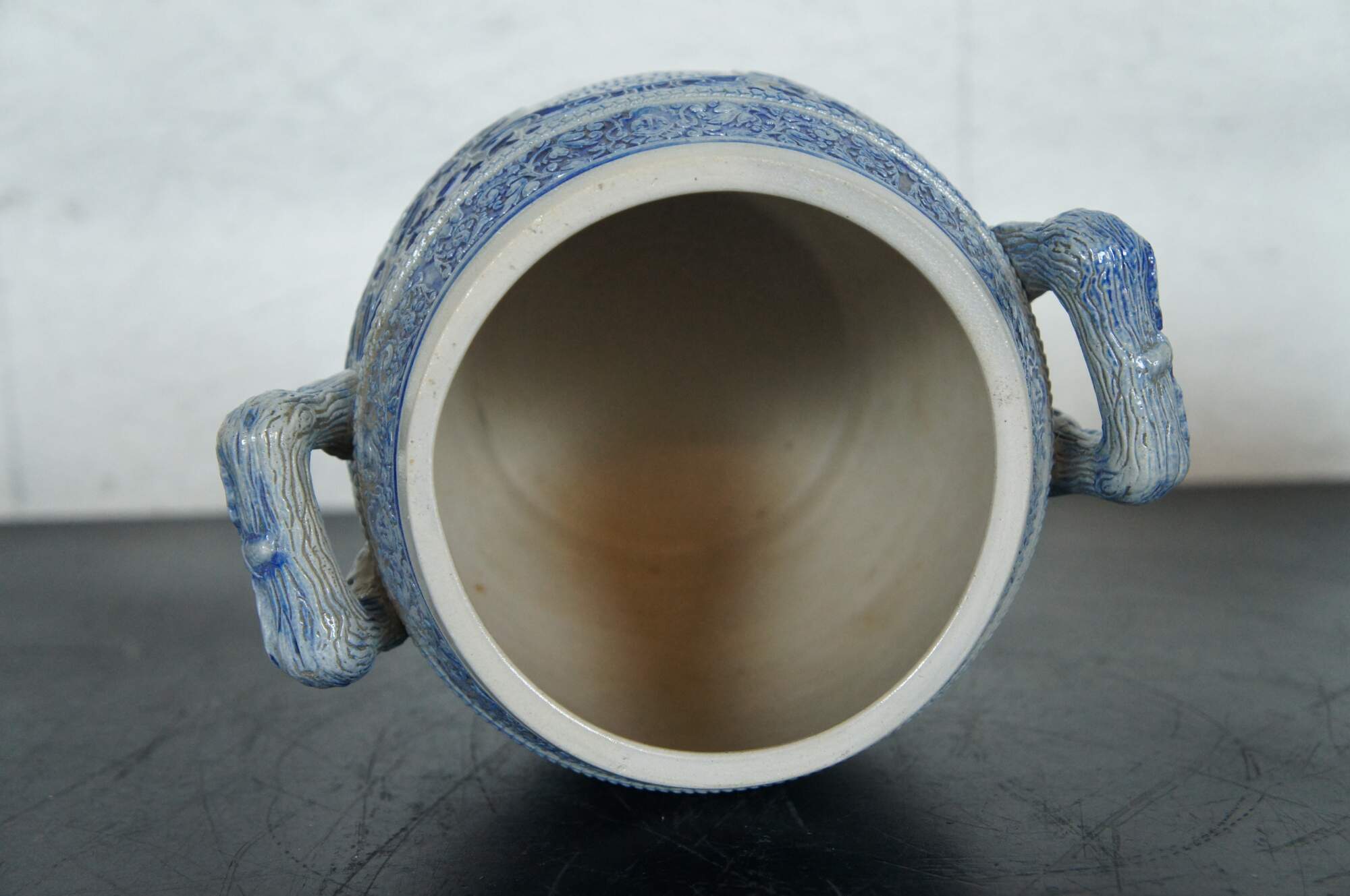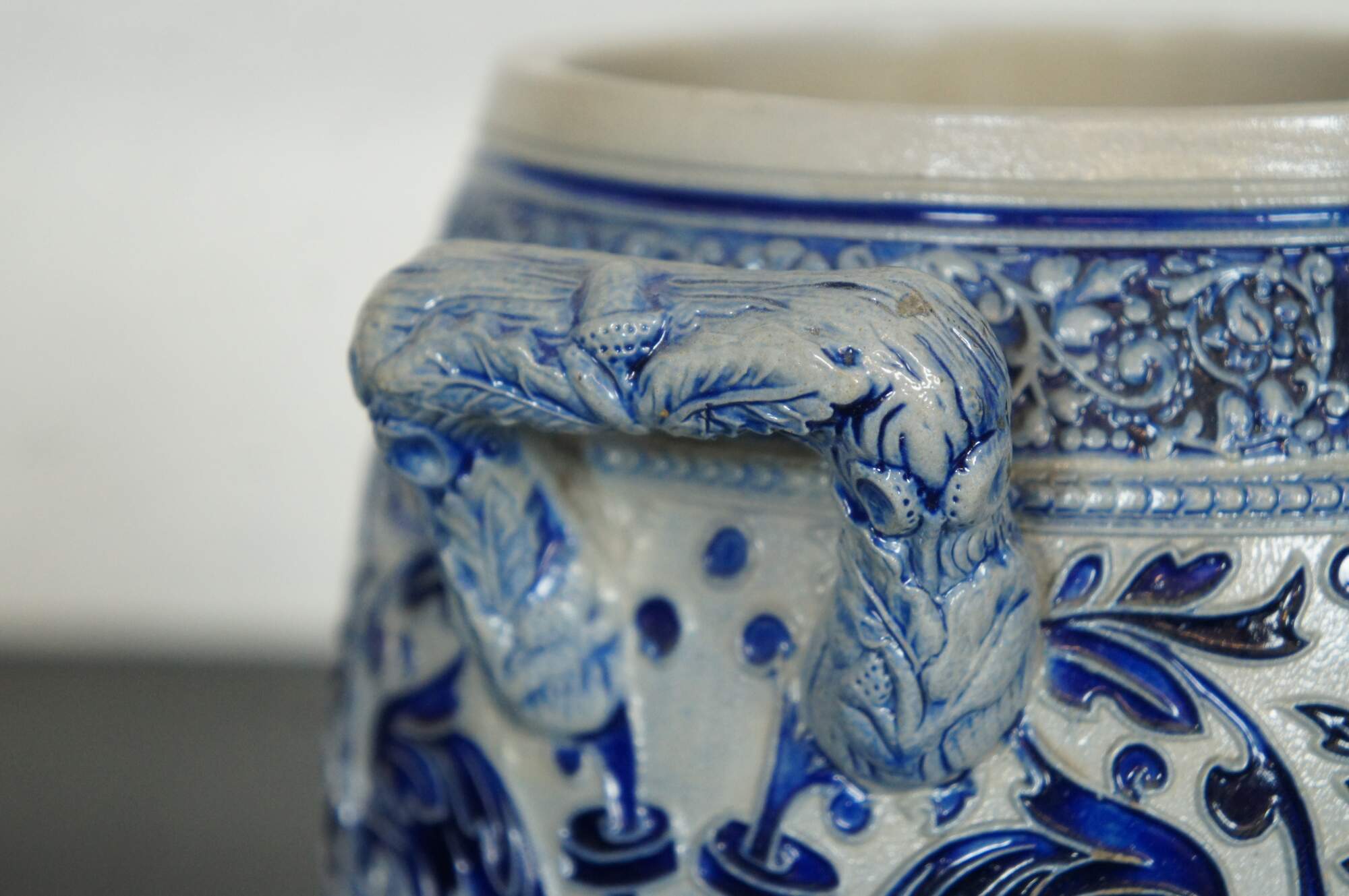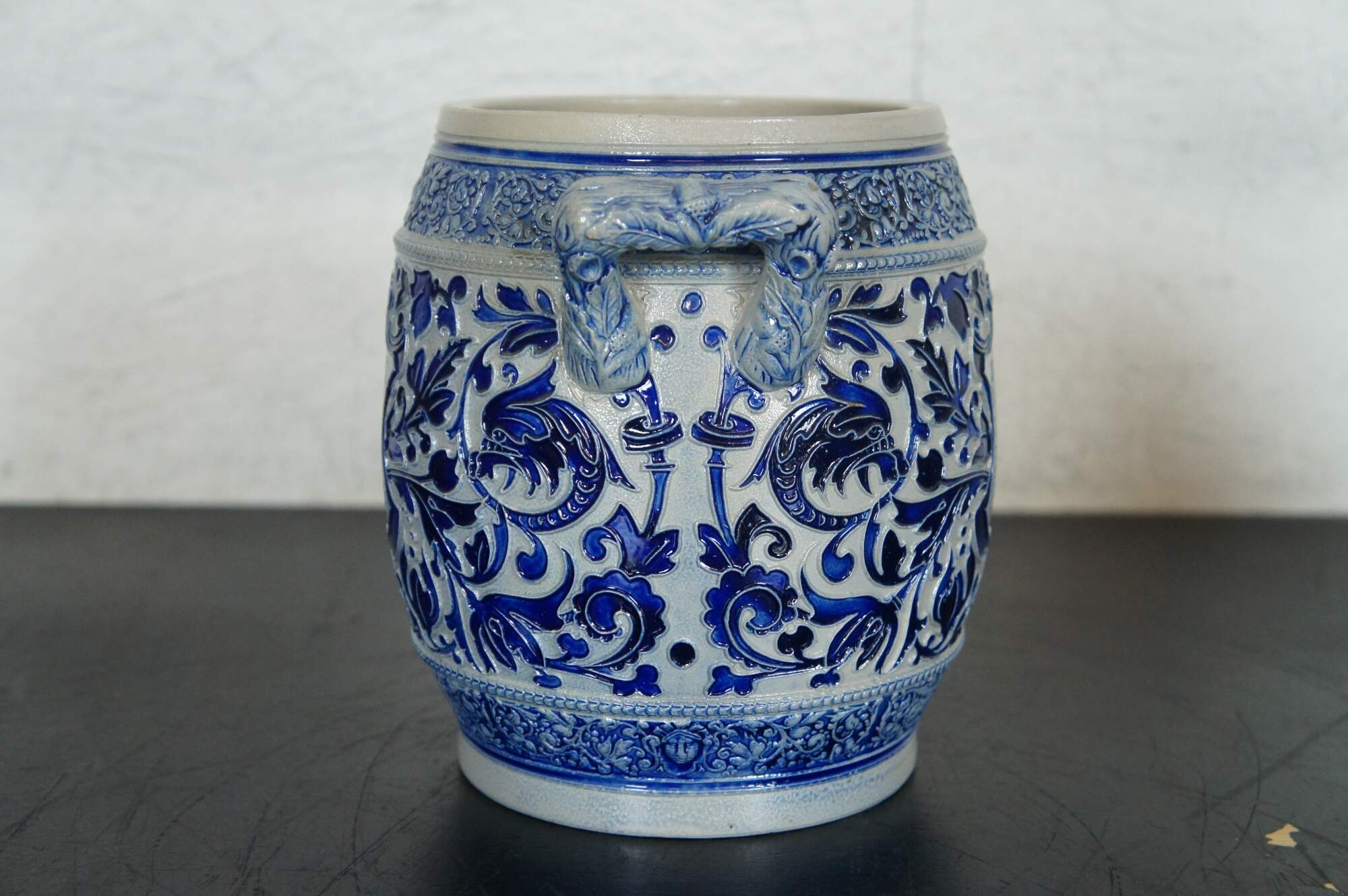 Antique German cobalt blue salt glaze rumtopf jar / rum crock pot. The name rumtopf, staidly enough, does translate to “rum pot”—or a jar in which to soak seasonal fruit in very strong rum
