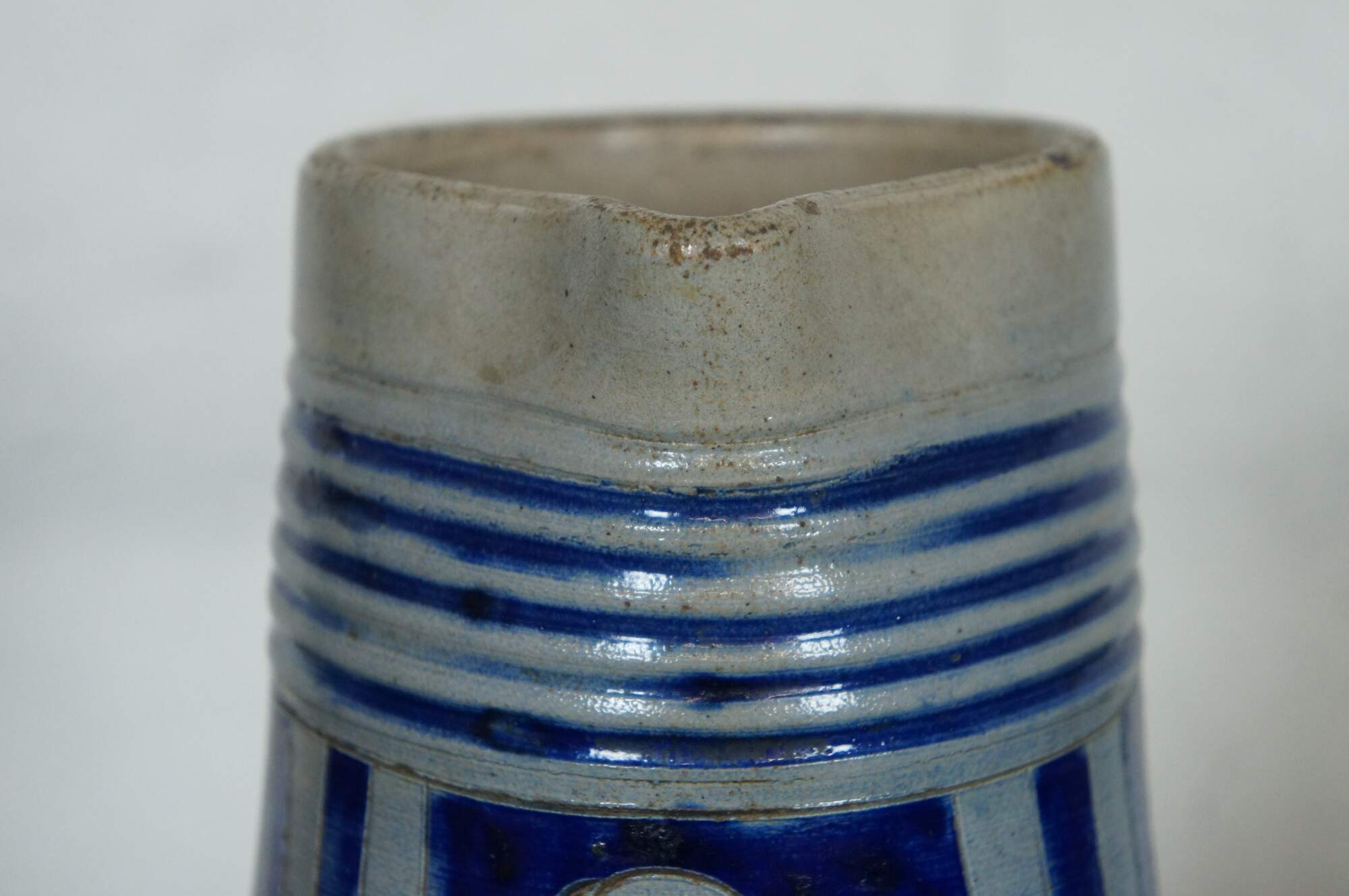 Antique German Westerwald stoneware pottery decanter jug or pitcher.