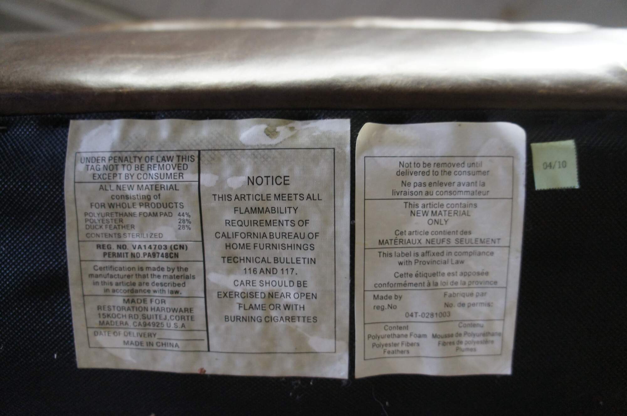46" x 90" x 34"h, seat 17"