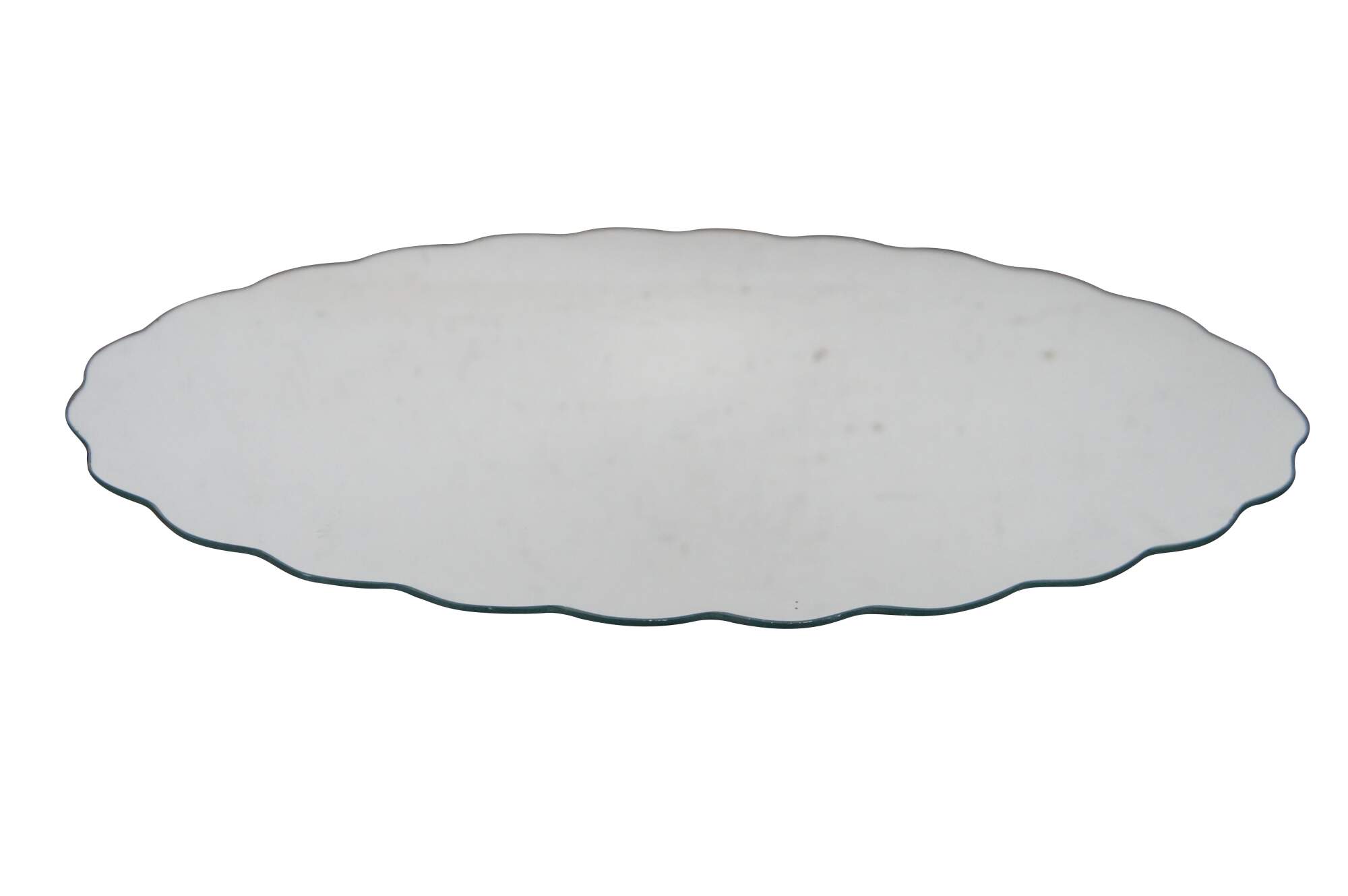Vintage custom made Falconer Durever mirrored place mats. Made of glass featuring French style scalloped oval form. This very hard cut to make was ordered by our client circa June 18, 1982.