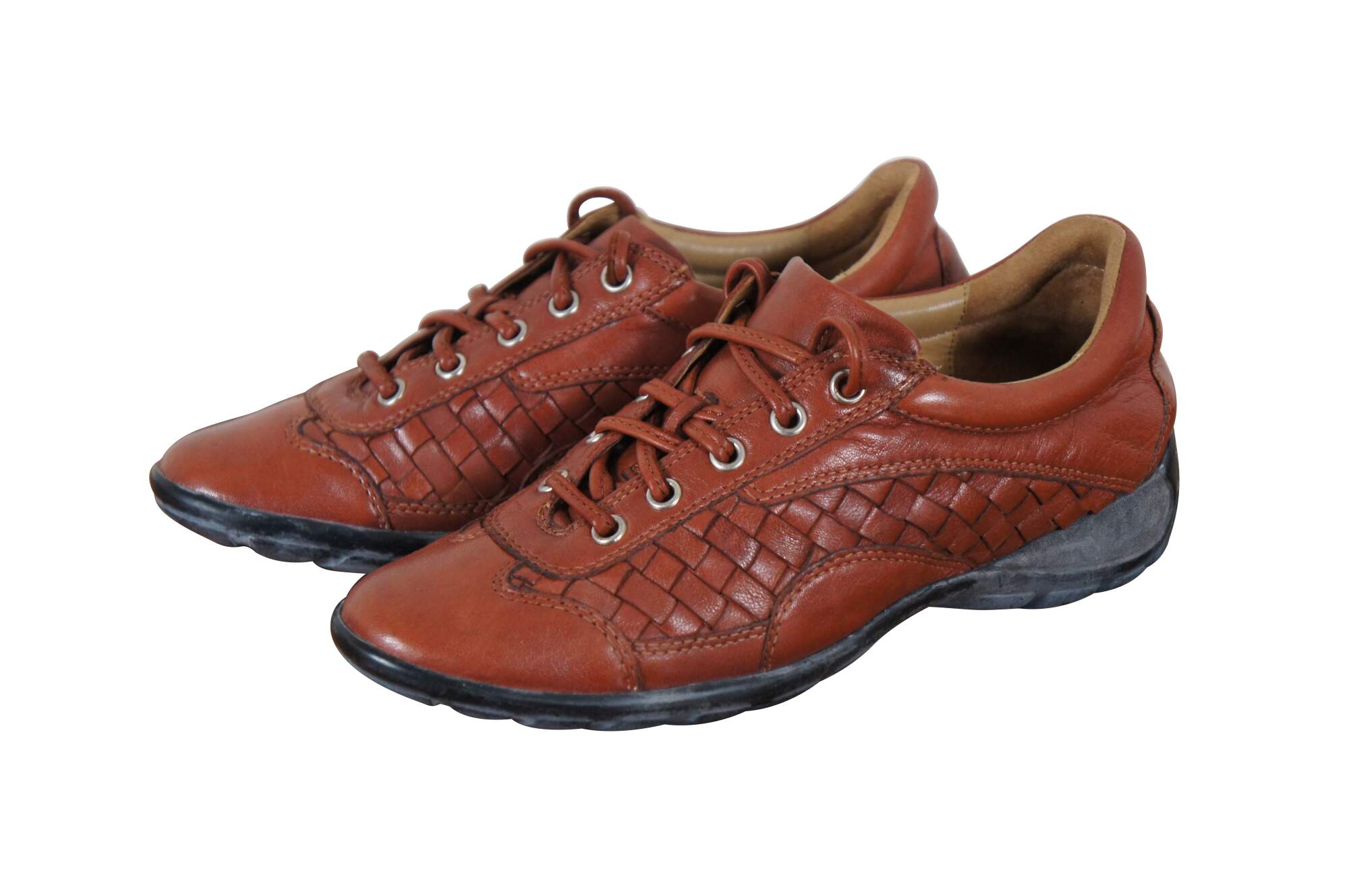 Vintage Robert Zur Senna brown woven leather lace up tennis shoes in vintage luggage true glove. Size 6.5 AAAA. MSRP $298. Made in India.