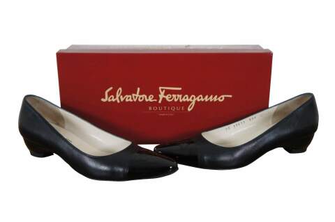 Vintage pair of Salvatore Ferragamo low heel flats / low pump. Size 6.5 AAAA. MSRP $230. Made in Italy. Nubiana, nero napa kid.