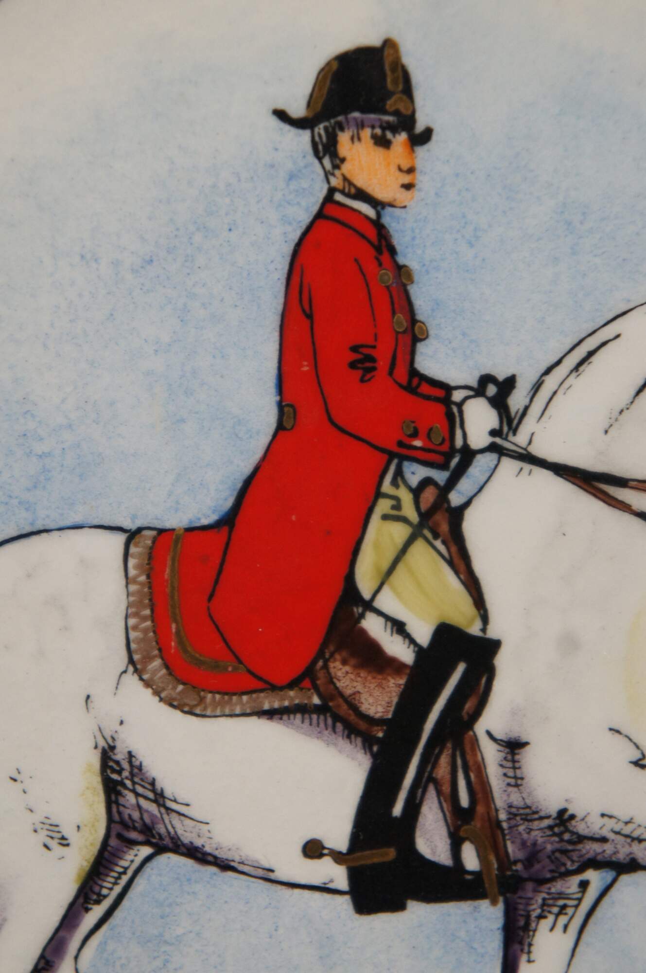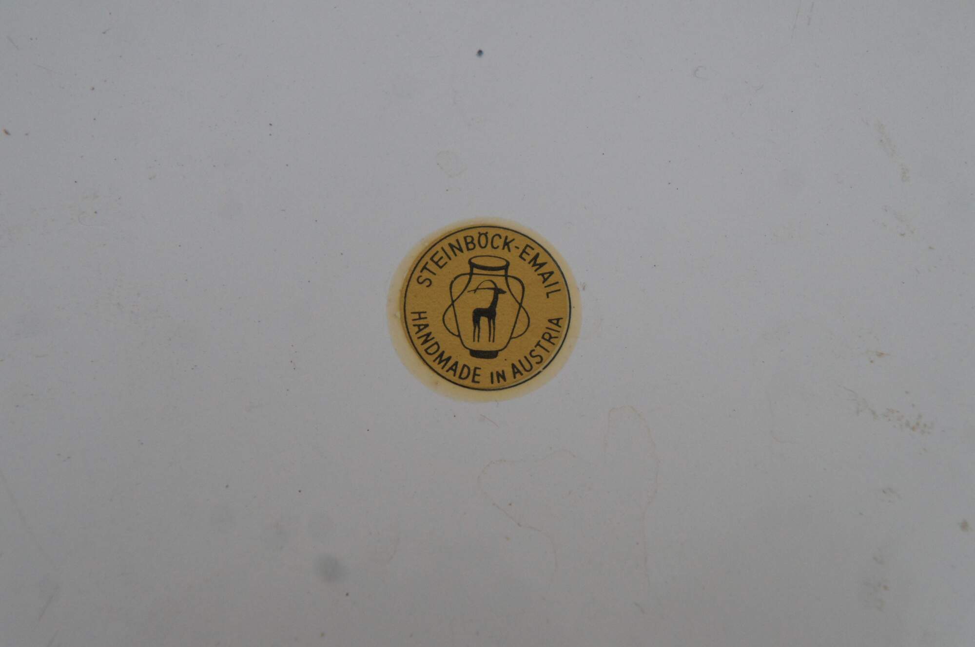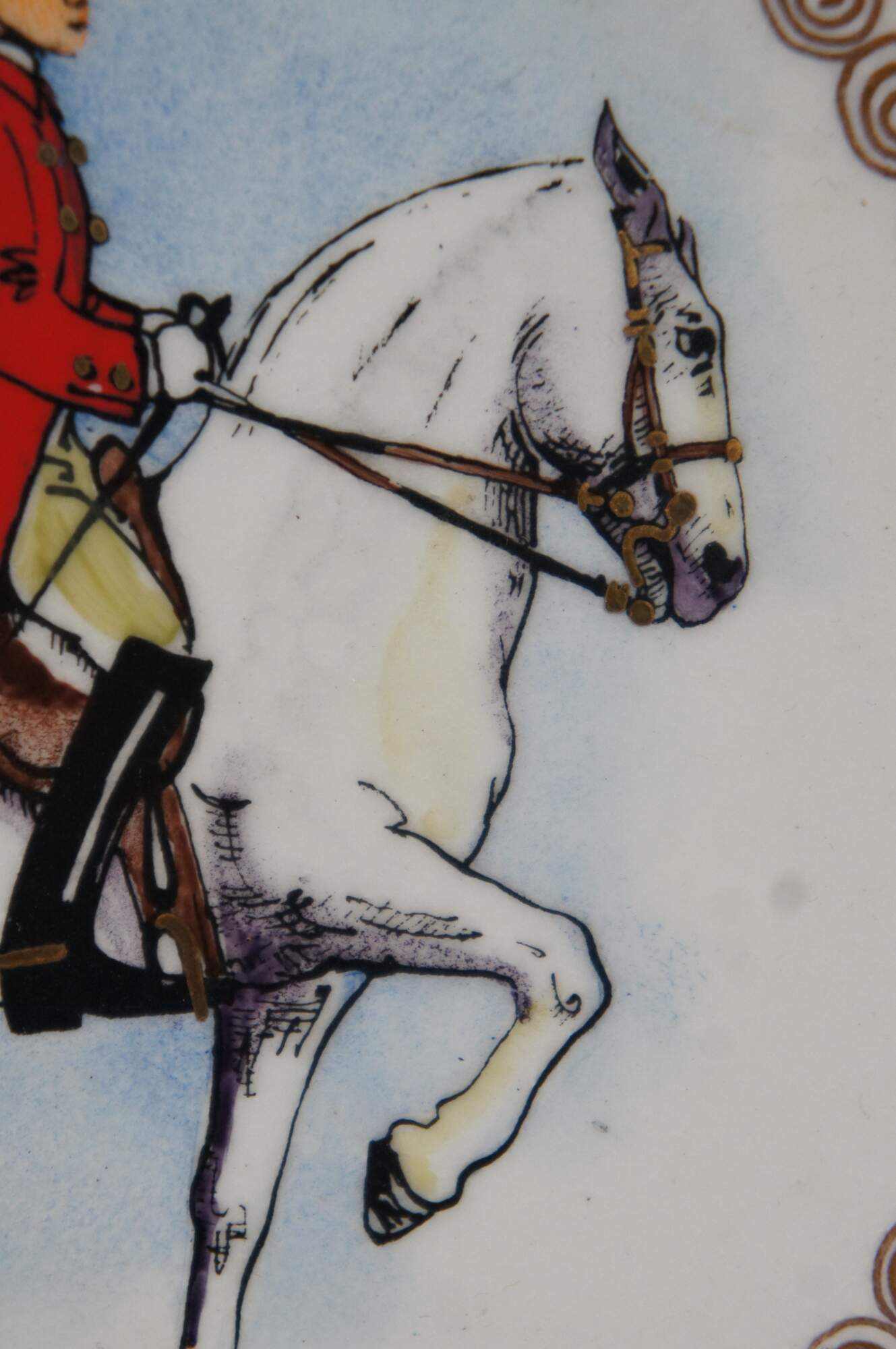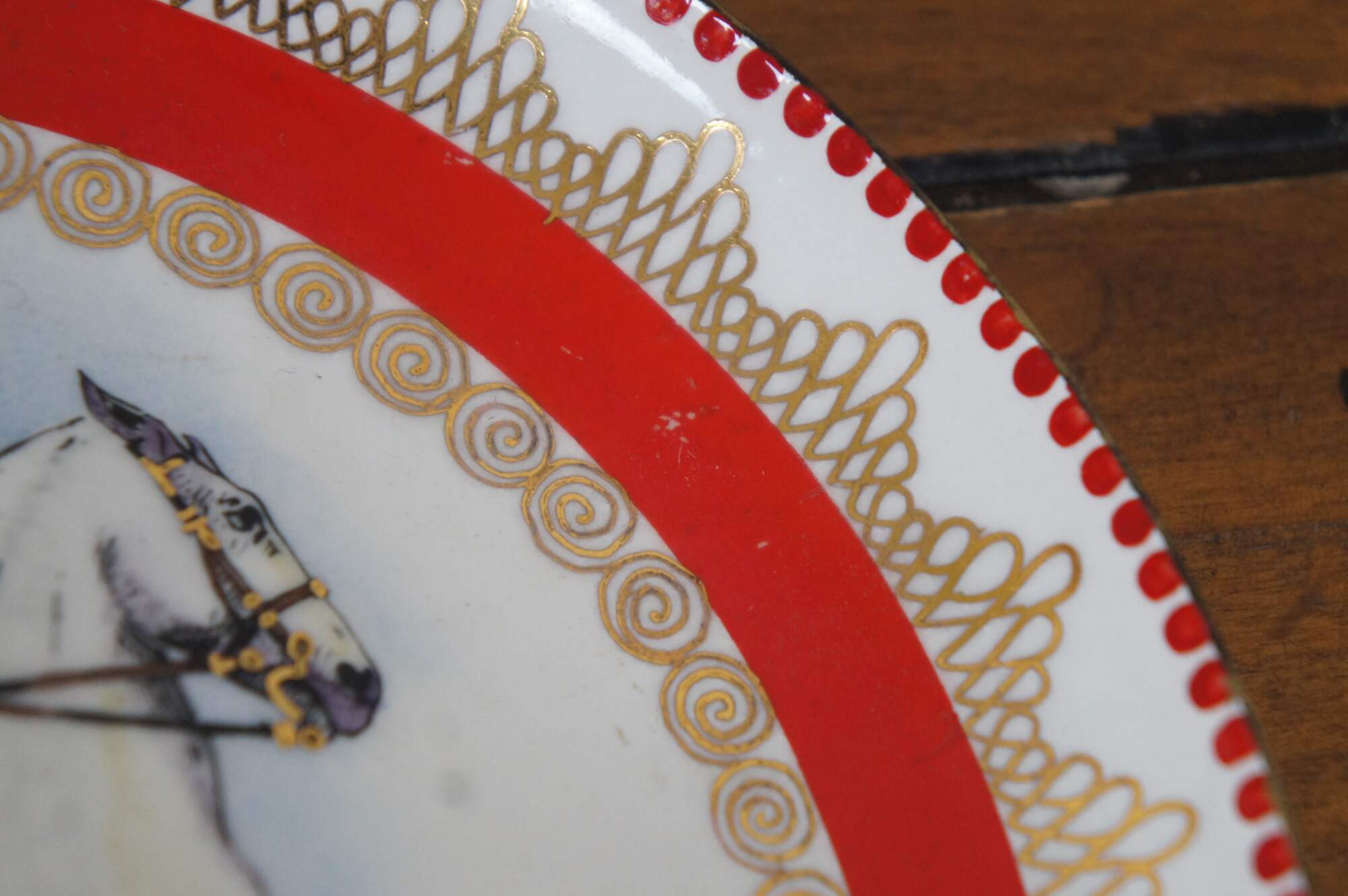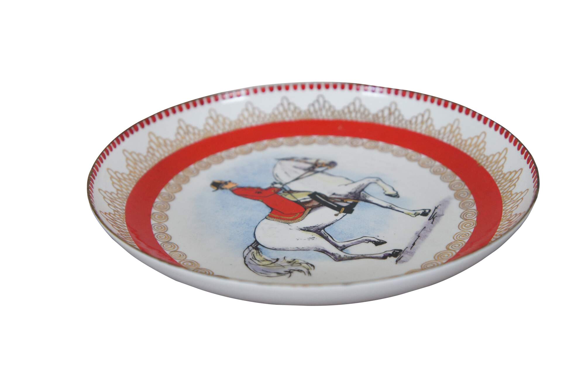 Vintage Austiran Steinbock-email enameled Spanish Riding School / horse jockey / equestrian theme plate or trinket / key dish featuring man on a Lipizzaner horse / stallion from the Spanish Riding School in Vienna Austria.