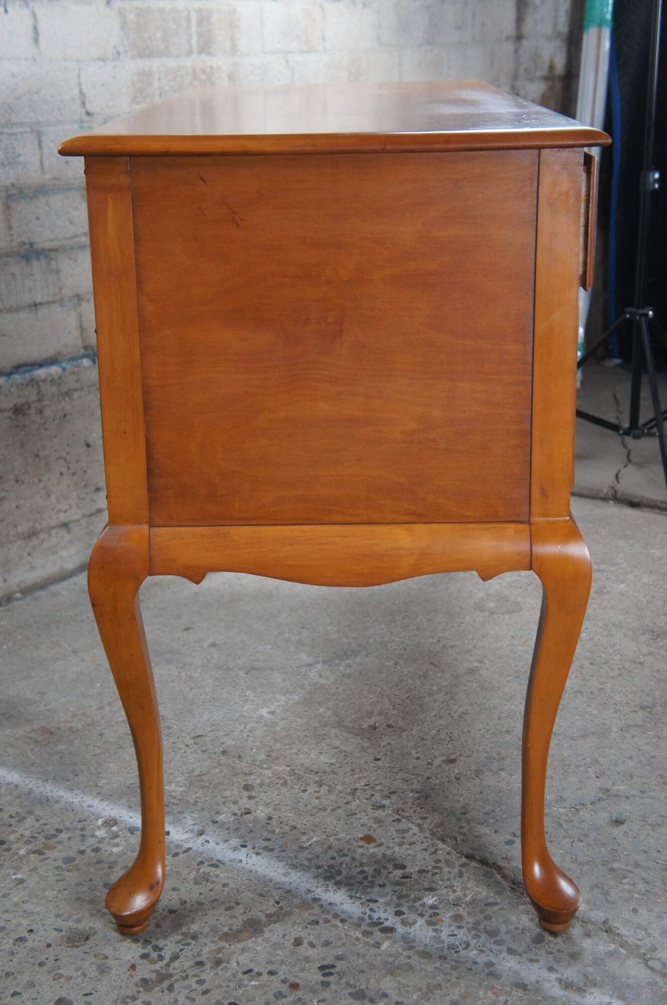 Antique Old Meeting House Queen Anne style buffet / sideboard / console / credenza. Made of maple featuring rectangular form with four large drawers, brass hardware, serpentine skirt and slipper feet.