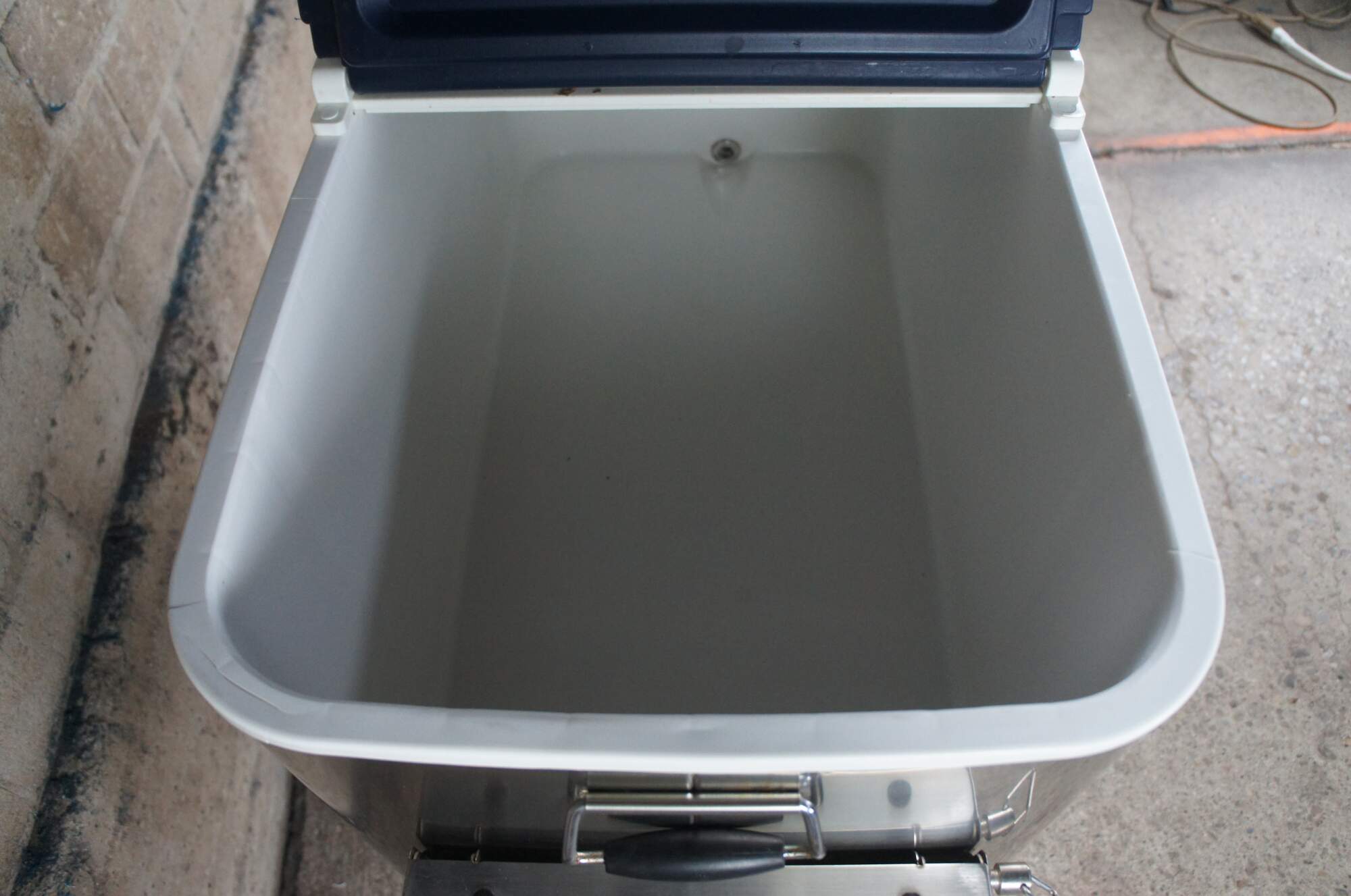 Good condition, some blemishing to top, splits in plastic edge liner, some stains to stainless, lower basket not pictured but included.